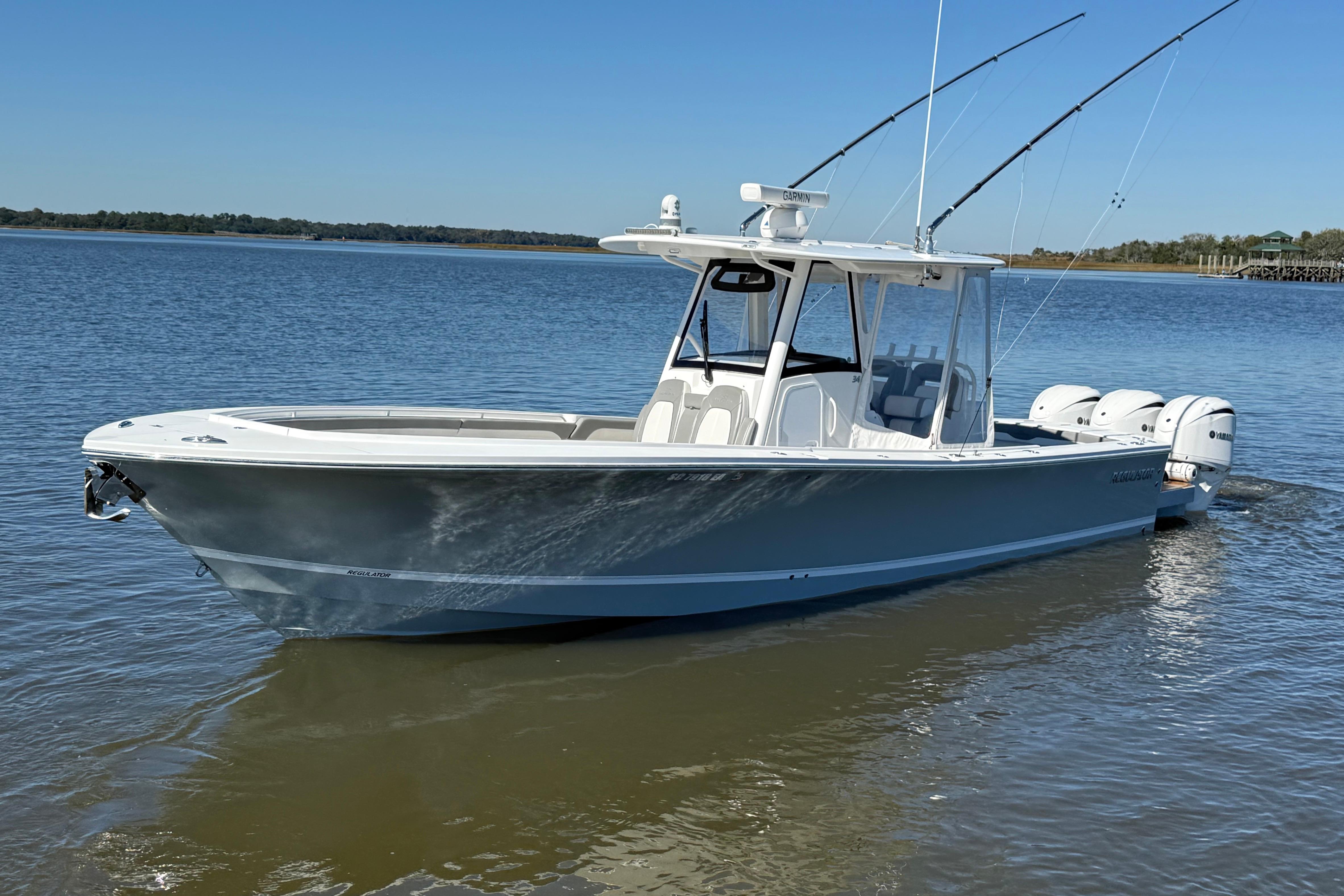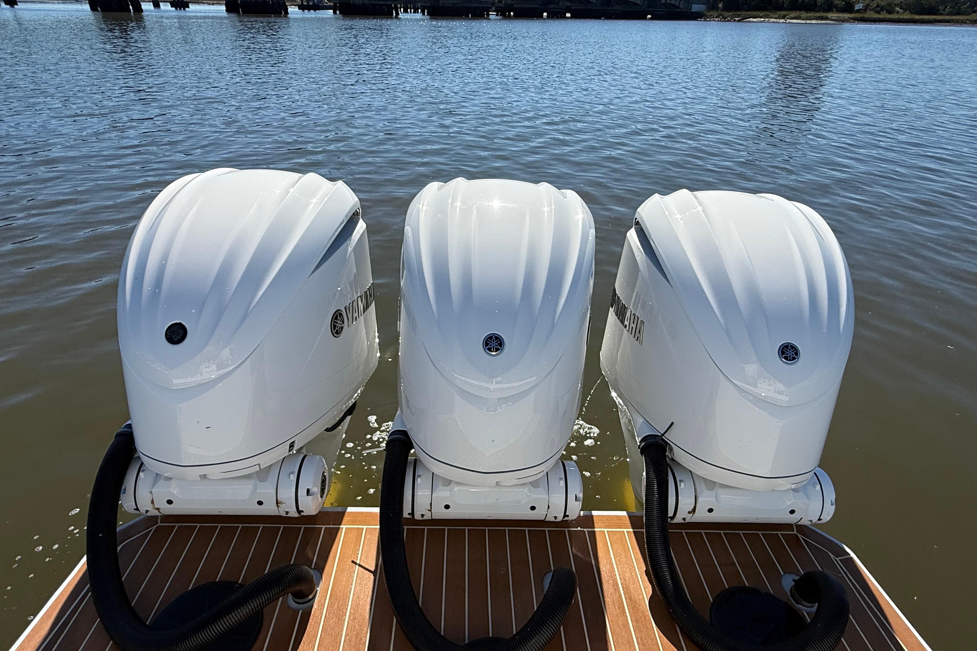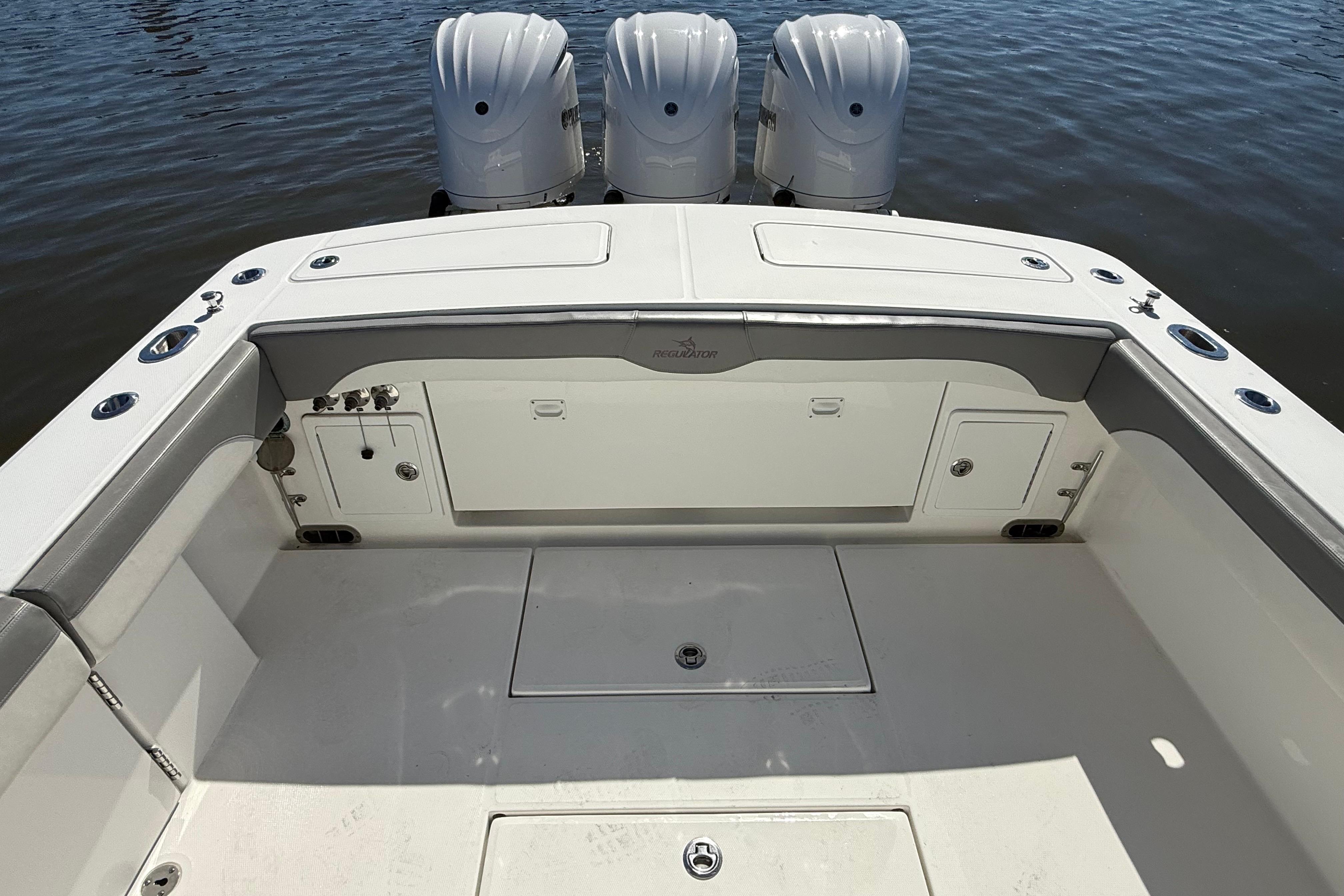 2022 Regulator 34 powered by triple Yamaha F300XSBs with Yamaha Helm Master Joystick Control with Multi Mode Set Point and Yamaha EX Autopilot.