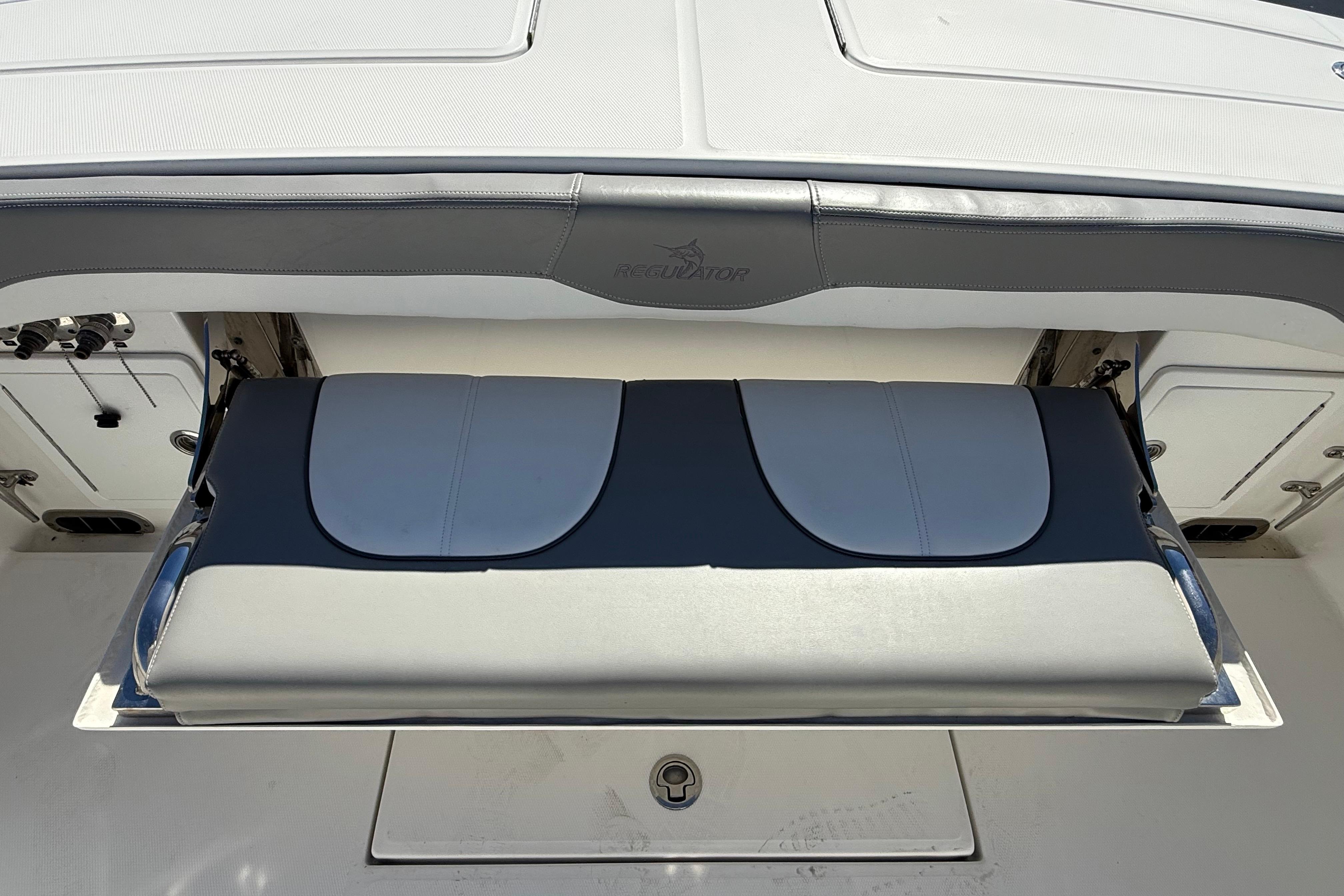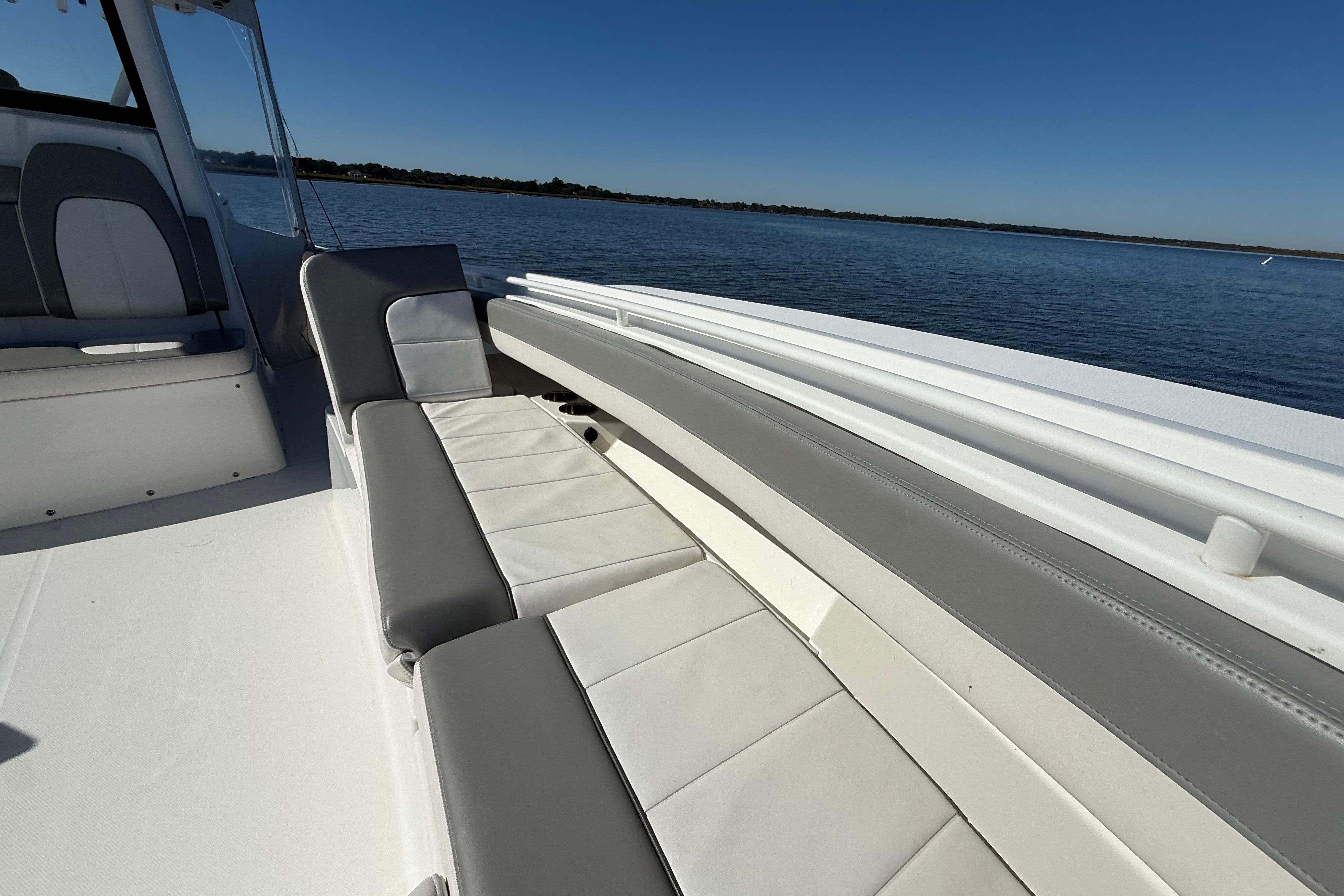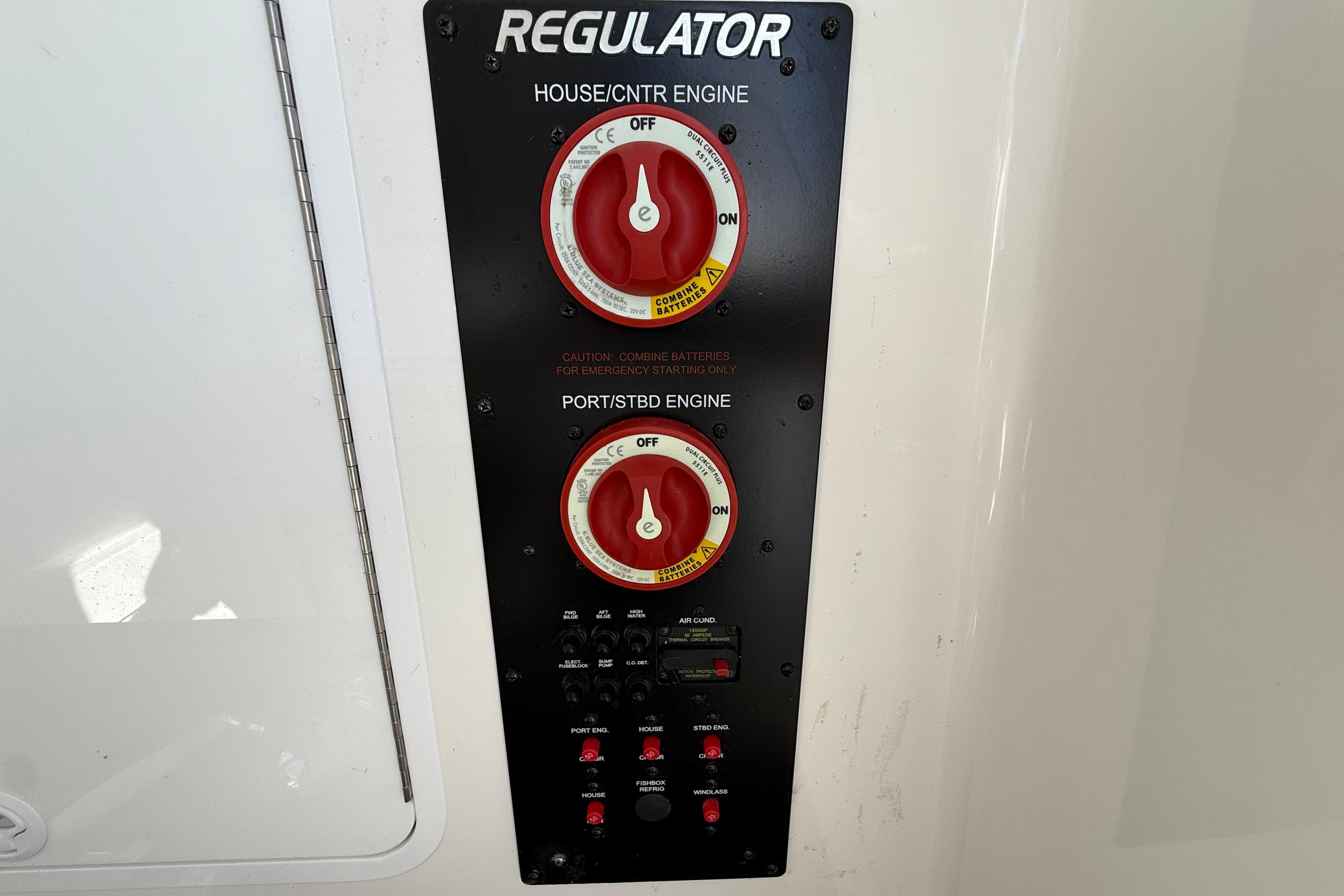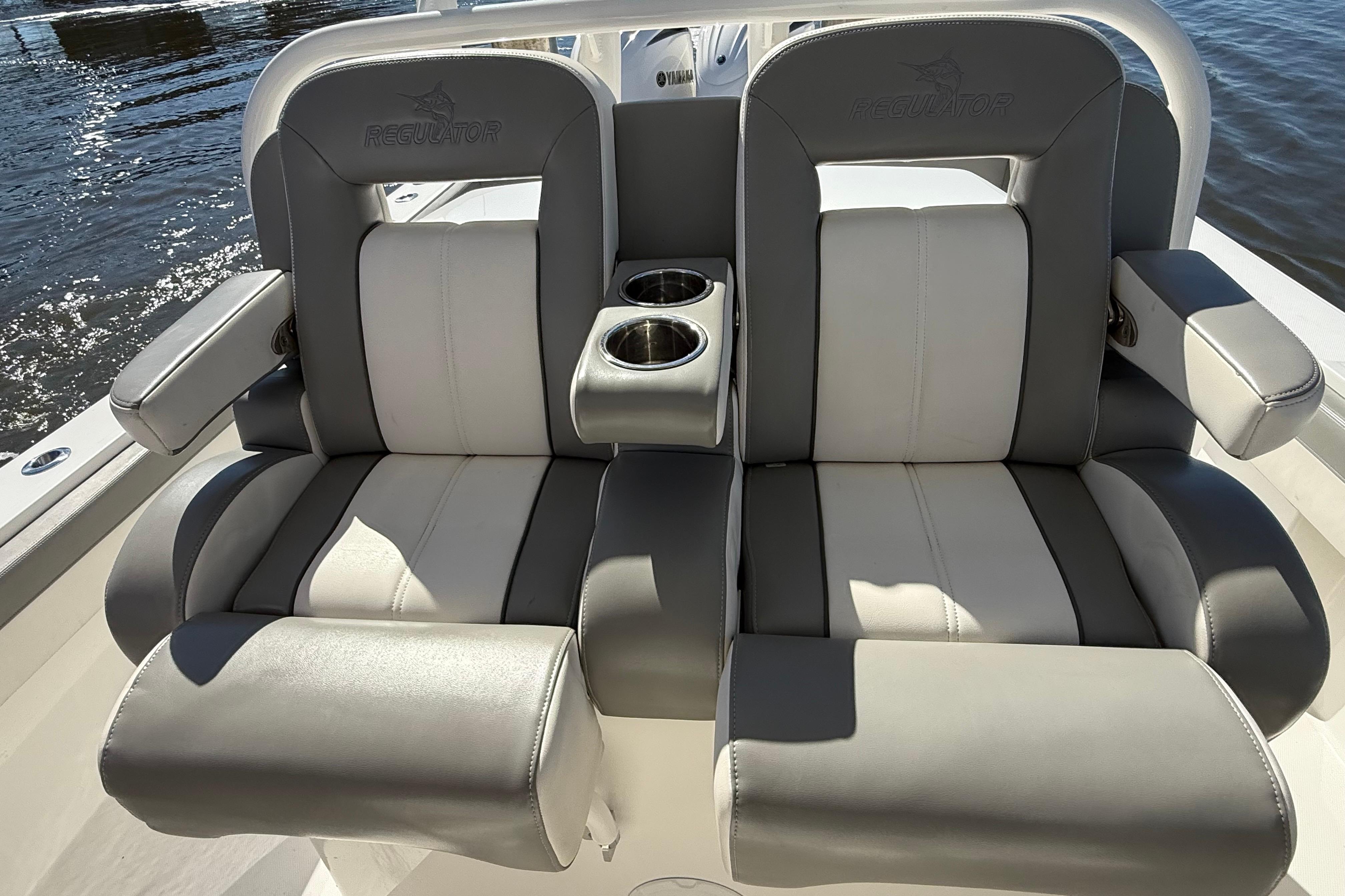 2022 Regulator 34 powered by triple Yamaha F300XSBs with Yamaha Helm Master Joystick Control with Multi Mode Set Point and Yamaha EX Autopilot.