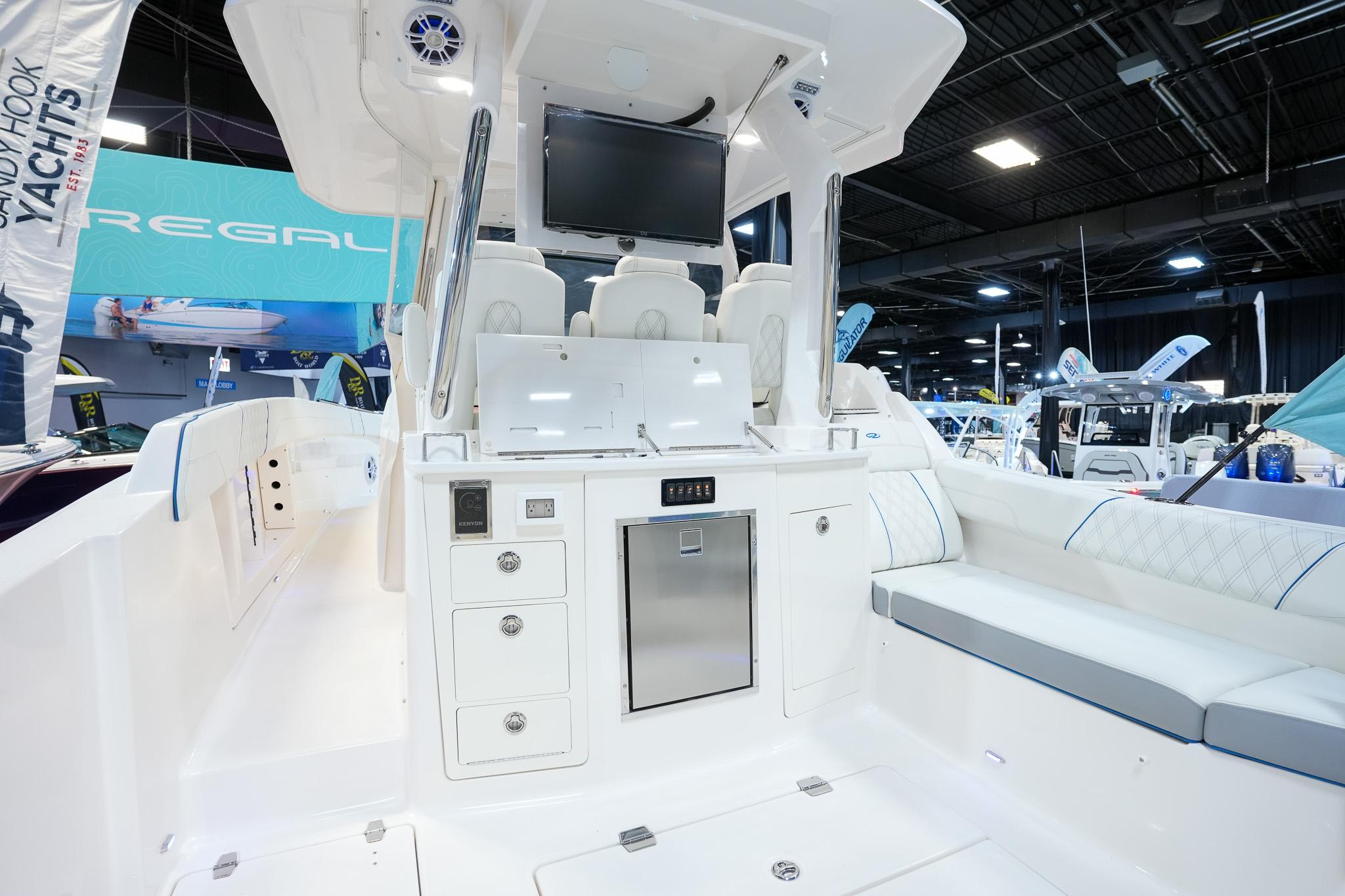 Introducing the Regal 33 SAV, a stunning 34-foot Cuddy Cabin boat from 2025, designed for both performance and comfort. This vessel features a robust fiberglass hull with a modified Vee shape, ensuring stability and smooth navigation on the water. Powered by three Yamaha 4.2L F300 outboard engines, each delivering an impressive 300 horsepower, this boat promises exhilarating speed and responsiveness, with only 45 hours of use. Equipped with Yamaha Helm Master joystick control, maneuvering becomes effortless, enhancing your boating experience. The thoughtfully designed interior includes a head, providing convenience for extended outings. The Regal 33 SAV is perfect for day trips or weekend getaways, combining style and functionality in one sleek package. With its modern design and powerful engines, this boat is ready to create unforgettable memories on the water.