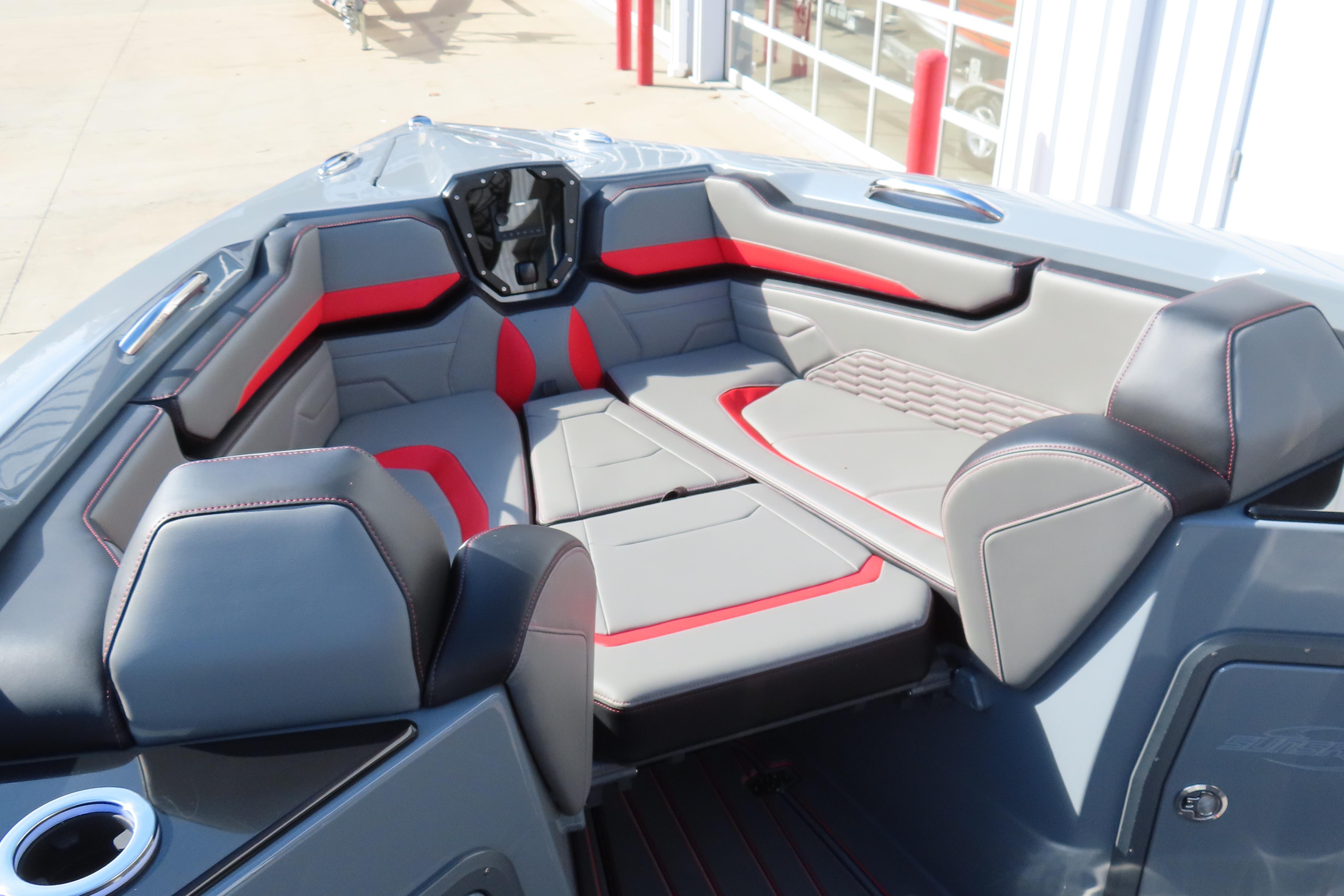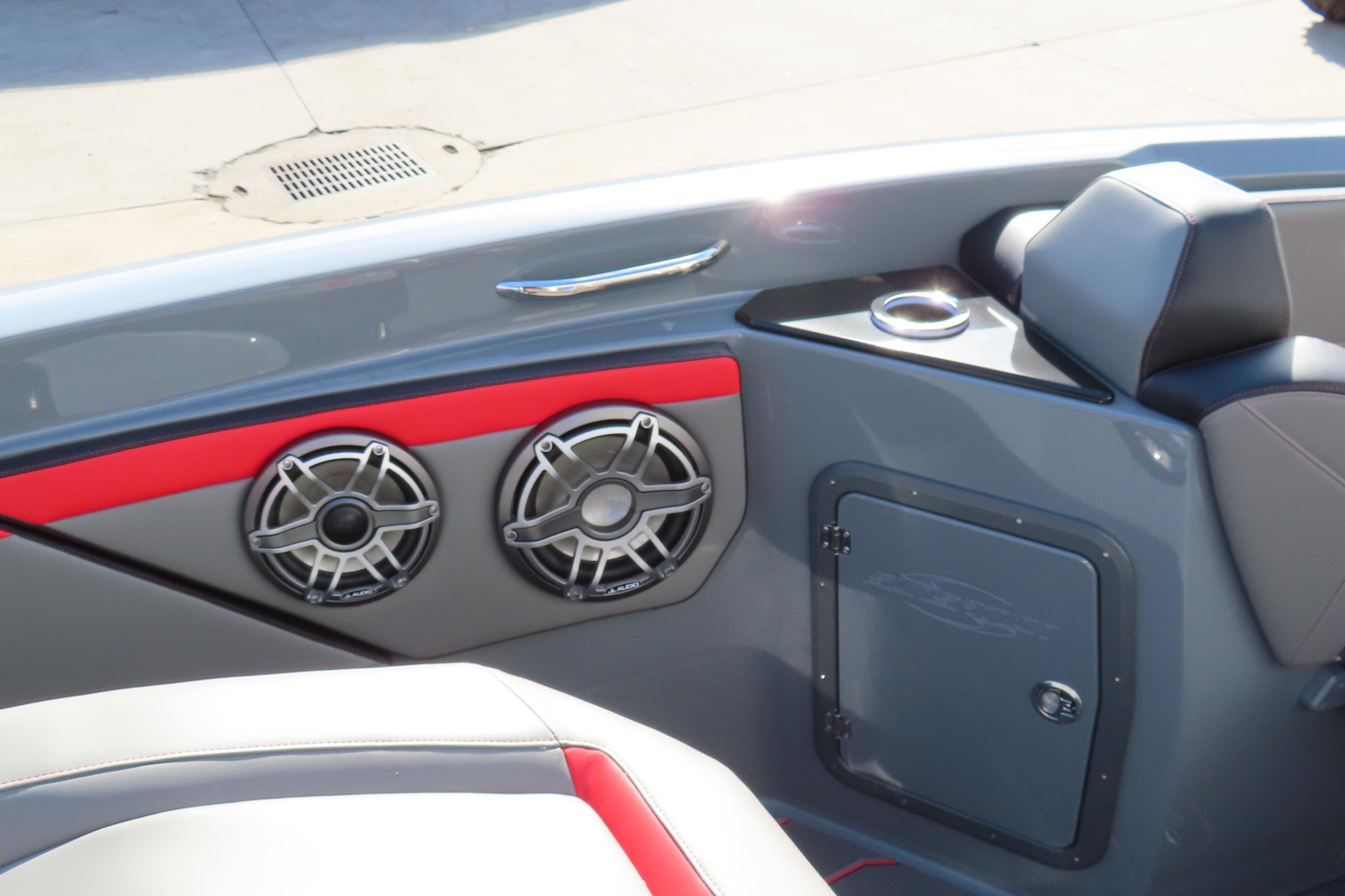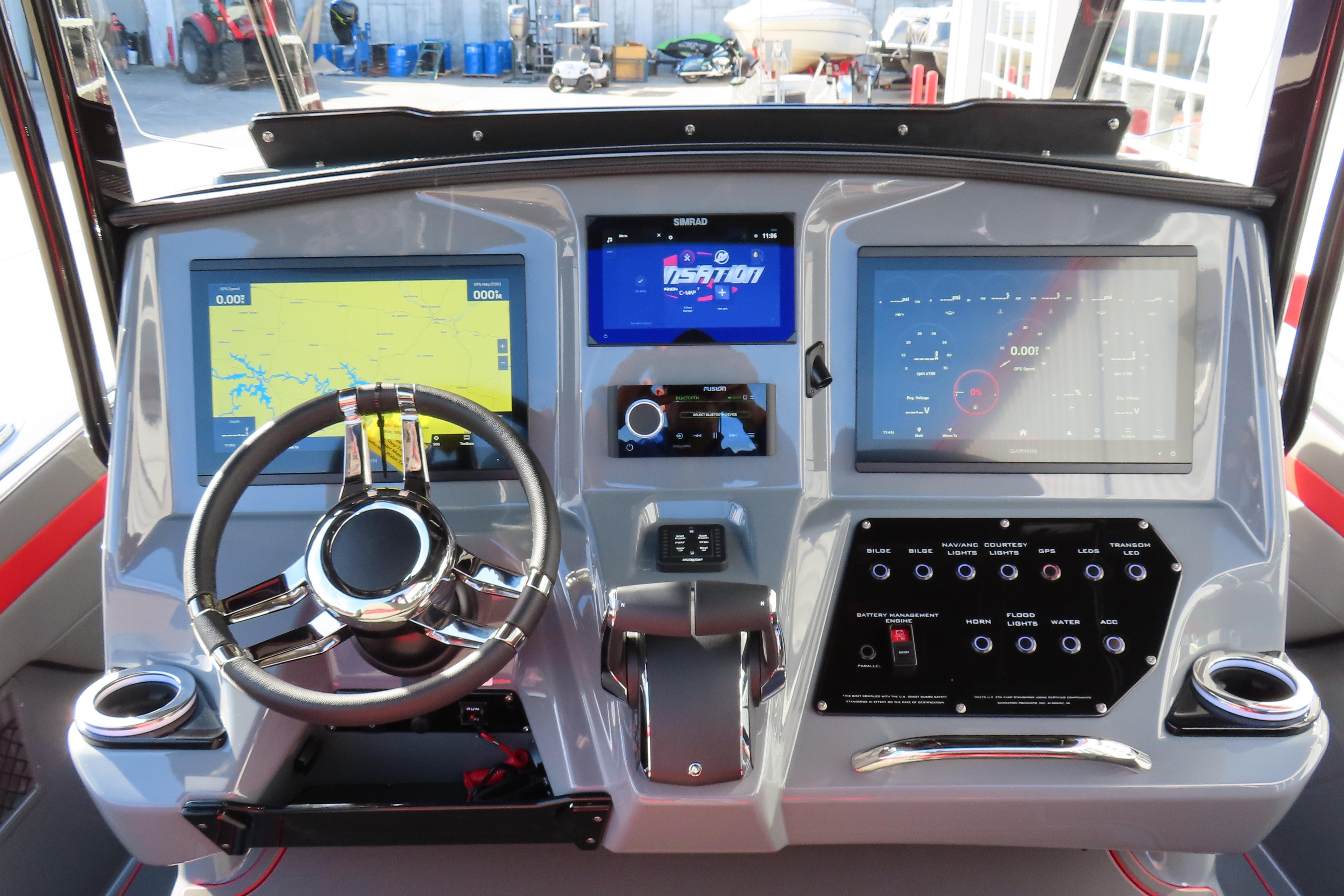 Loaded with options, stage 2 JL Audio sound system with bow remote, stage 1 engine paint, additional battery with onboard charger and electric switch on dash, dual Garmin 8616s. Mercury Vessel View, depth sounder, LED RGB color changing cockpit lights, Hydra-Foam flooring, Isotta steering wheel with tilt, LED trim tab indicators, pump out porta potty, windlass anchor, custom paint, bow filler cushion, canvas cover and much more!