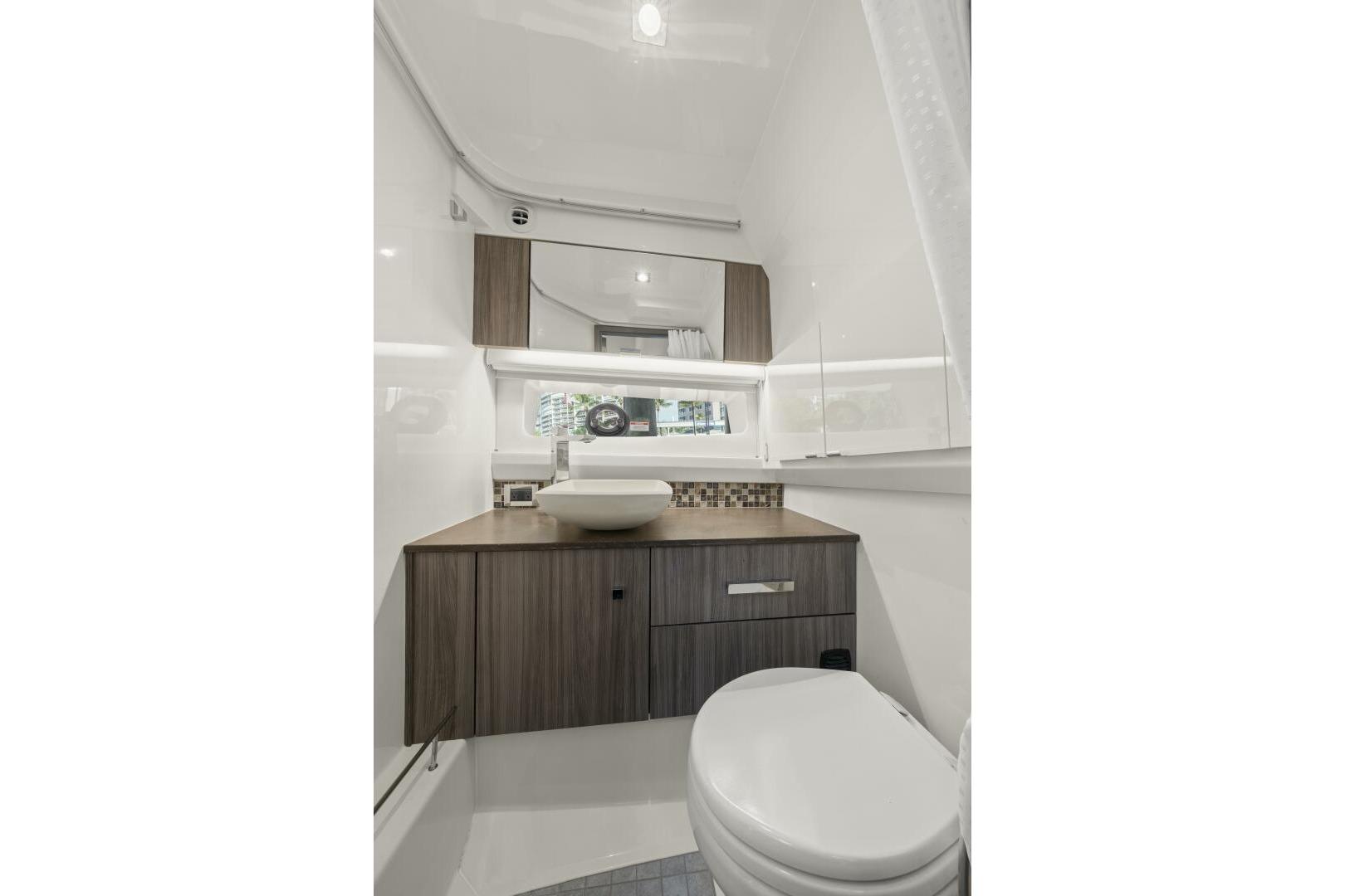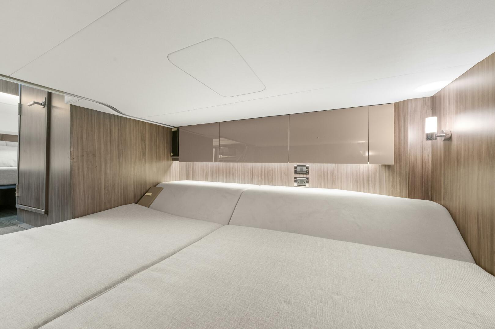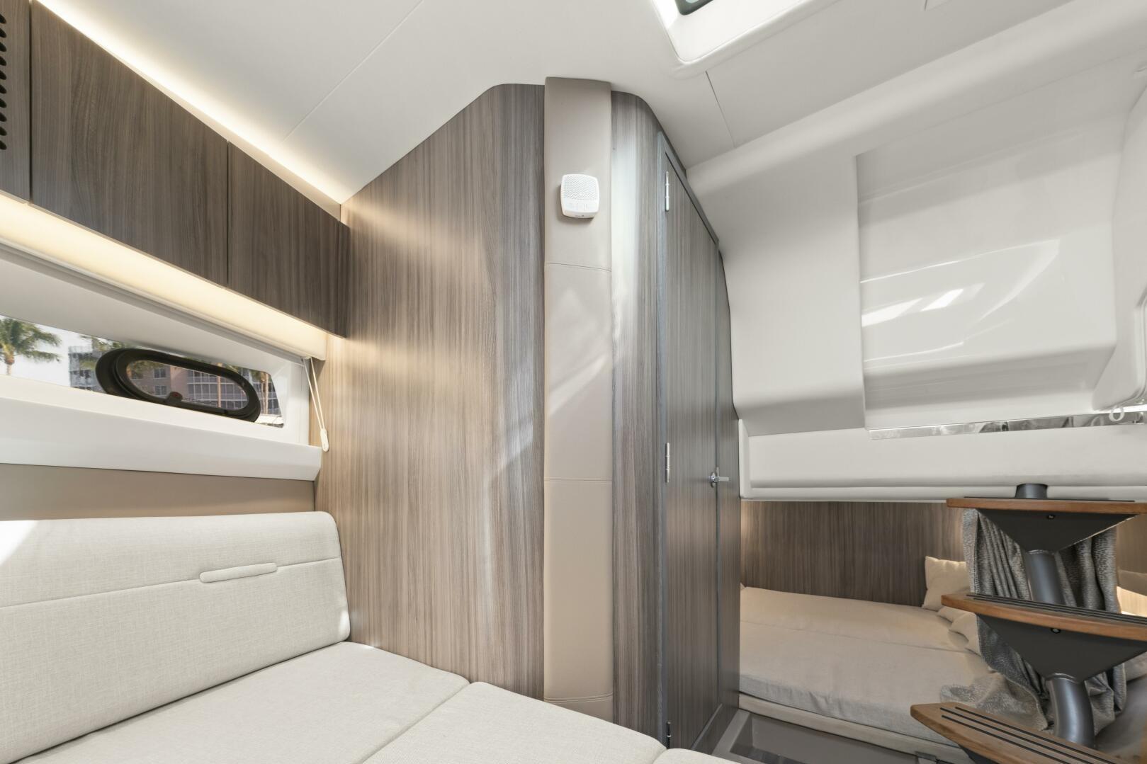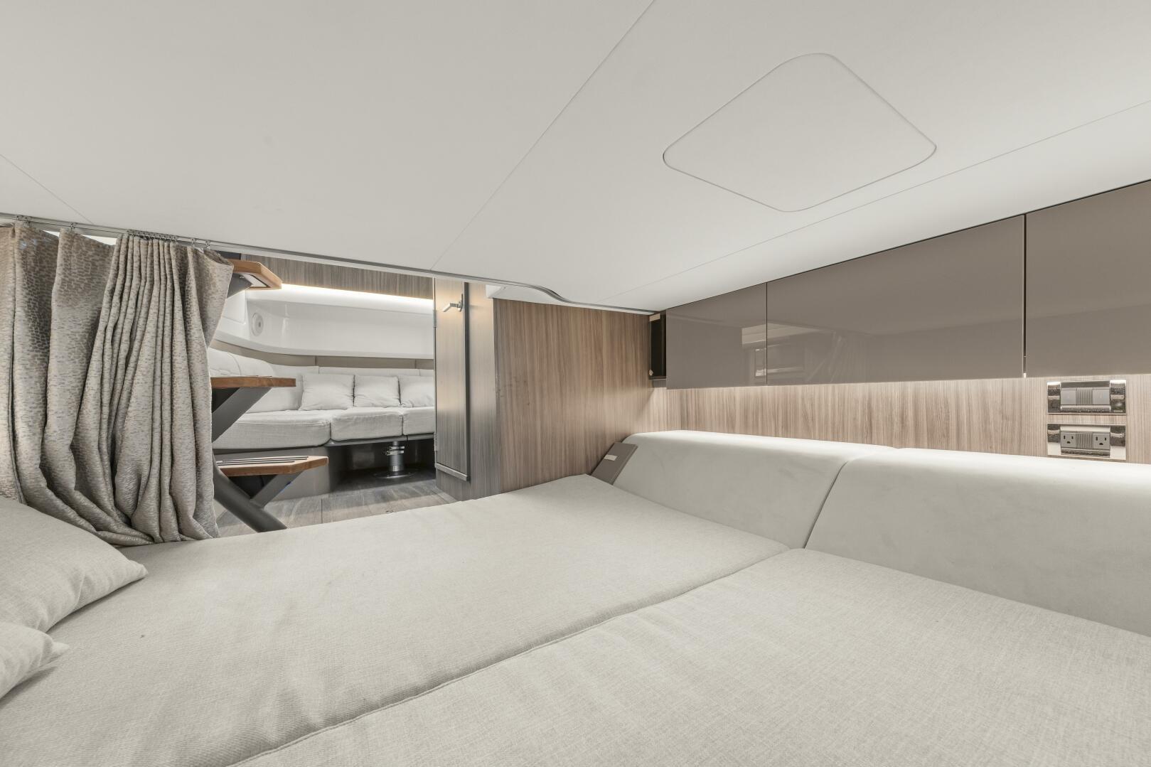Excellence. An expansive cockpit social zone has a well-appointed wet bar with refrigerator, sink and available dual grills while the innovative fold-down swim terrace opens to extend the cockpit all the way to the water. Innovations, found throughout, include Joystick Piloting and Dual Digital Dash with standard 16” Simrad Touchscreen displays. Bring your friends... all of them. The SLX 400 Outboard has a generous cabin and expansive bow and cockpit seating. All of this and amenities for entertainment means hours and days of fun aboard this award-winning boat.