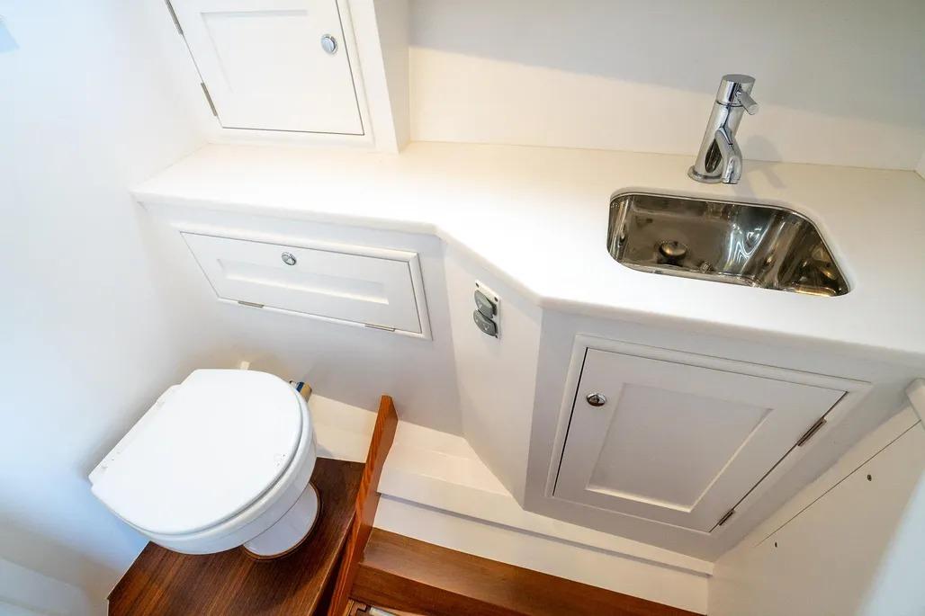 - Ample cockpit seating with storage, teak boarding steps & teak cockpit sole