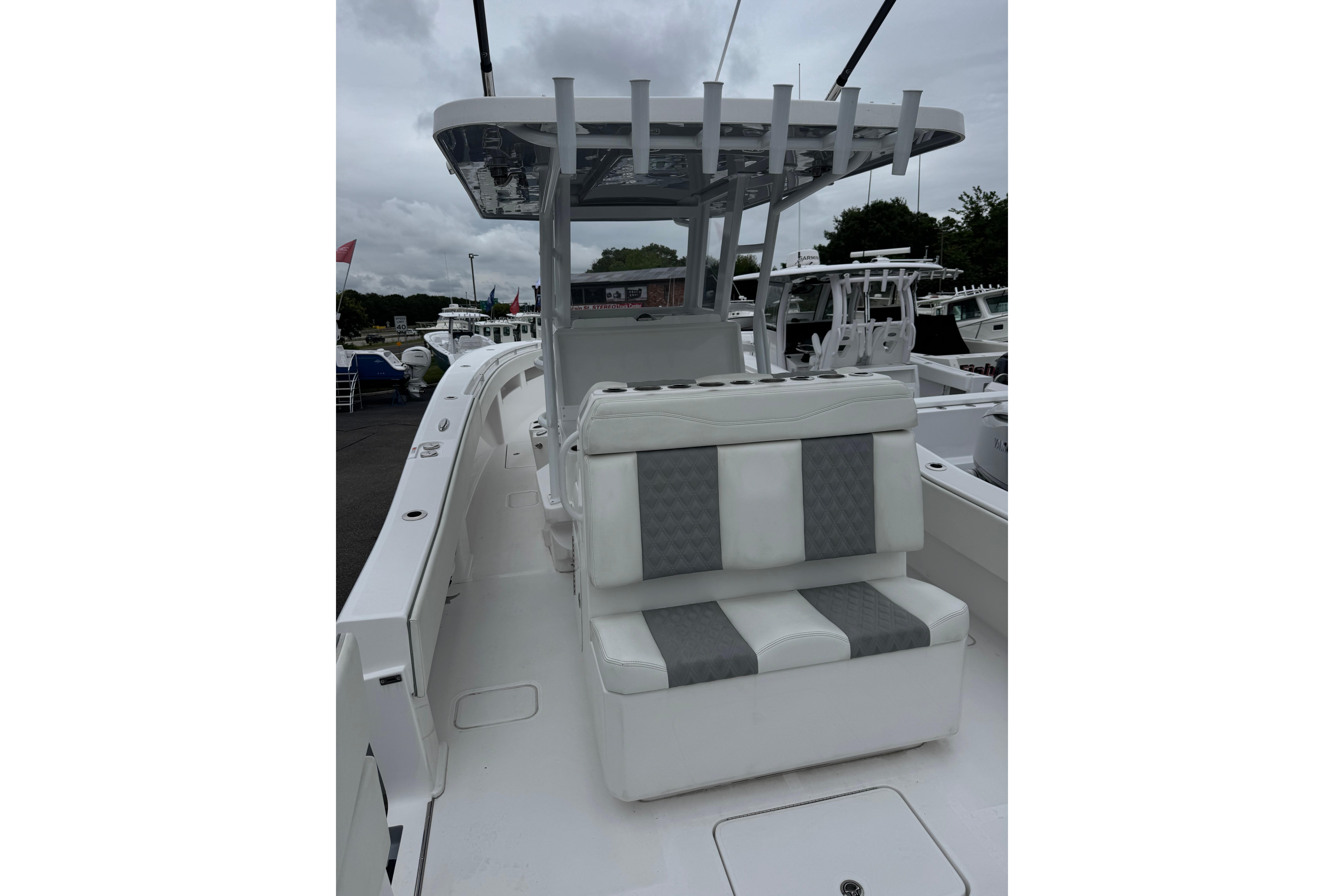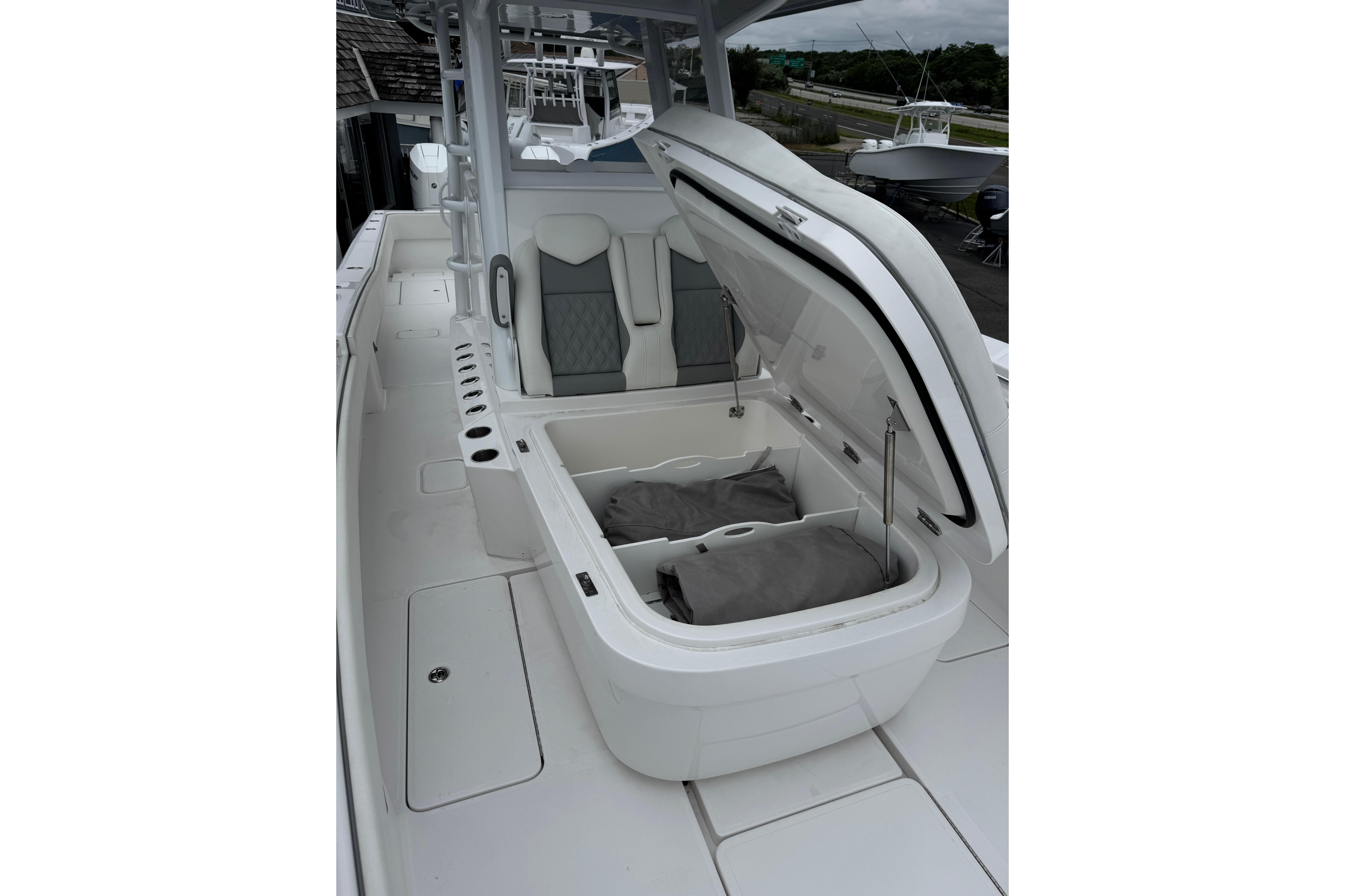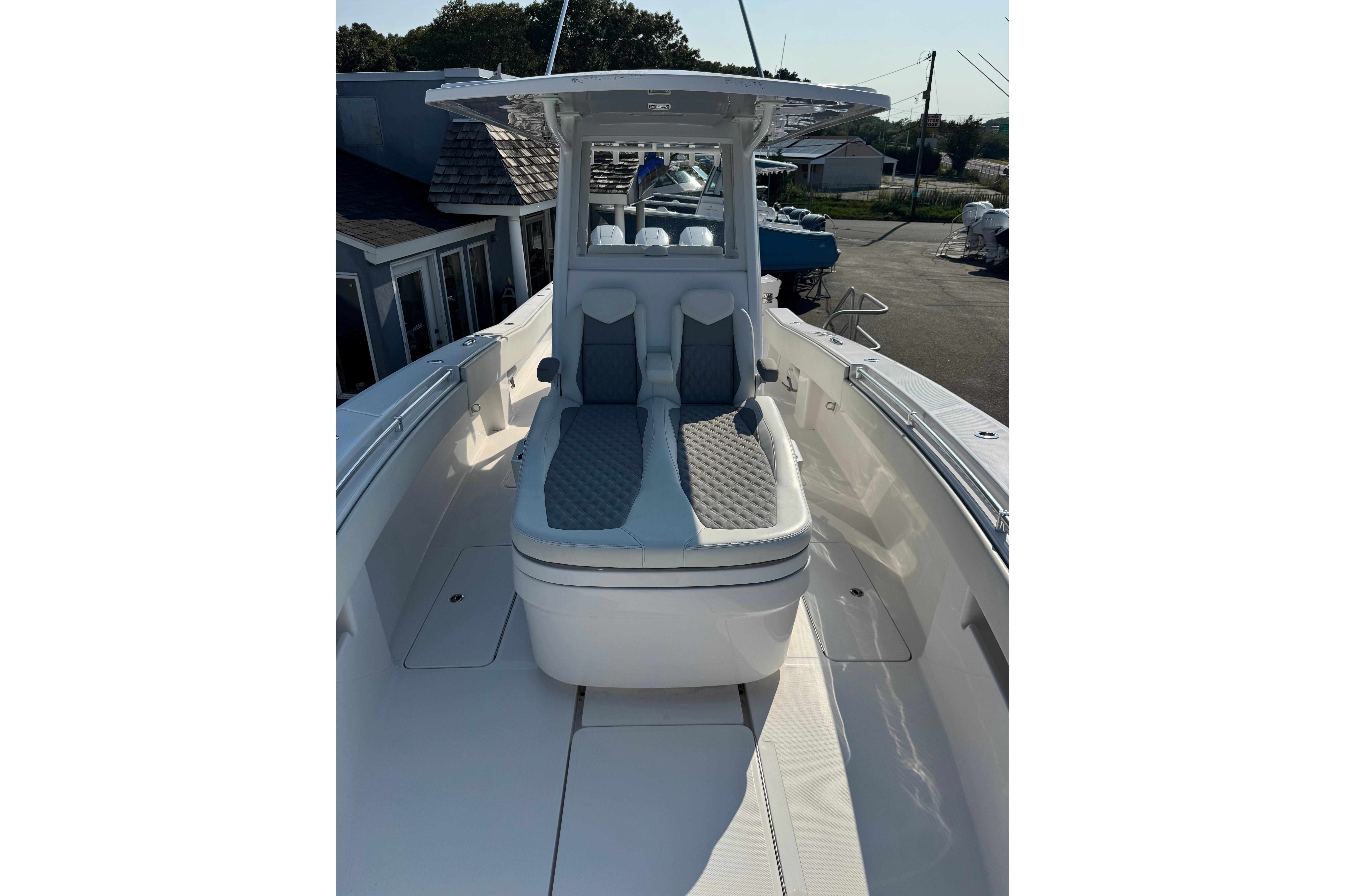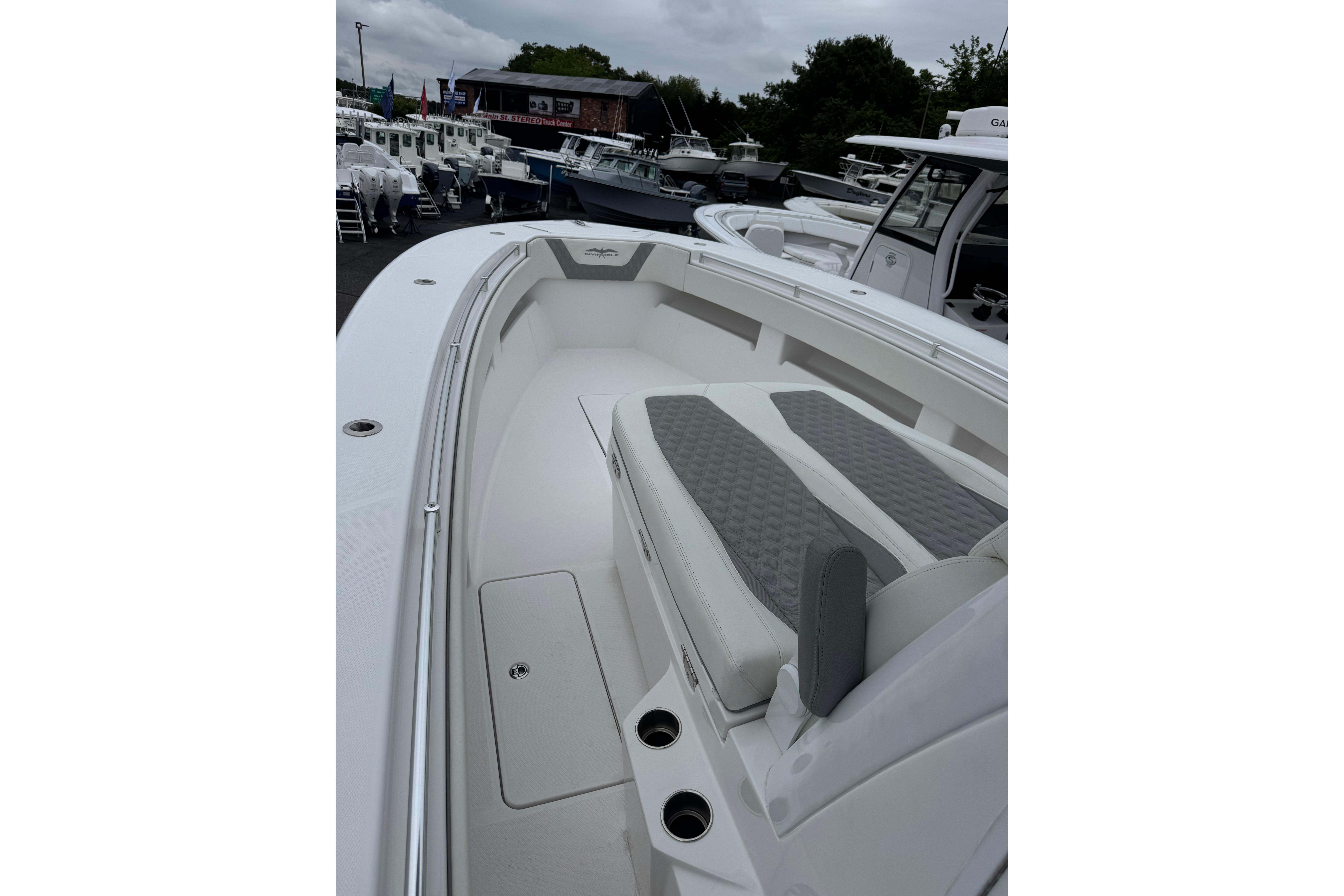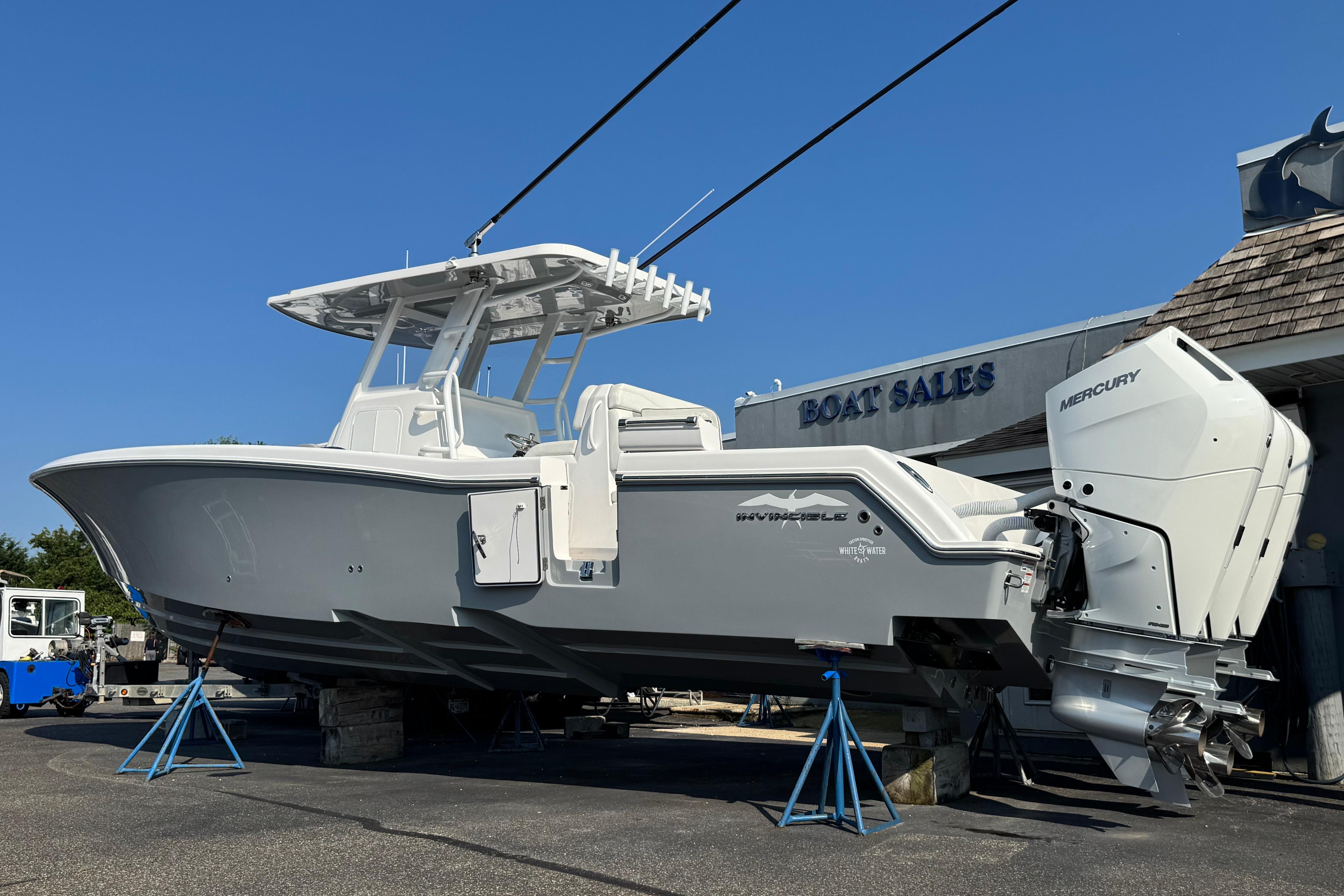 7 Hours on a brand-new V-10 400s, with all New Boat Warranties, this new style 36 Invincible comes with new integrated forward lounge, hard glass enclosure, 2-Tone Upholstery. Ready To be rigged with your choice of electronics. The Invincible that started it all in 2006 and continues to be the standard-bearer in her class. Enjoy big boat room and performance in an easy-to-handle package, with the flexibility to run either twin or triple engine configurations.