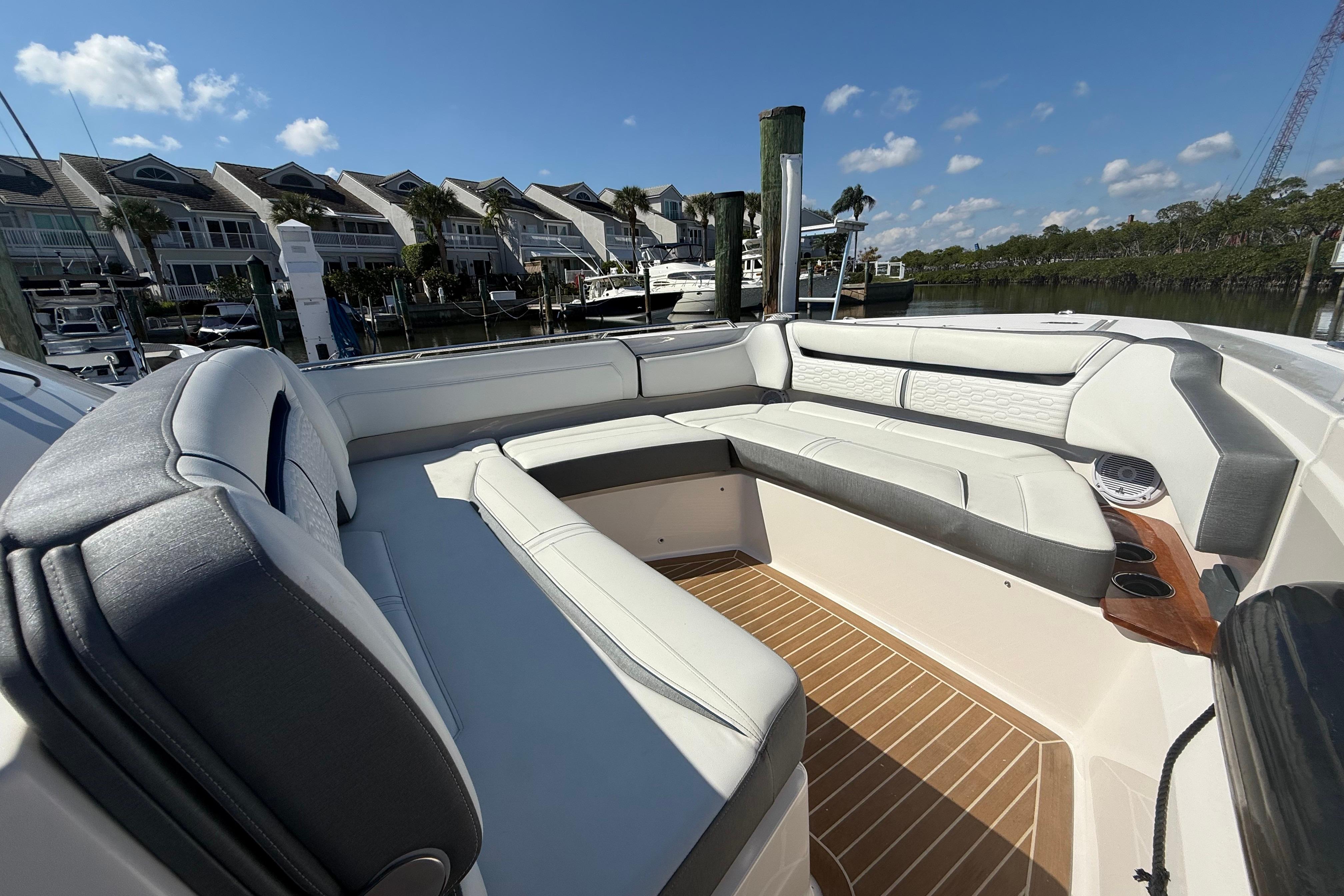 The 38 LS is the reinterpretation of luxury sport yachting, a fusion of sophistication with the demands of day yachting. The epitome of functionality, its walk-around capabilities, bridge and lounge seats via both port and starboard entries with an island style outdoor galley are just some of the features through which the 38 LS defines a new luxury sport yachting segment. Multiple and easily accessible social zones allow friends and families of all ages to experience a myriad of waterplay activities, exterior grilling and dining delights along with luxury lounging via convertible sun pad, elegant cabin and aft cockpit areas. Wrap around forward bow seating provides more space to laze and enjoy time on the water with family and friends.