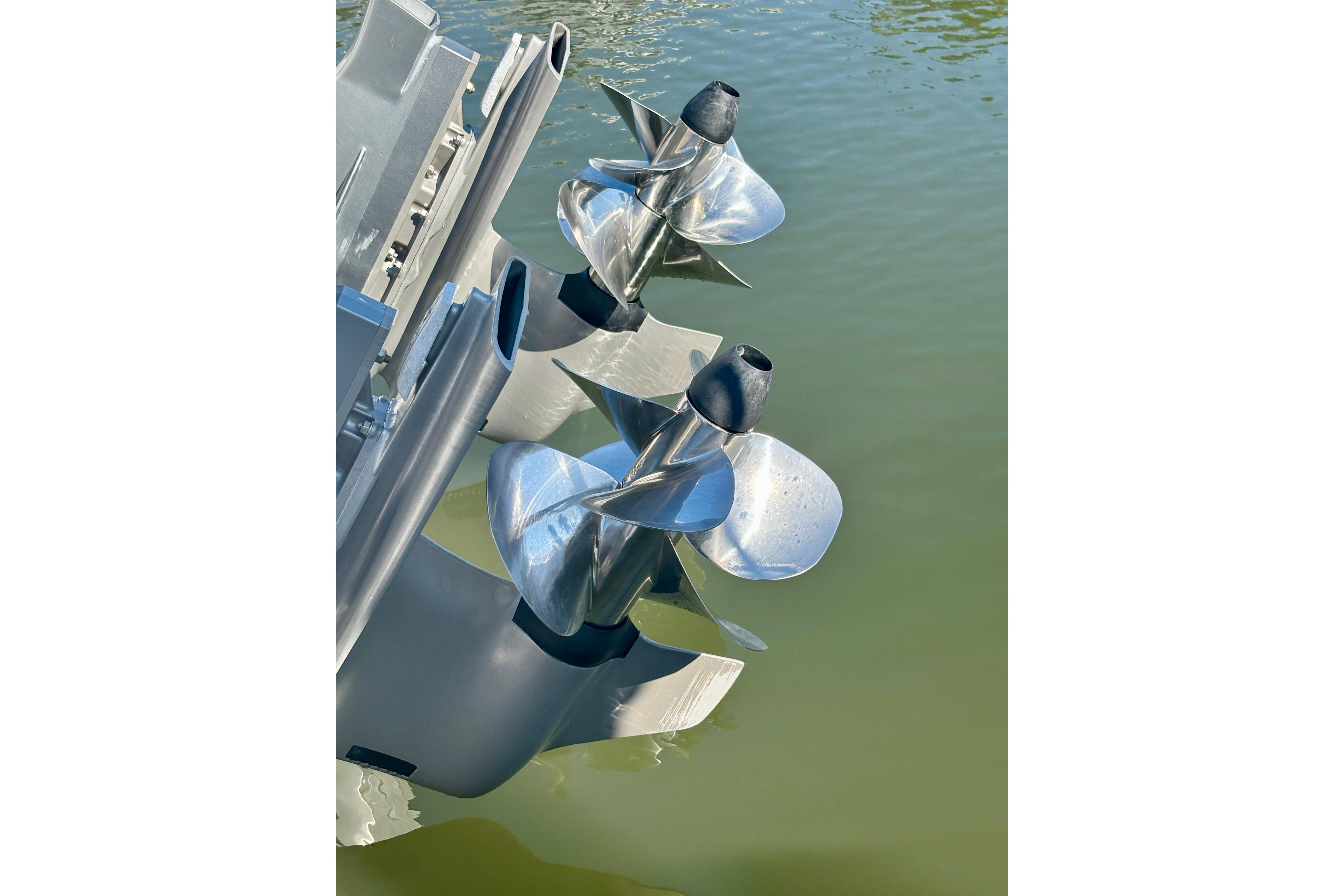 Experience the joy of motion aboard the 38 LS. Powered by triple Yamaha 350’s, she will boast performance, power and sleek styling. Glass cockpit integrated electronics including Garmin® marine navigation systems provide ease of use for captain, and the optional Yamaha helm master joystick steering provides additional control underway or docking. With a fuel capacity of 331 gallons, you have plenty of range to spend a couple days running to your favorite ports of call.