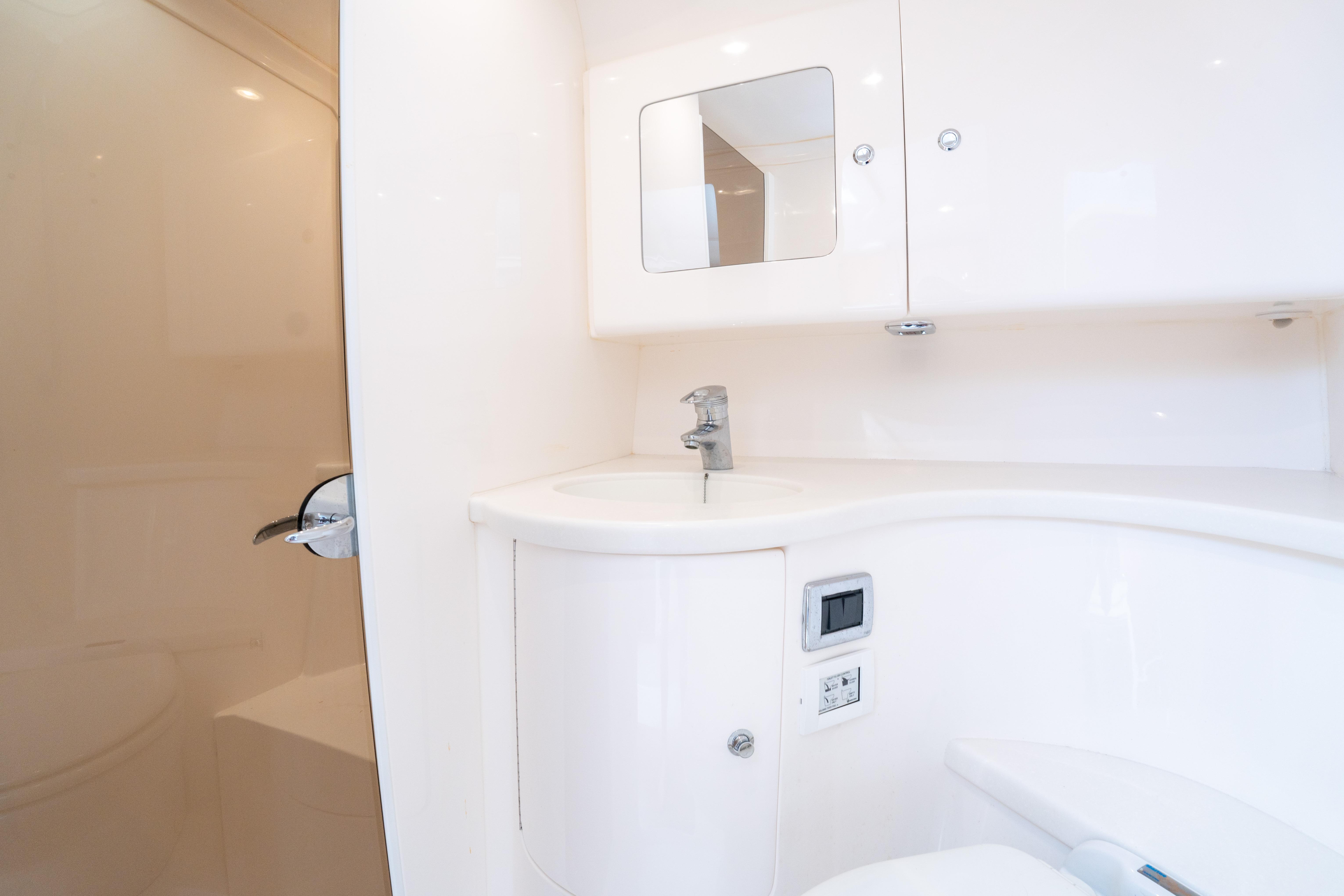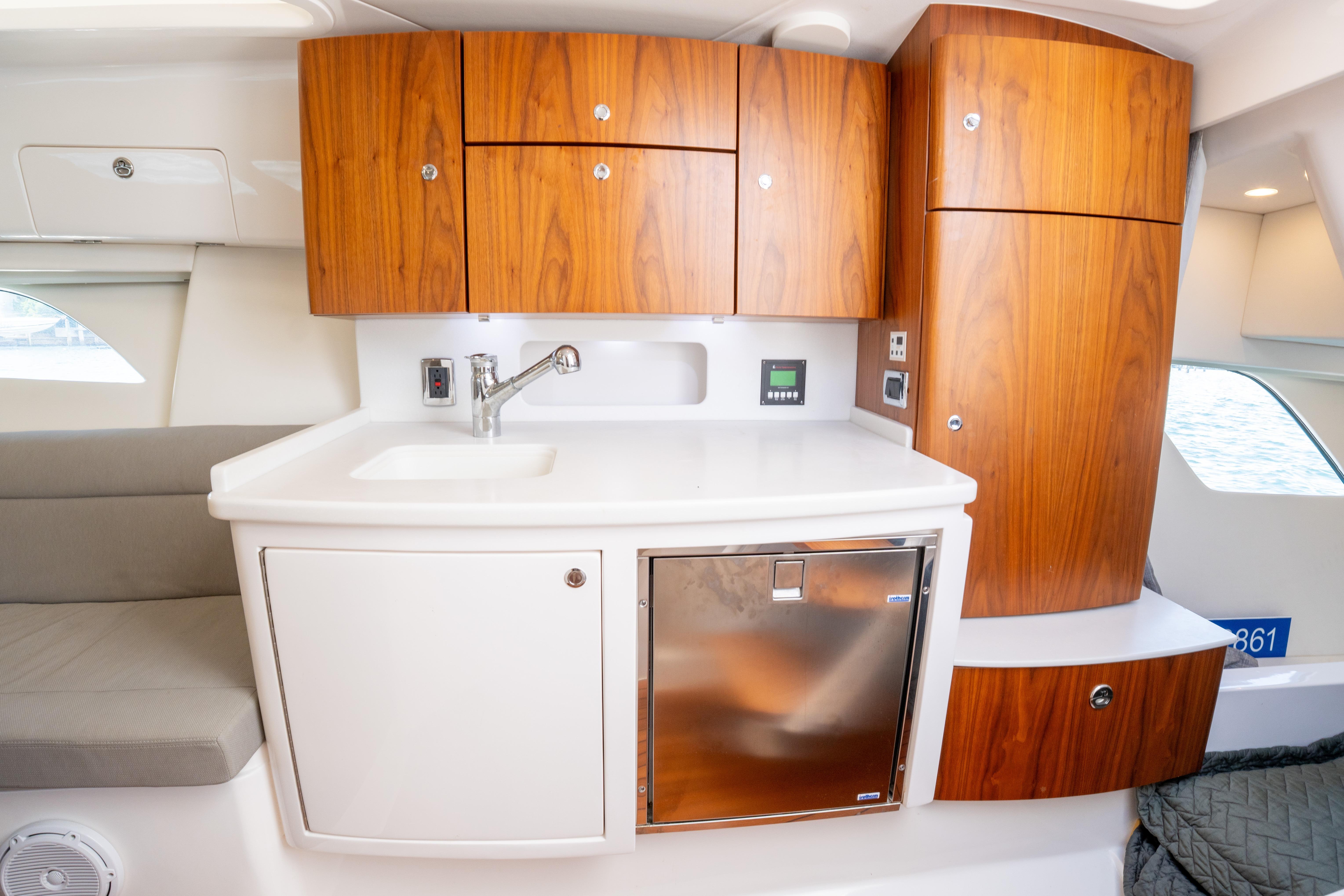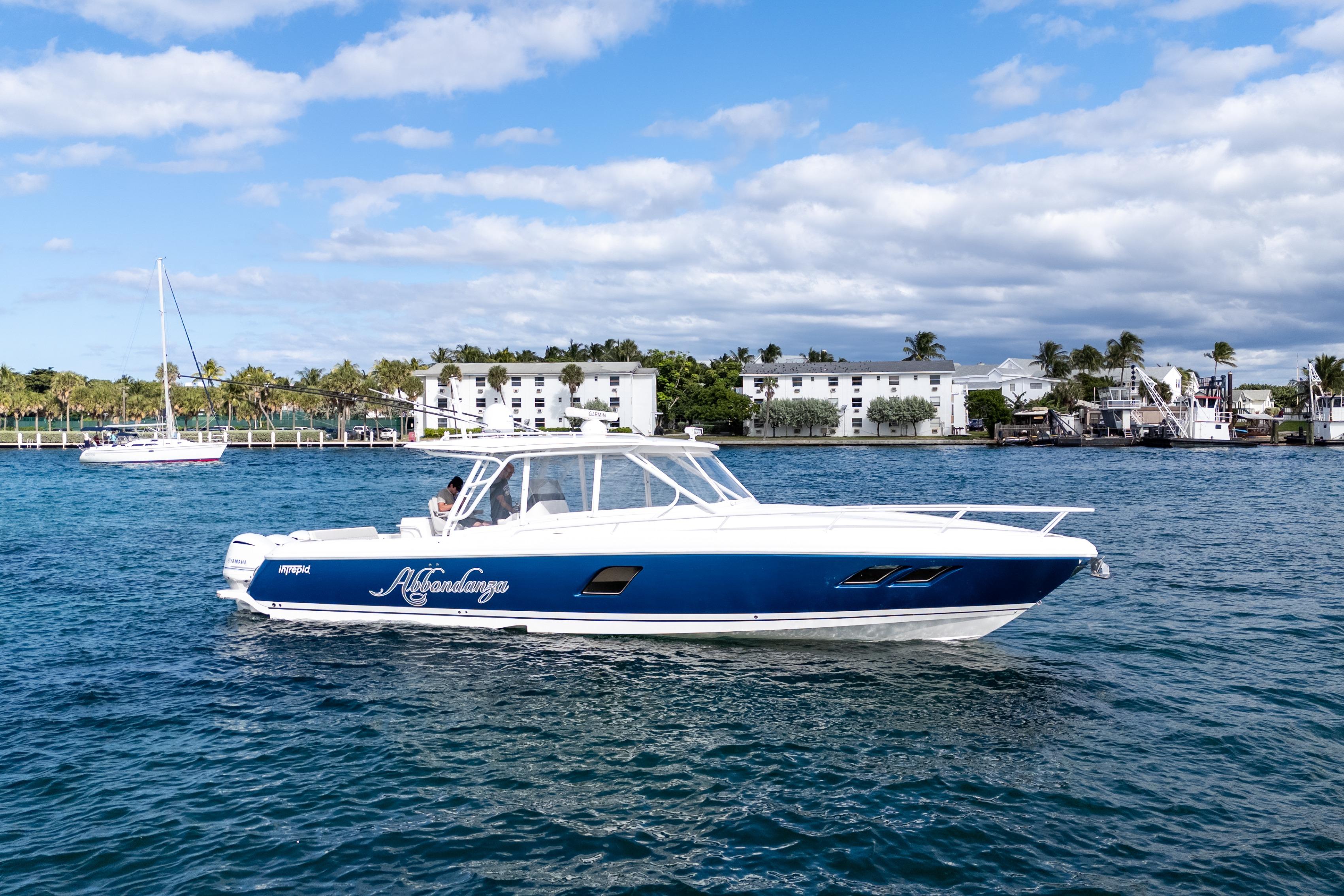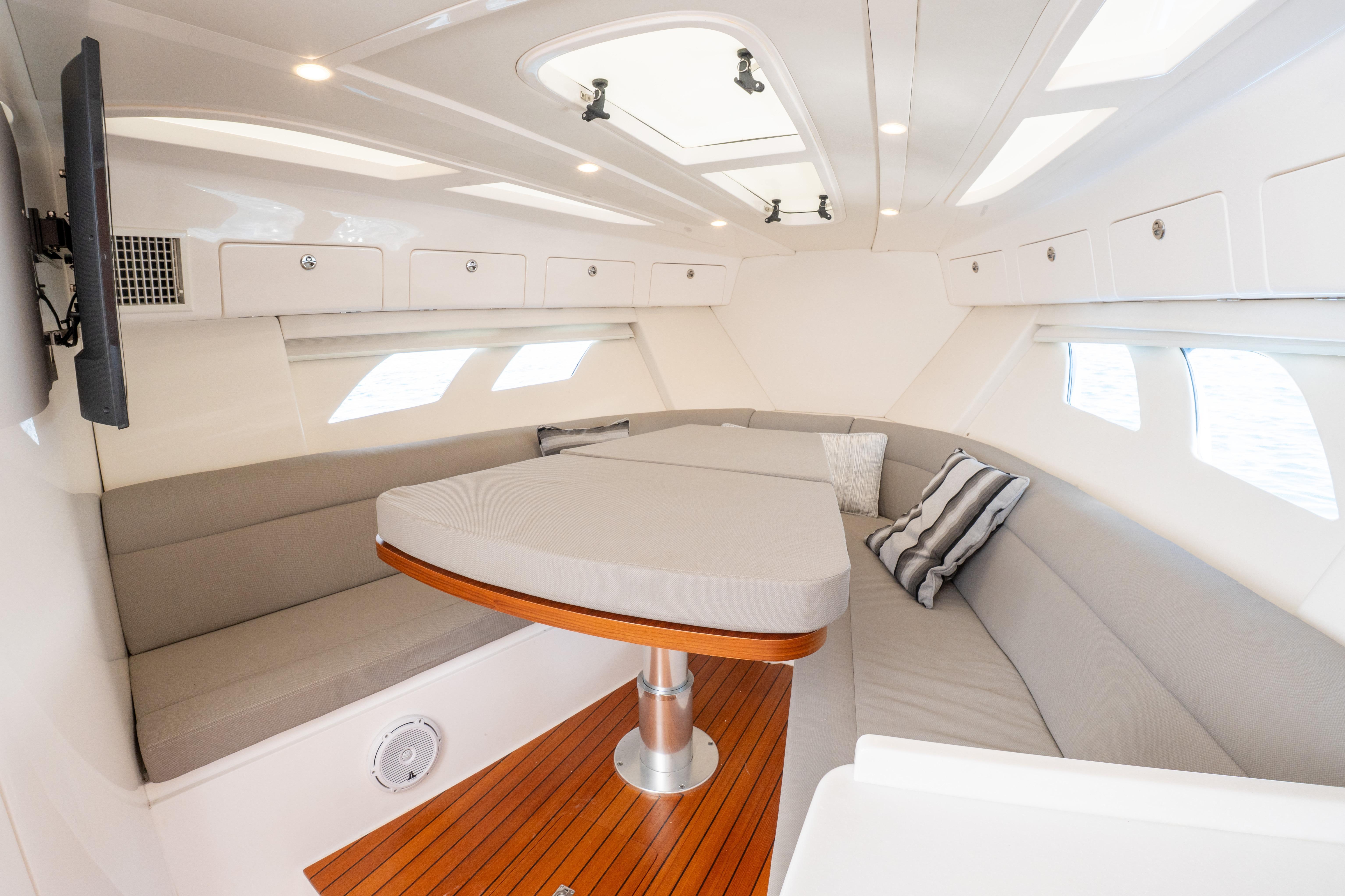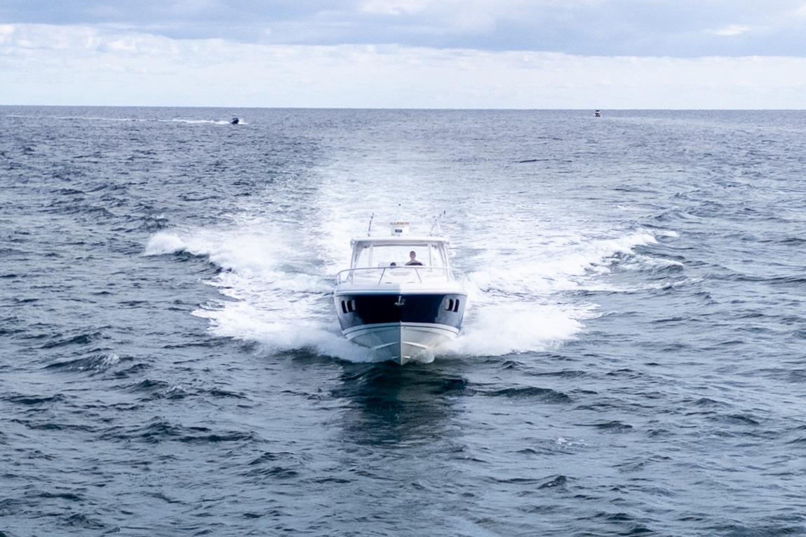 Sleek and stylish, the 407 Cuddy offers all the enhanced accommodations you would expect in a luxury performance cruiser. From a private head with shower stall and separate master berth with queen bed and hullside windows to a forward cabin section that easily converts to a large double berth. But none of it comes at the expense of the most advanced technology and fabrication techniques that deliver an incomparably smooth, dry ride with unparalleled performance. For divers and swimmers, it’s packed with thoughtful design features like a hullside dive door with step ladder and grab rails. Entertaining is elevated with cozy, custom seating and a stylish wet bar while serious sport fishermen will take note of the baitwells, rod holders, tank storage, tackle boxes and raw water washdown.
