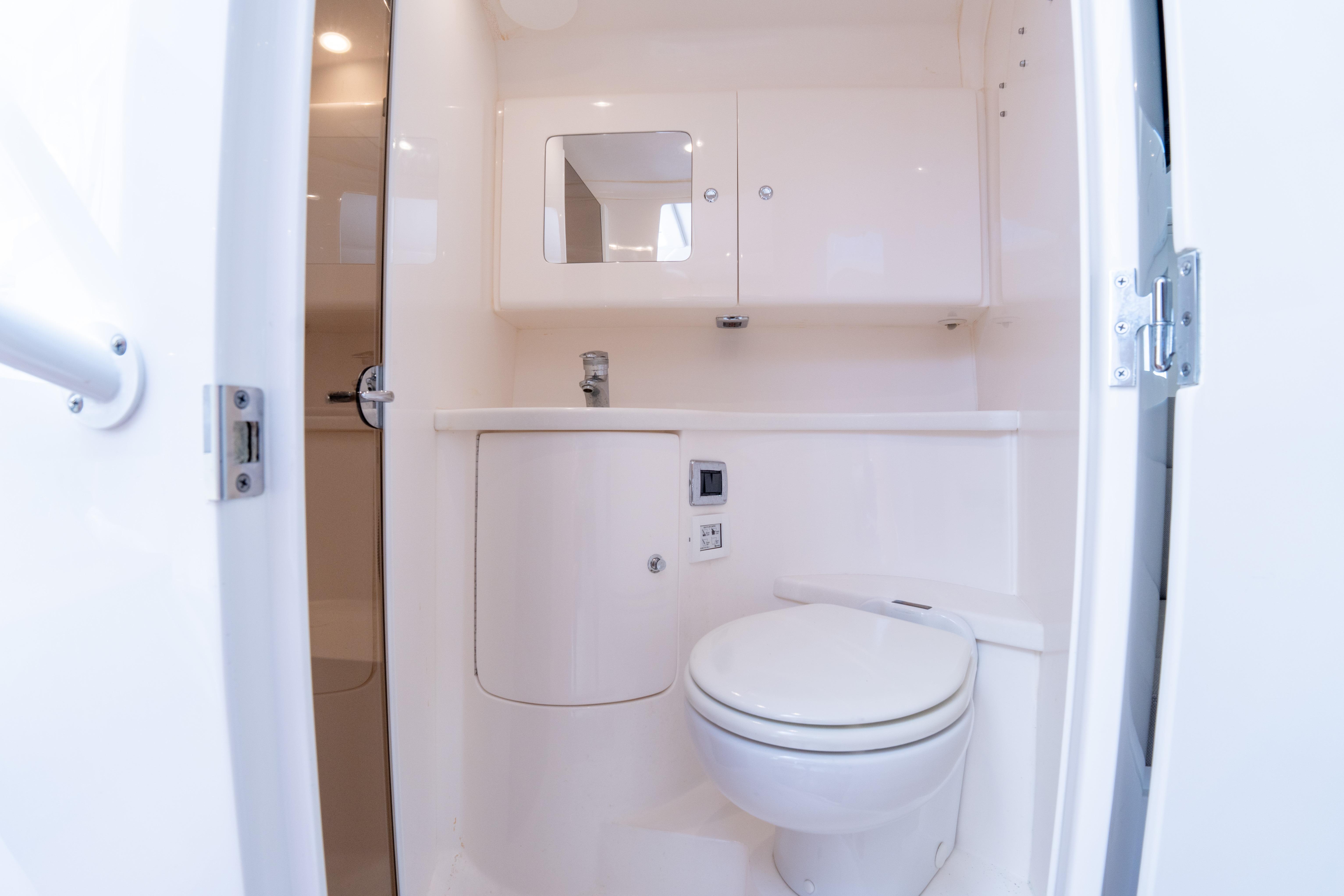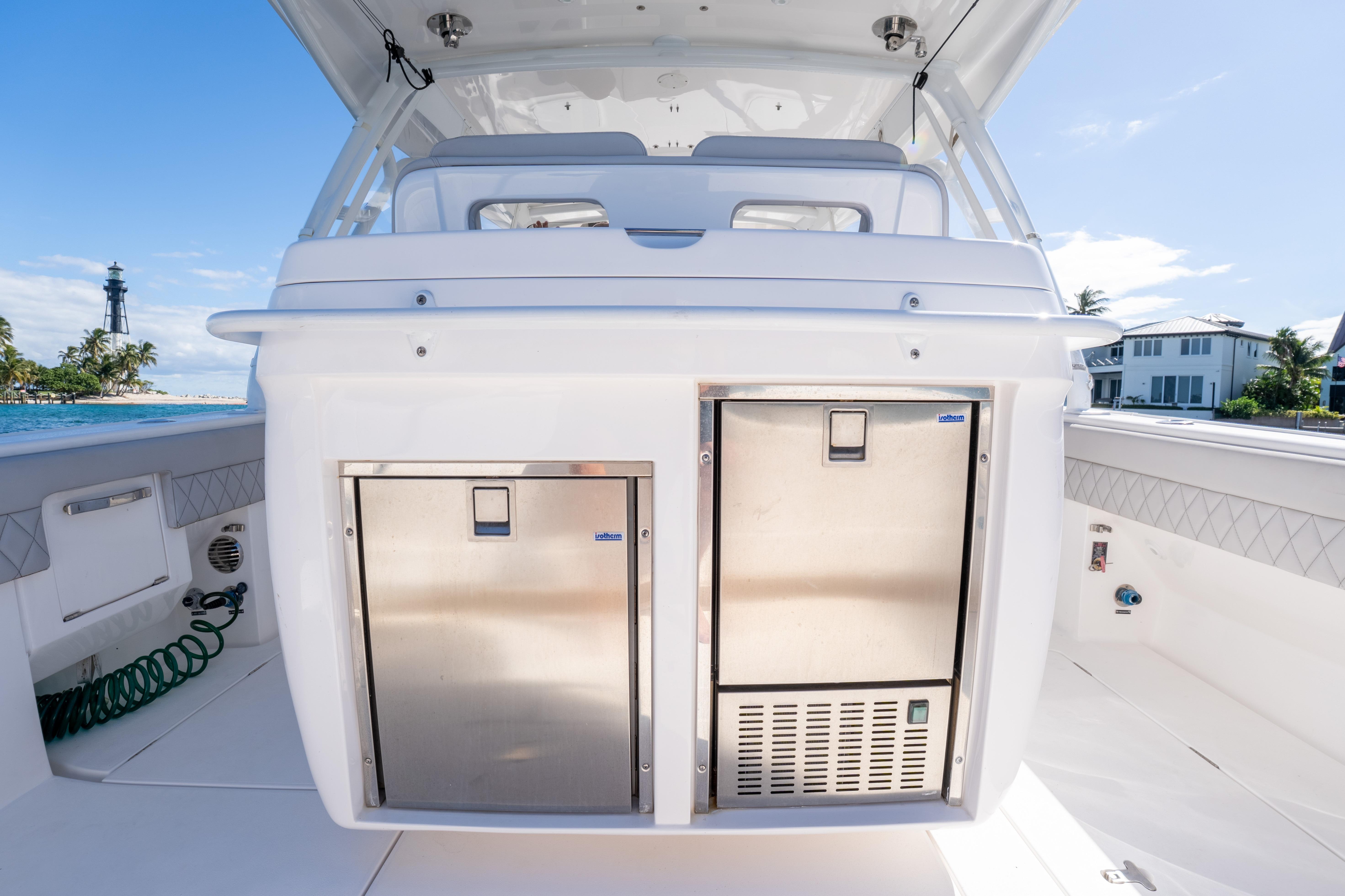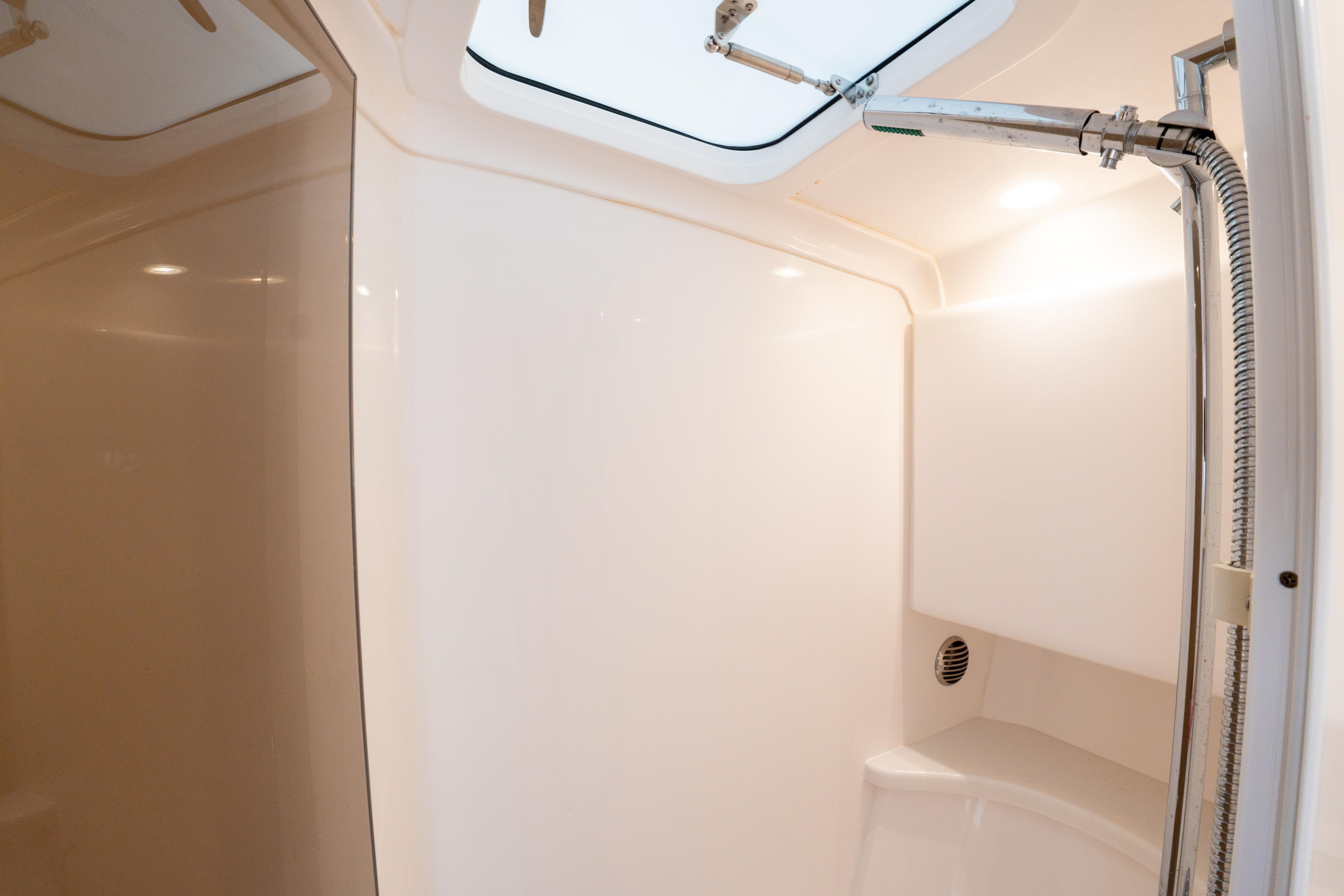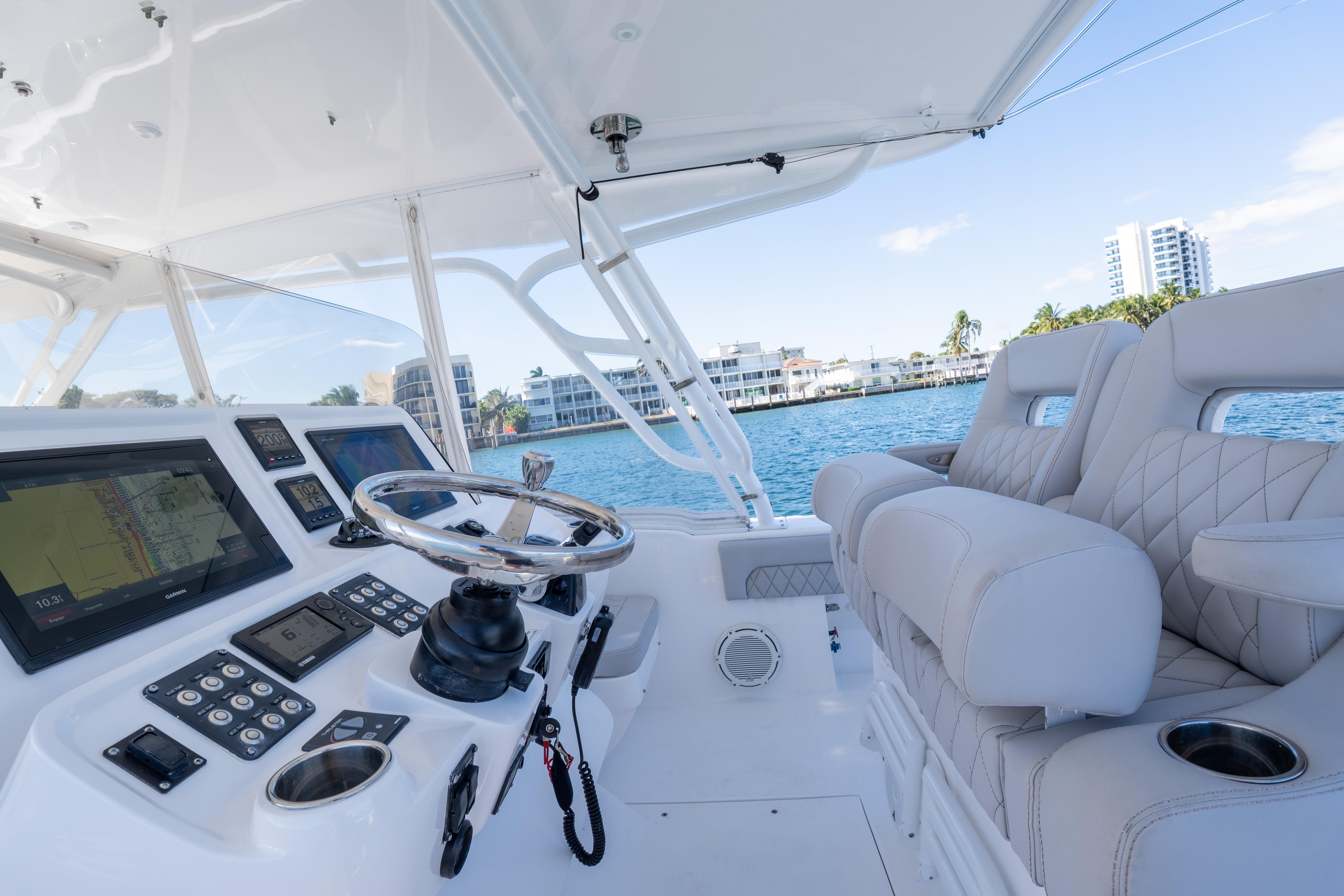 Sleek and stylish, the 407 Cuddy offers all the enhanced accommodations you would expect in a luxury performance cruiser. From a private head with shower stall and separate master berth with queen bed and hullside windows to a forward cabin section that easily converts to a large double berth. But none of it comes at the expense of the most advanced technology and fabrication techniques that deliver an incomparably smooth, dry ride with unparalleled performance. For divers and swimmers, it’s packed with thoughtful design features like a hullside dive door with step ladder and grab rails. Entertaining is elevated with cozy, custom seating and a stylish wet bar while serious sport fishermen will take note of the baitwells, rod holders, tank storage, tackle boxes and raw water washdown.
