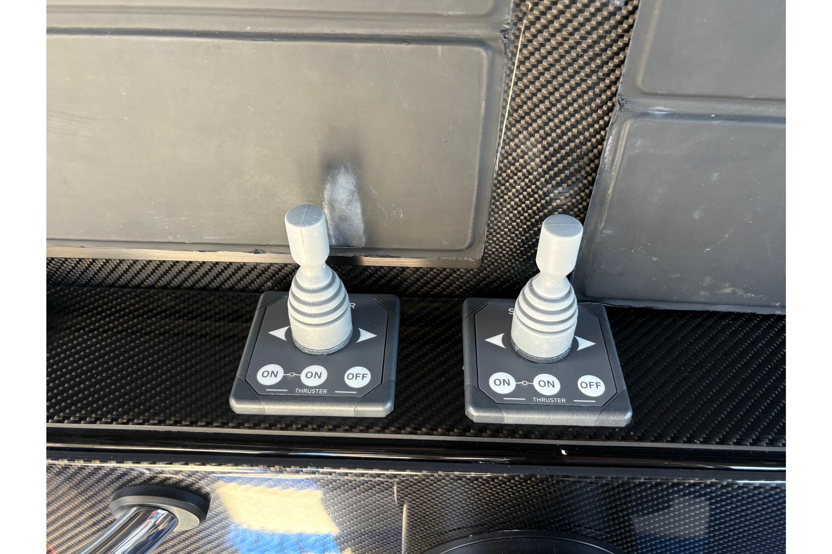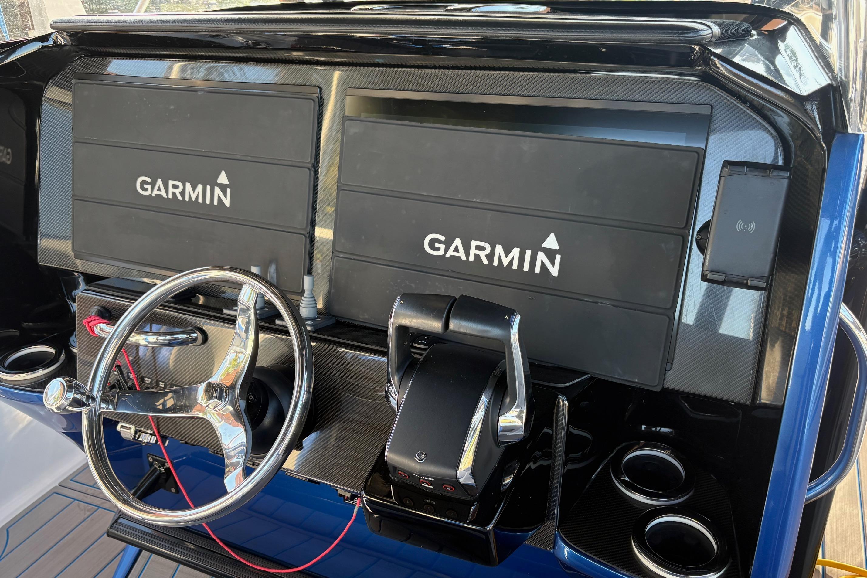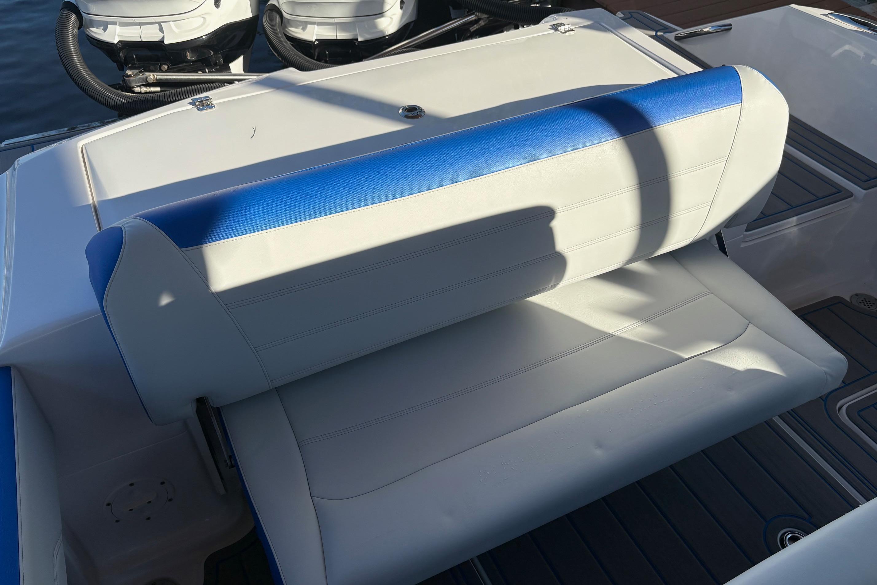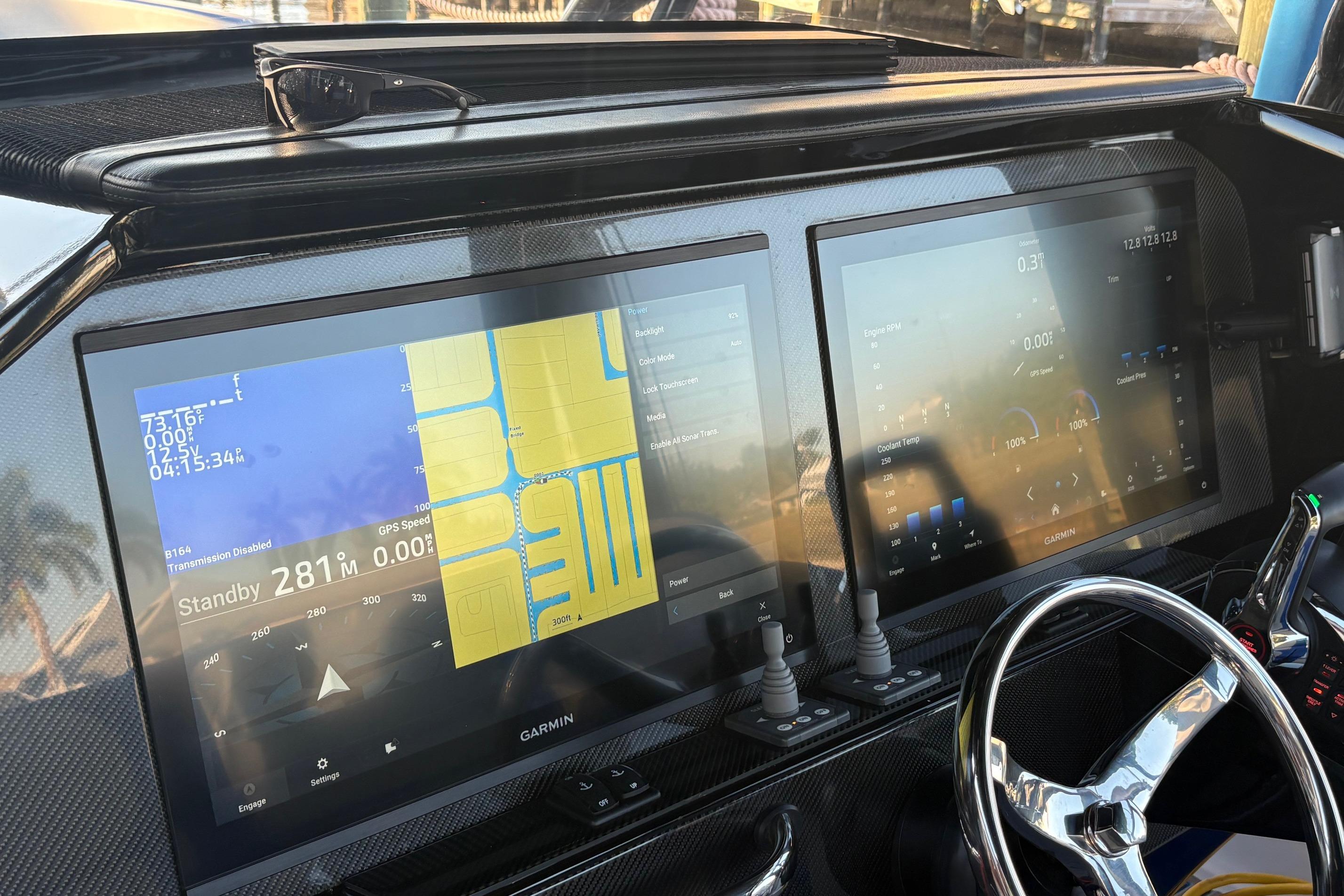 2023 390 Sport powered by reliable Mercury Racing 400R's. Set up for both cruising and fishing. 9222, 22" Garmins, 24" Radar, Sonar, Auto Pilot, JL Audio System, VHF, XM-Sirius, Remote controlled Spot Light, Lumishore Underwater lights, Single point fresh water engine flush, Both Bow and Stern Thrusters, 12V Cabin AC, Additional Second Fuel Tank, Fishing Package with Full Sized Live-Well and fold out rear Bench Seat, Plenty of Rod and Holders and Combination Rod Holder/ Cup Holders. For Cruising, there's a Second Row Rear Seat and the Optional, Forward Facing Bow Seat Backrests. Custom Graphics. Priced to Sell! Please Note: The Livewell can be permanently removed and replaced with a built in rear bench seat. Trailer not included but available.