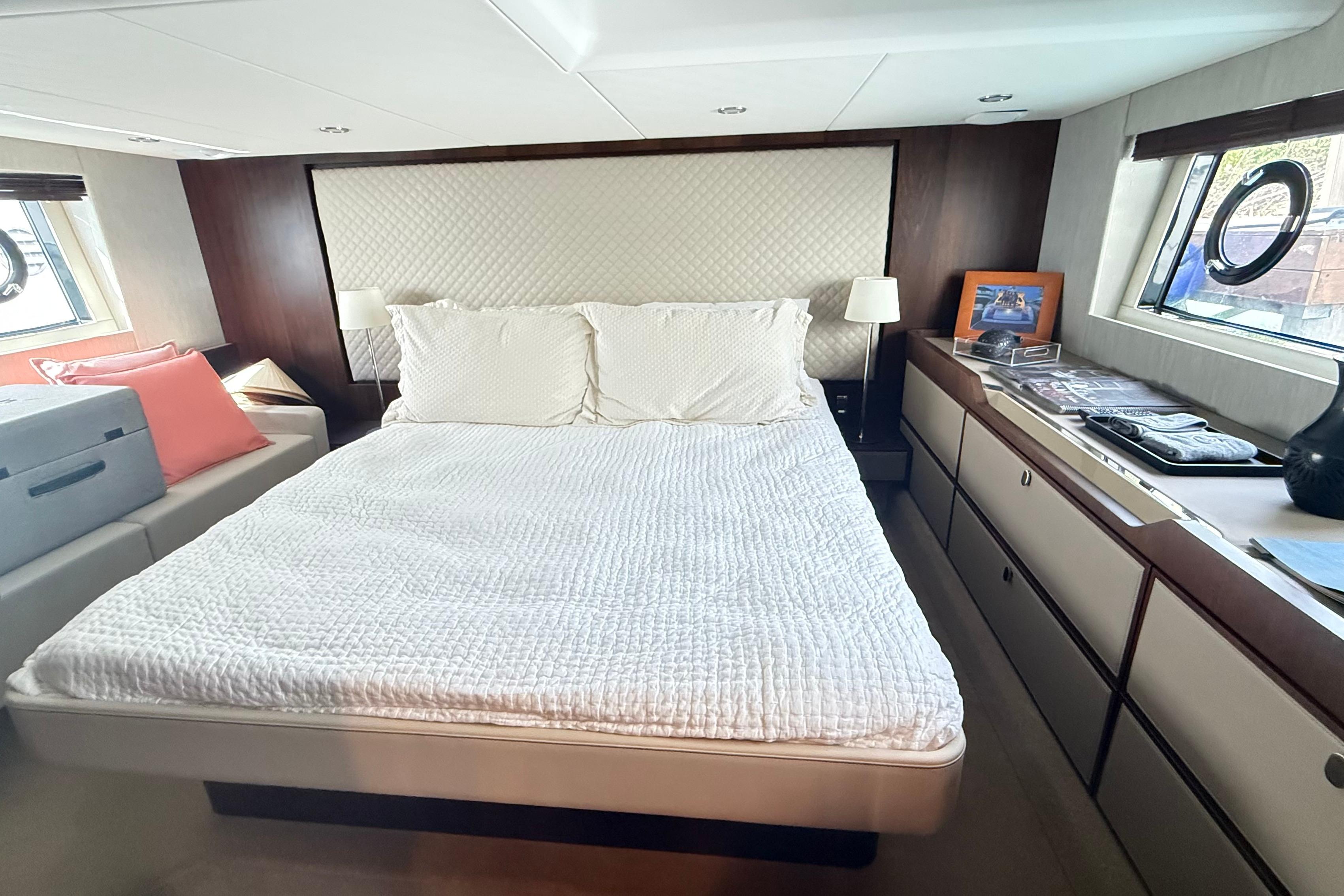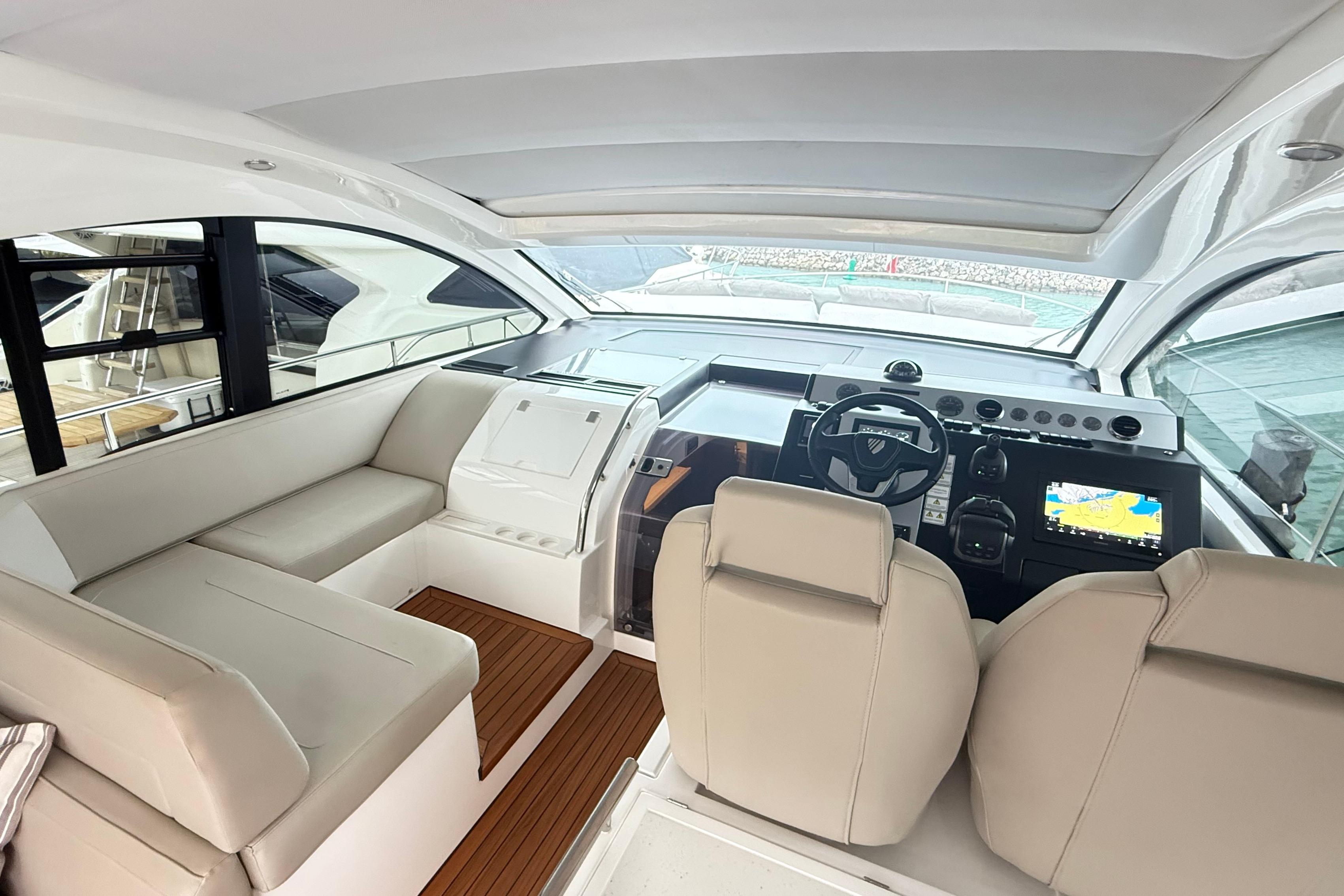 Of course, the Targa 50 OPEN is built for speed and all-out thrills. The exterior looks are a giveaway especially with its head-turning anthracite roof. And to add a sporty touch, there is the choice of vivid red, burnt orange or electric blue upholstery and complementing helm seats. On the inside, even more luxury awaits. Beautiful Italian leather. Carefully considered high and low-level lighting to cabins. And in the master cabin, a stunning feature headboard. It’s these understated, and not so understated touches, that set the Targa 50 OPEN apart.