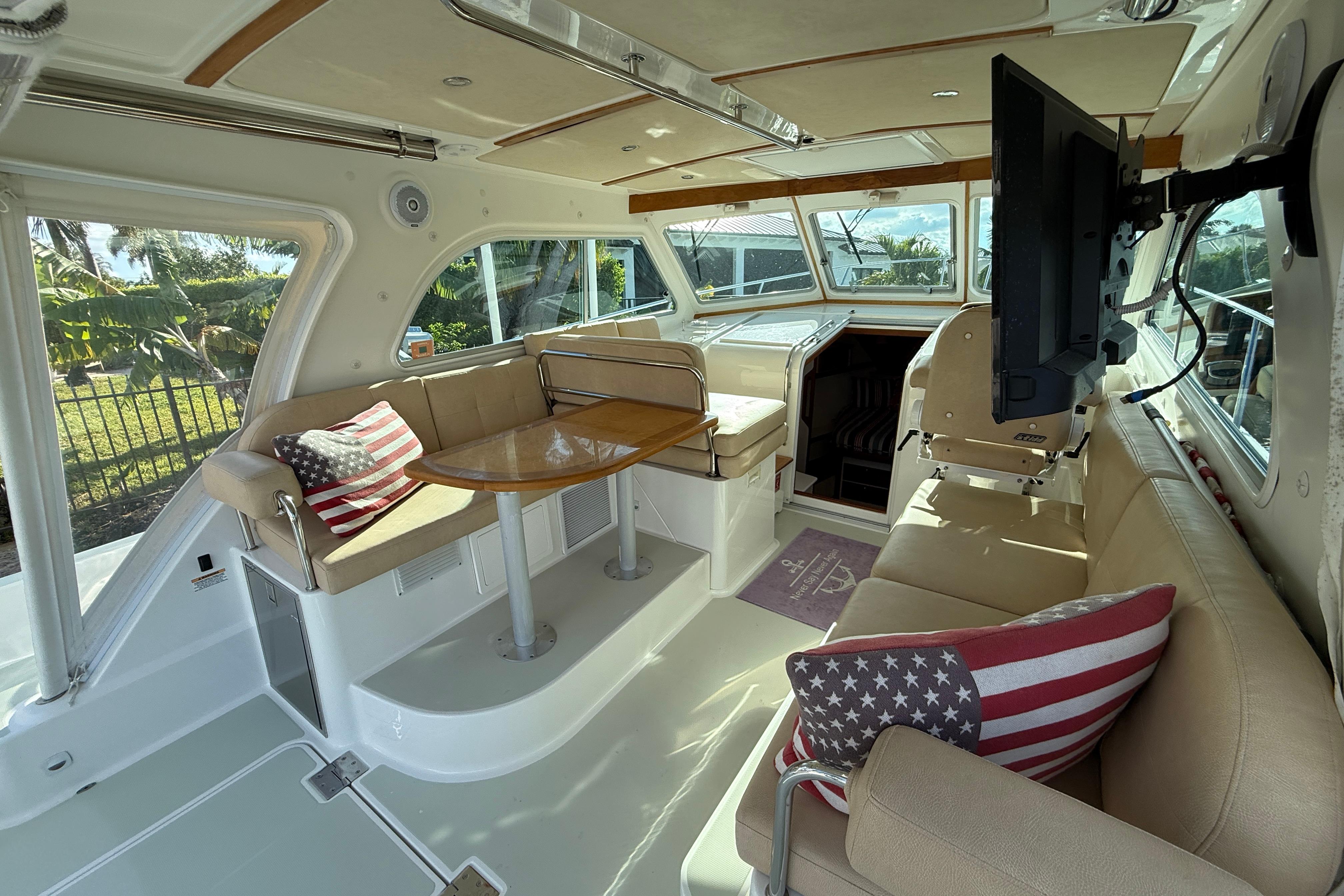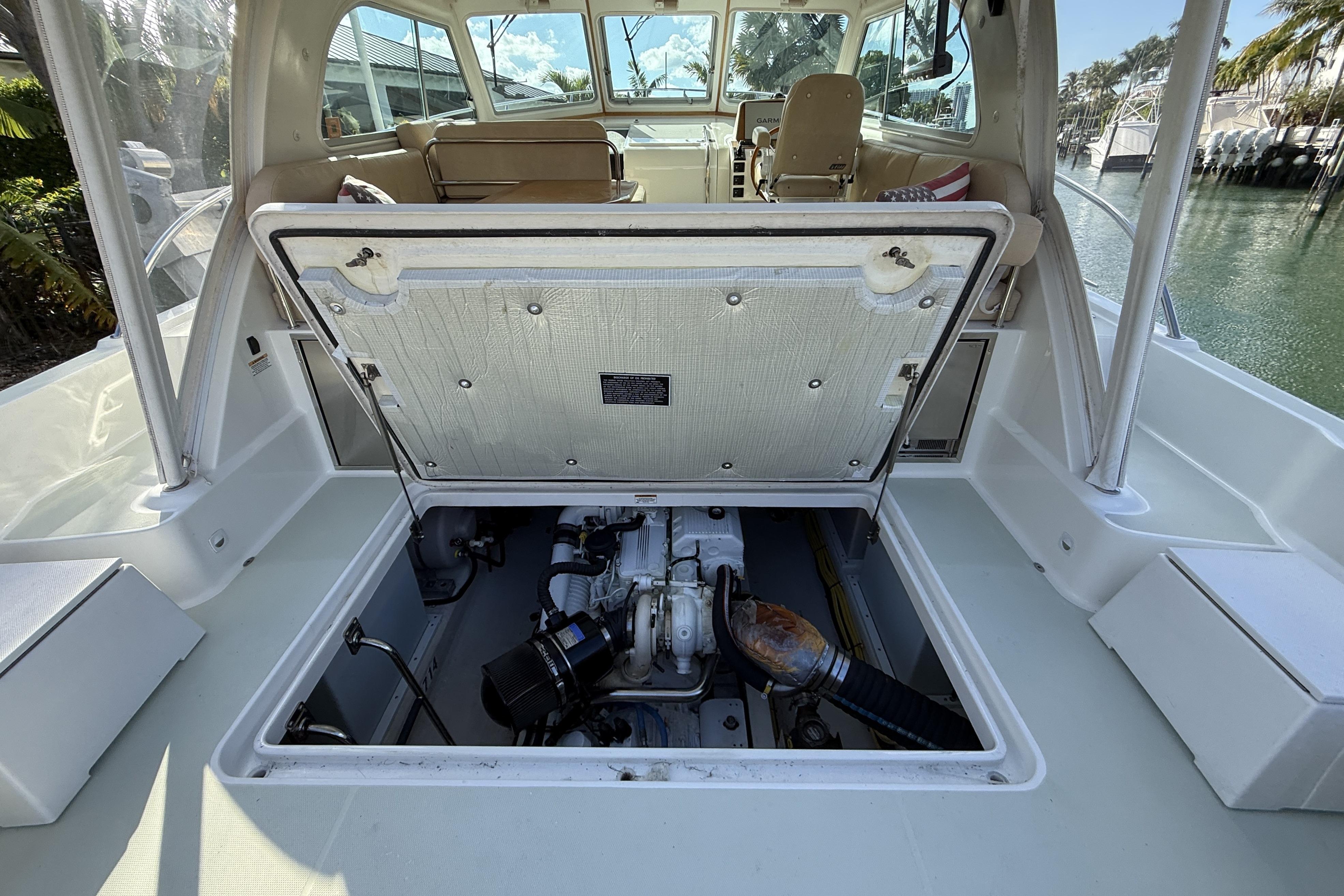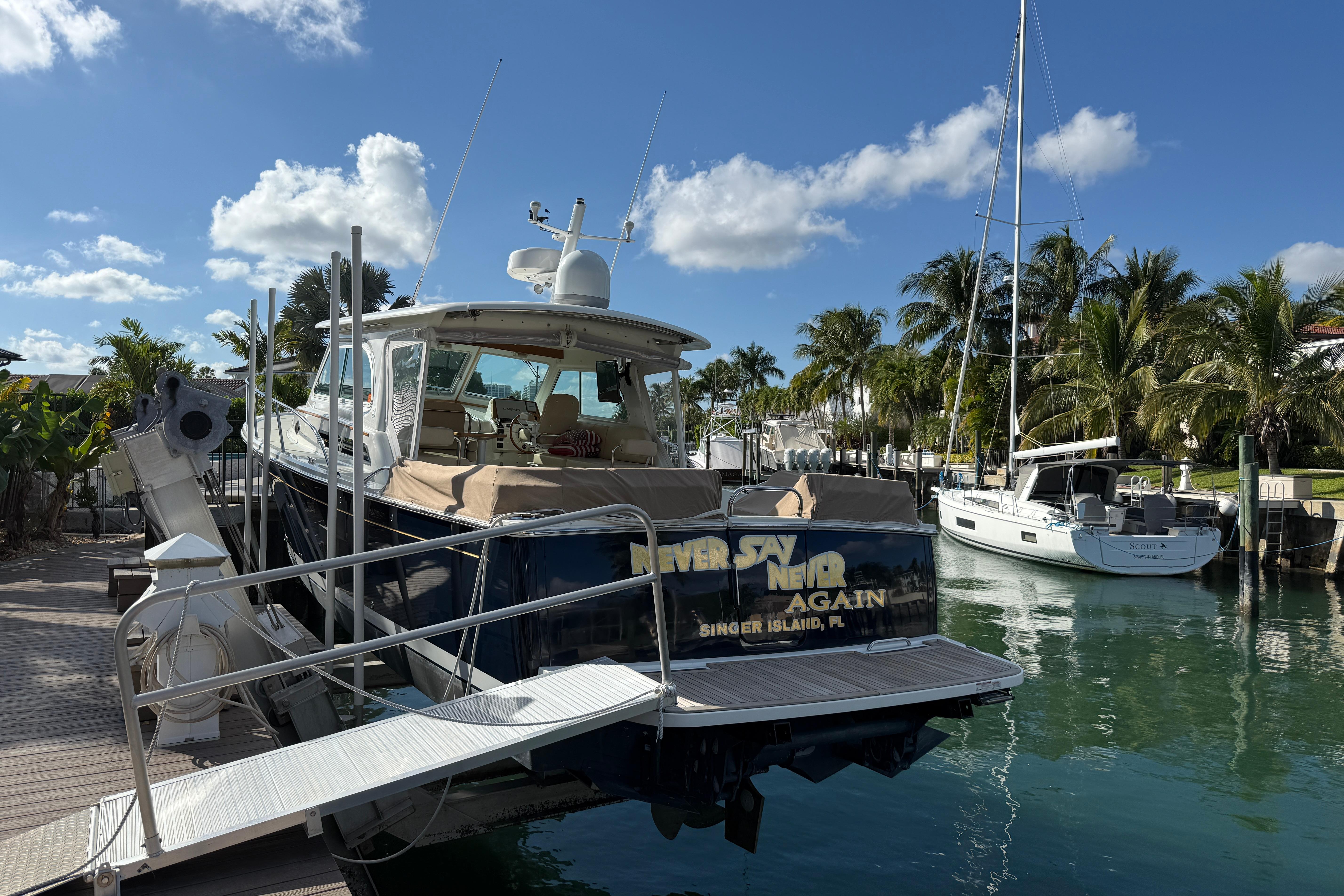 NEVER SAY NEVER AGAIN is a wonderful example of the Back Cove 37 Downeast model. She has been lightly used and is lift kept and in excellent condition. Her layout is extremely social with ample seating options in the pilothouse and the cockpit. The pilothouse and cockpit are on one level which only furthers the sense of the boat being very well connected. The interior feels especially open and airy with the Herreshoff style woodwork of white bulkheads and varnished teak wood trim. Back Cove really hit the mark with this model for those looking to take friends and family out for day trips. She is well equipped and capable for those weekend and longer trips as well. "Practical Elegance" is Back Cove's tag line, and it perfectly describes this model with her beautiful lines, layout and amenities as well as her low maintenance and excellent fuel efficiency.