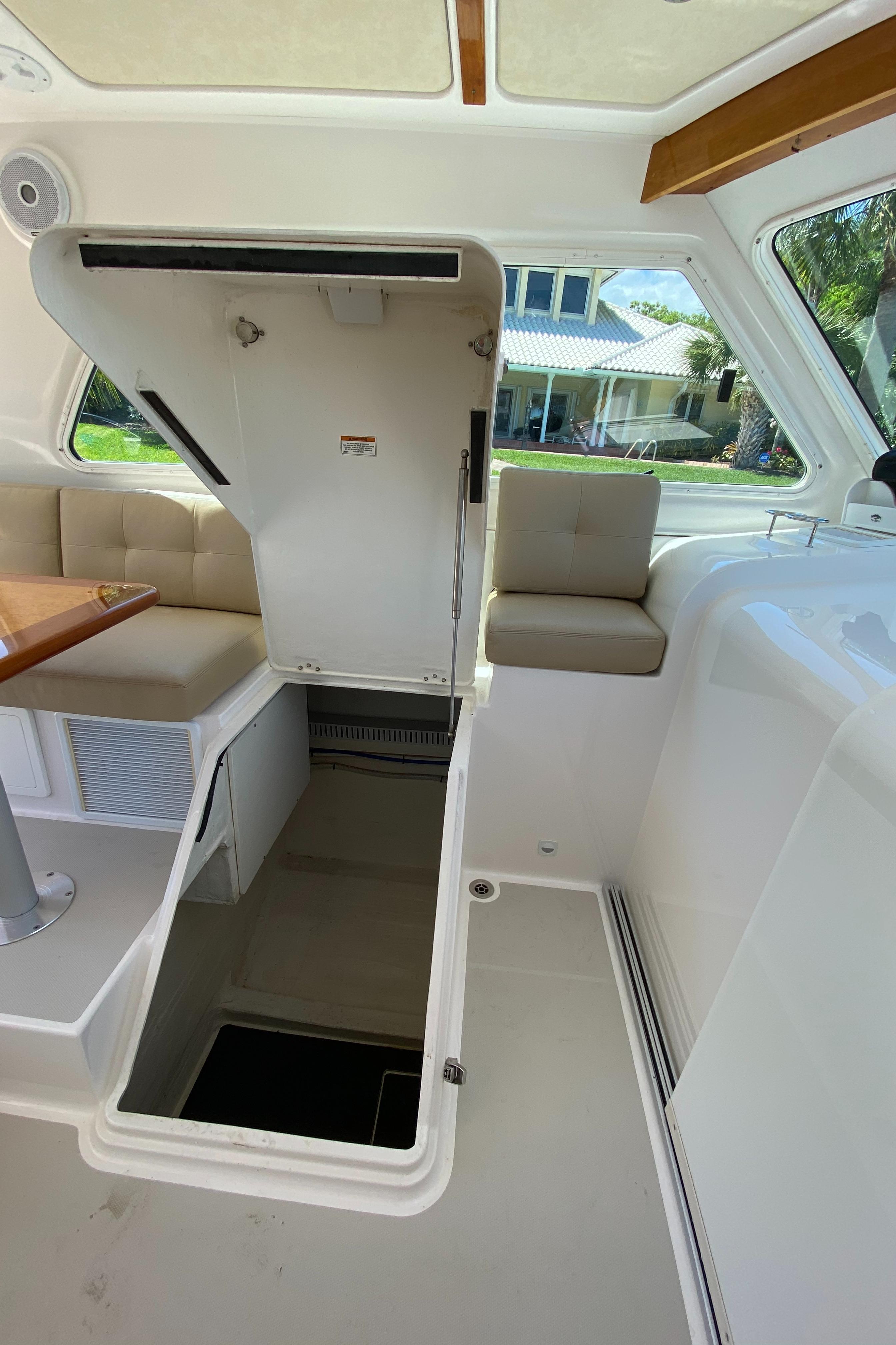 Power opening center window at helm