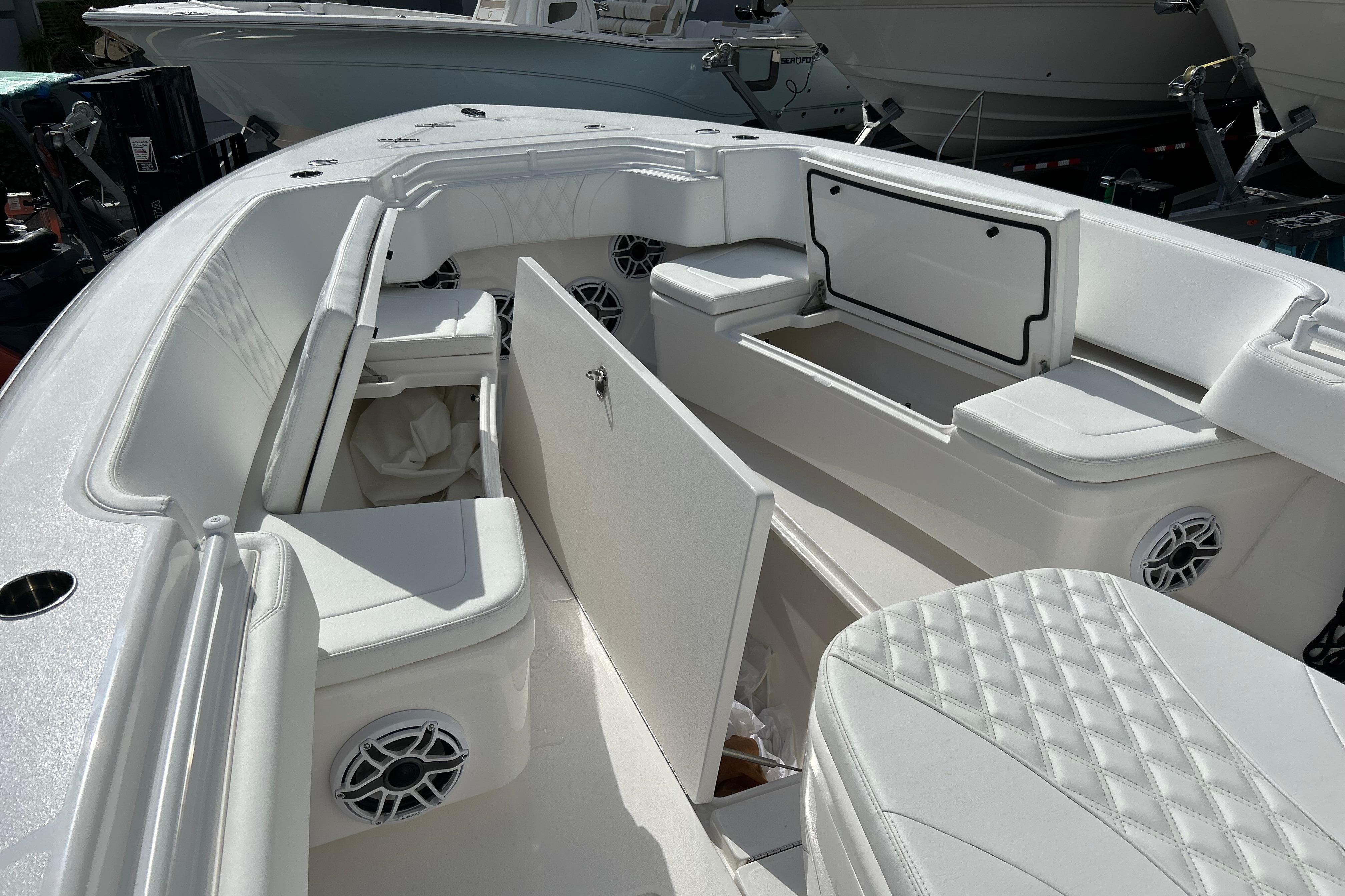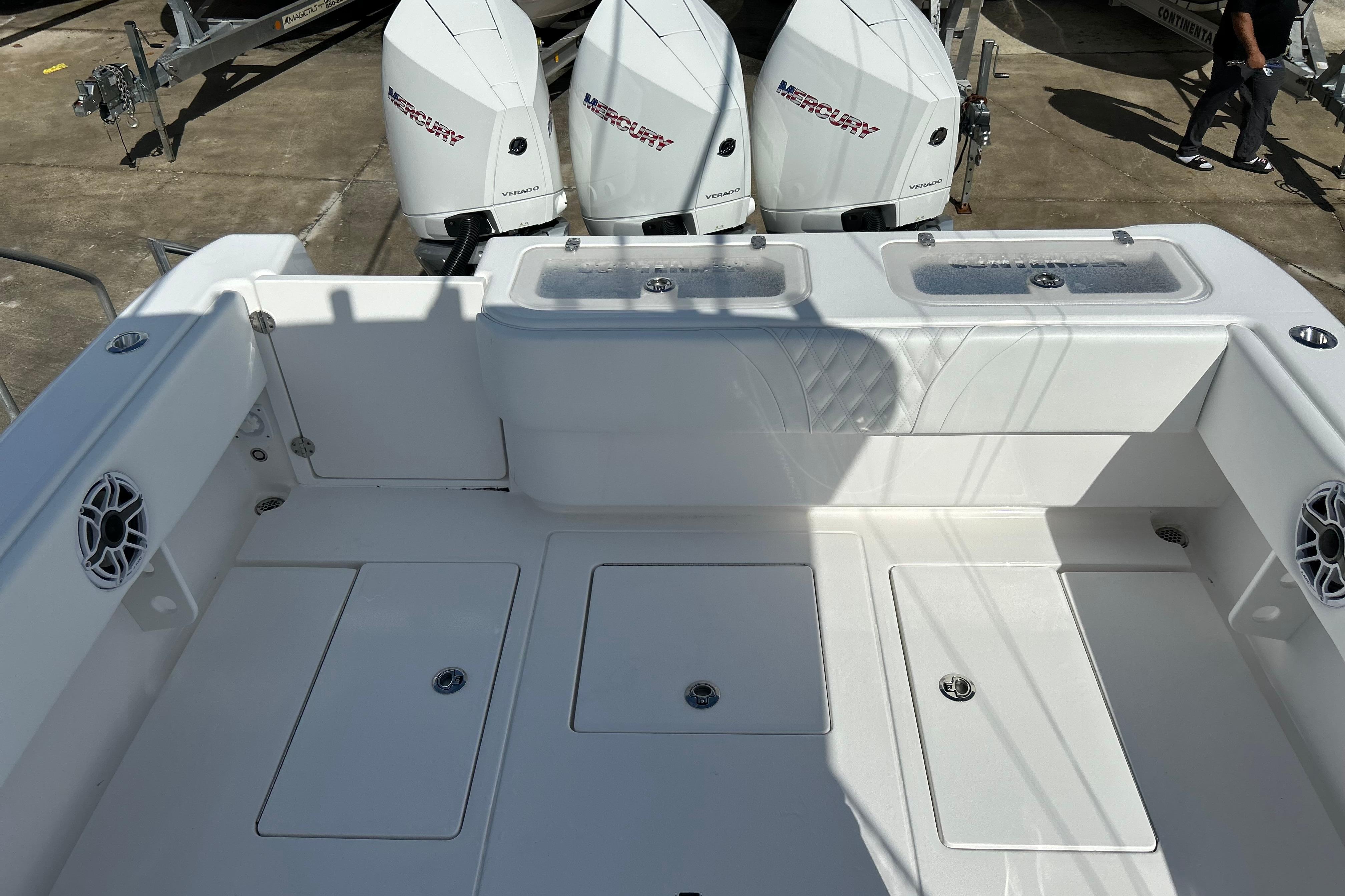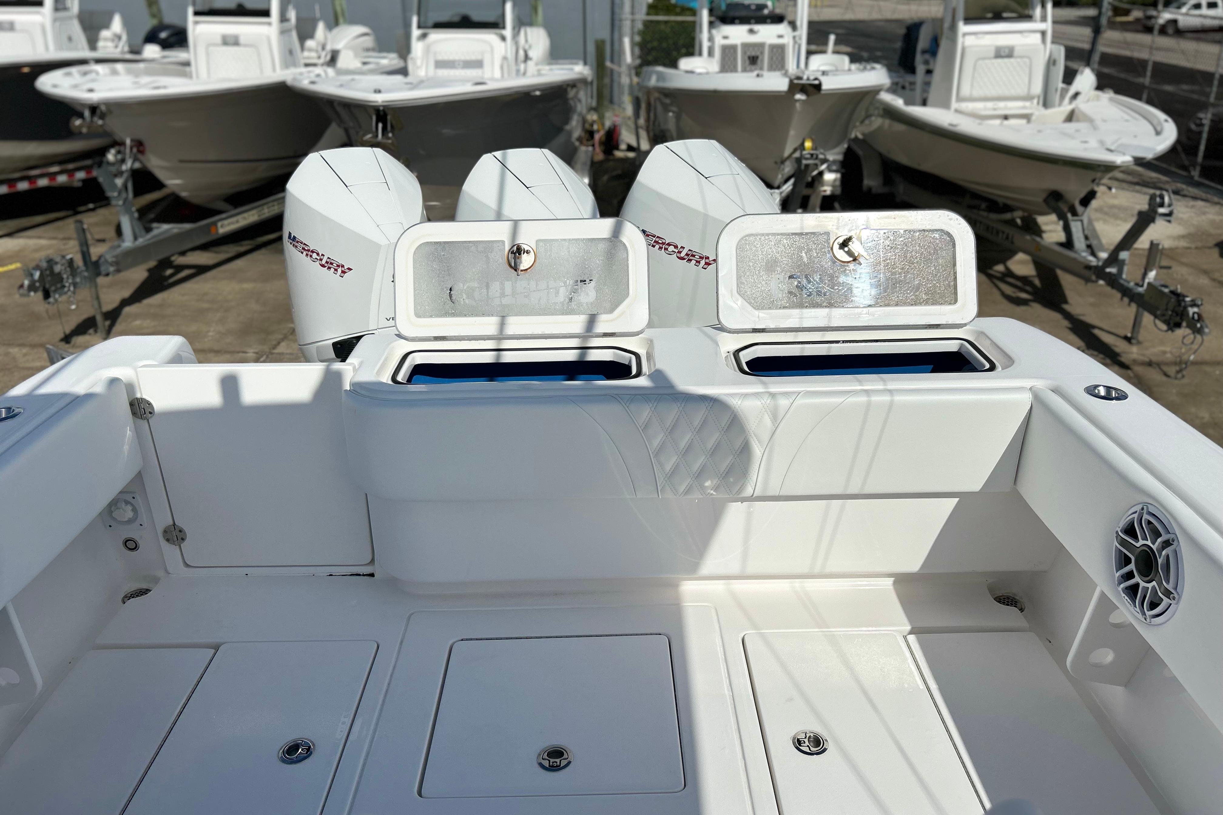 Here at Boat Kings we have a beautiful, basically new 2025 Contender 35st! This boat is looks fresh out of the wrapper and has had barely any use. This boat is equipped with triple Mercury 300HP V8 Four Strokes under warranty, and has a ton of options! Some of the options are Garmin HD radar, Twin Garmin TouchScreen GPS' with Thru-hull transducers, Fusion Head Unit with Full JL Audio Sound system throughout, Outriggers, Dual Livewells, Removable Eisenglass at helm, Bow Seating with removable cushions with deep storage compartments under (port and starboard), giant in-deck fishboxes and storage compartments throughout, front lounger seating with insulated storage under, Convenience station with tackle storage, rollout Frigid Rigid cooler, LED package with underwater lights, mood lights, power cycle lights, head in console, rod holders and storage throughout and much much more! This boat has little to no hours and is a must see in person! Feel free to come into Boat Kings and check it out!
