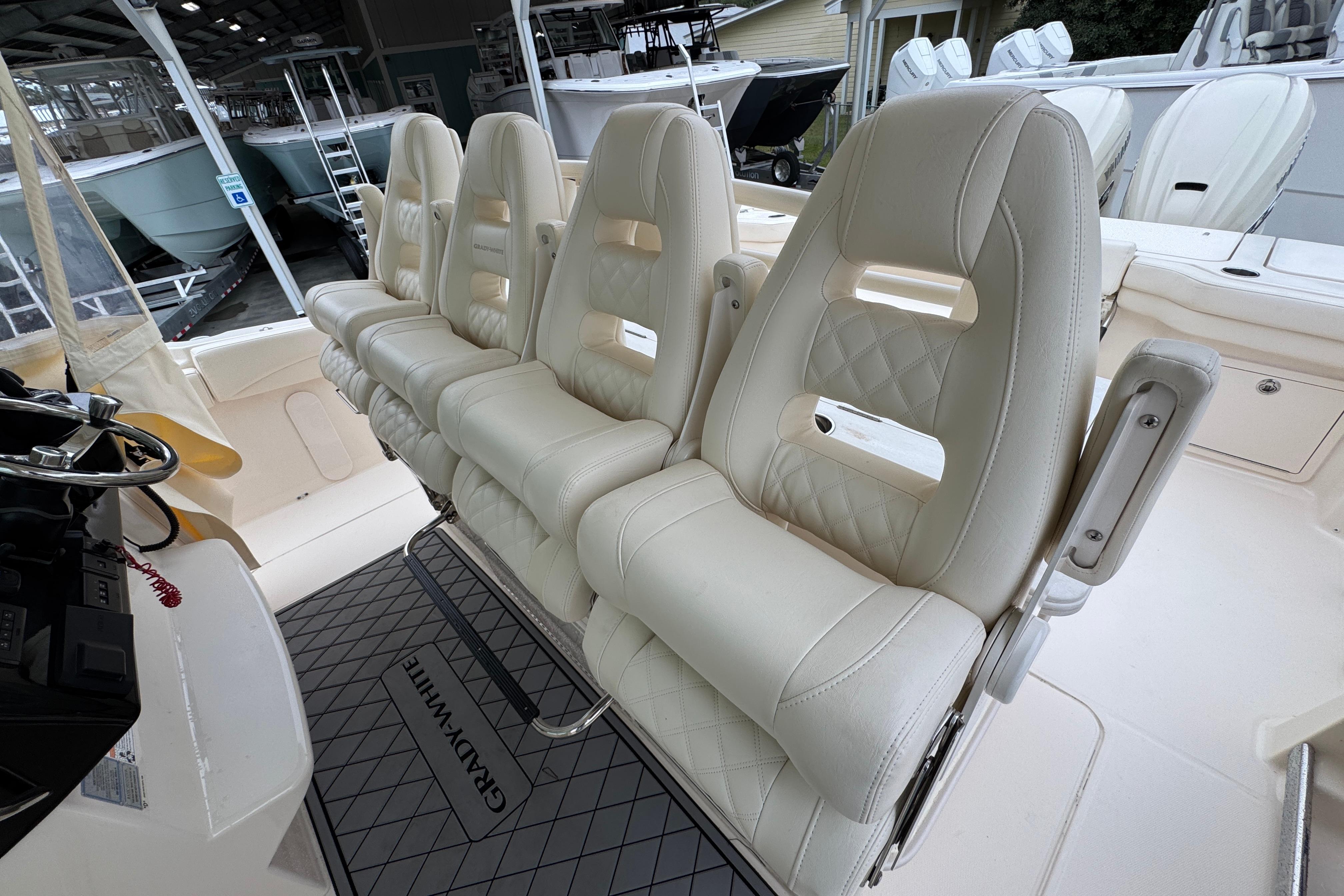- Air conditioning - 10,000 BTU w/outlets at console (2) & at helm (2)