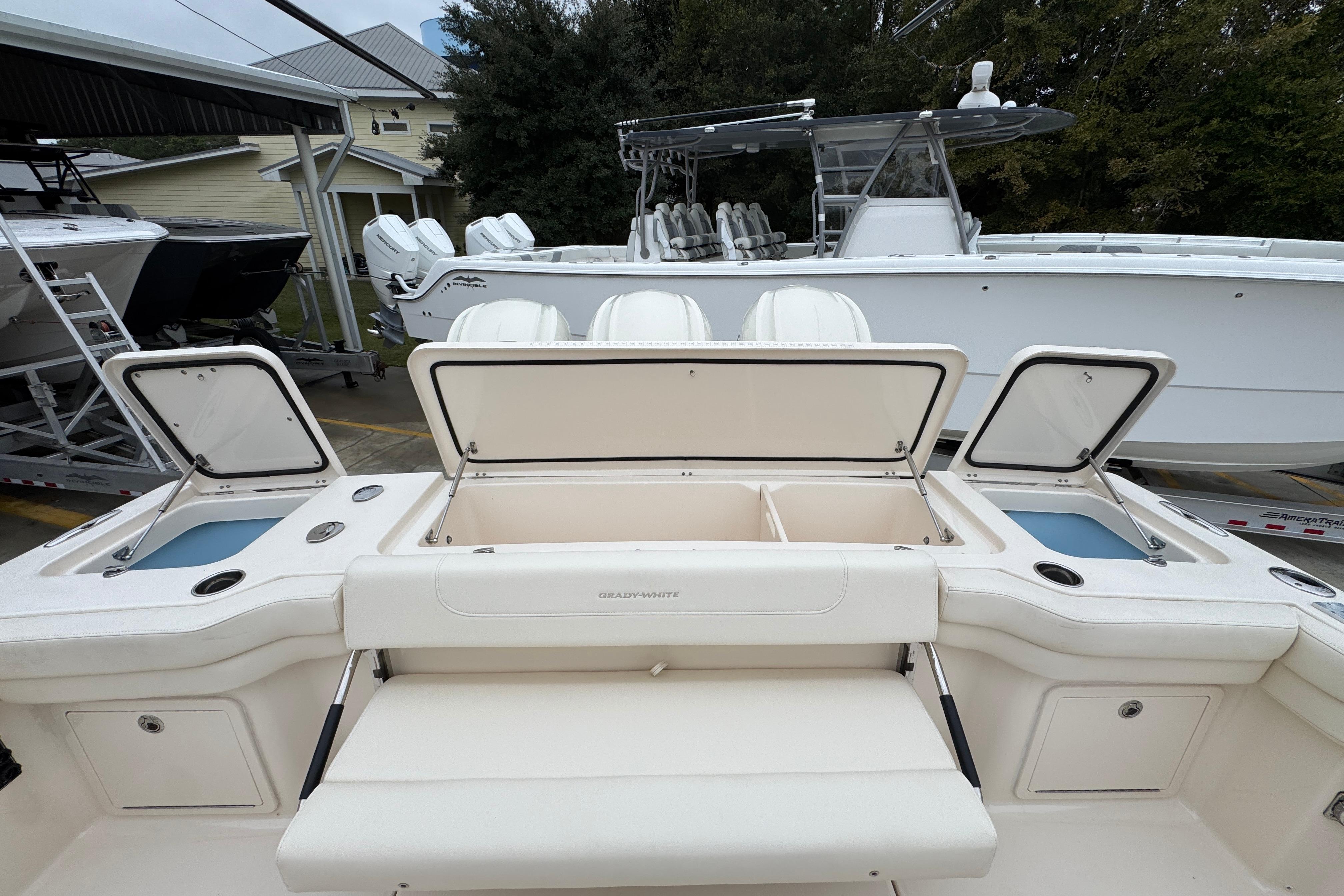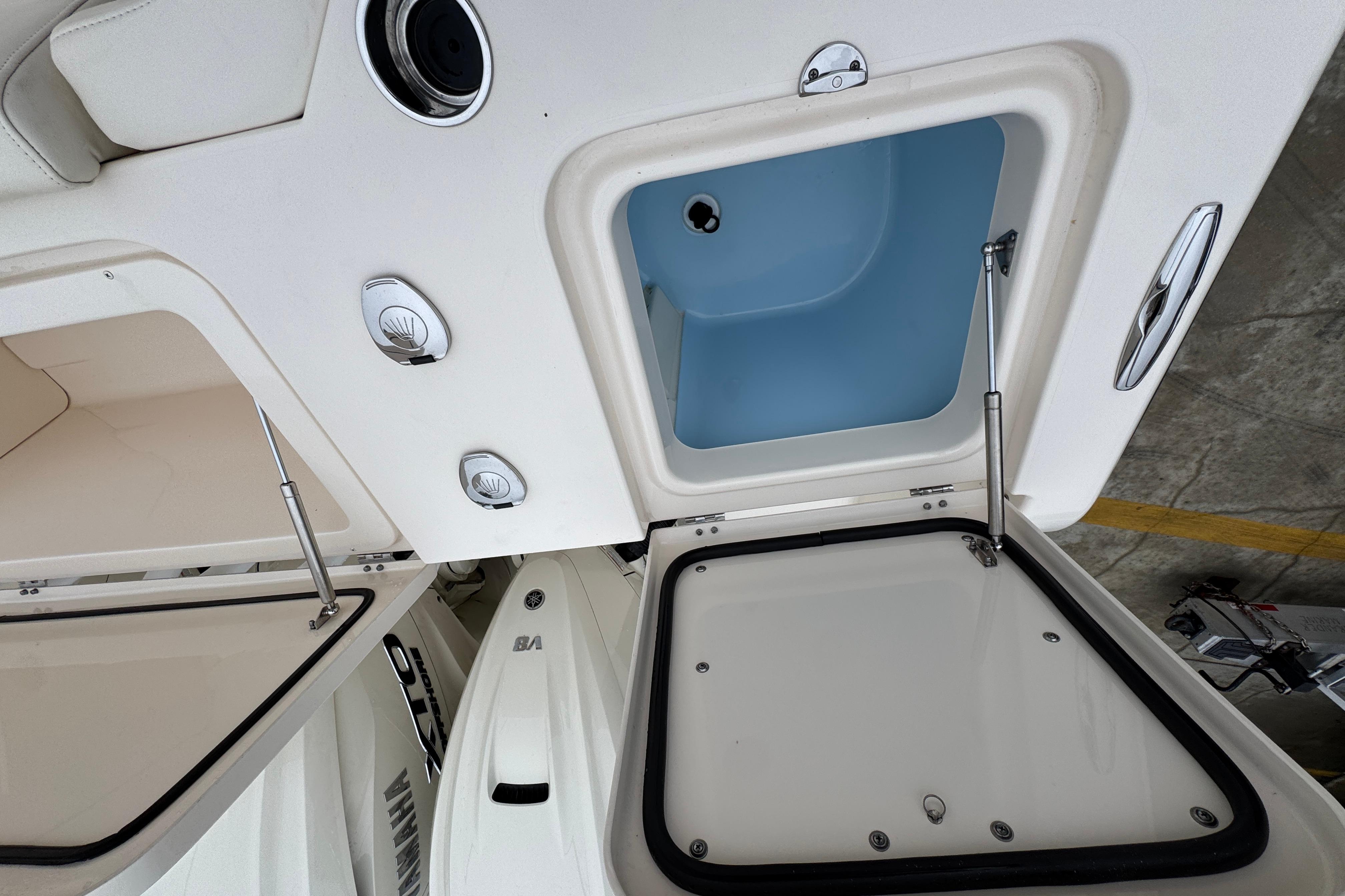 - Fish box - 291-qt. (275.4 l) aft insulated fish box w/lights (2) & ob drain & refrigerator/freezer w/digitally controlled thermostat