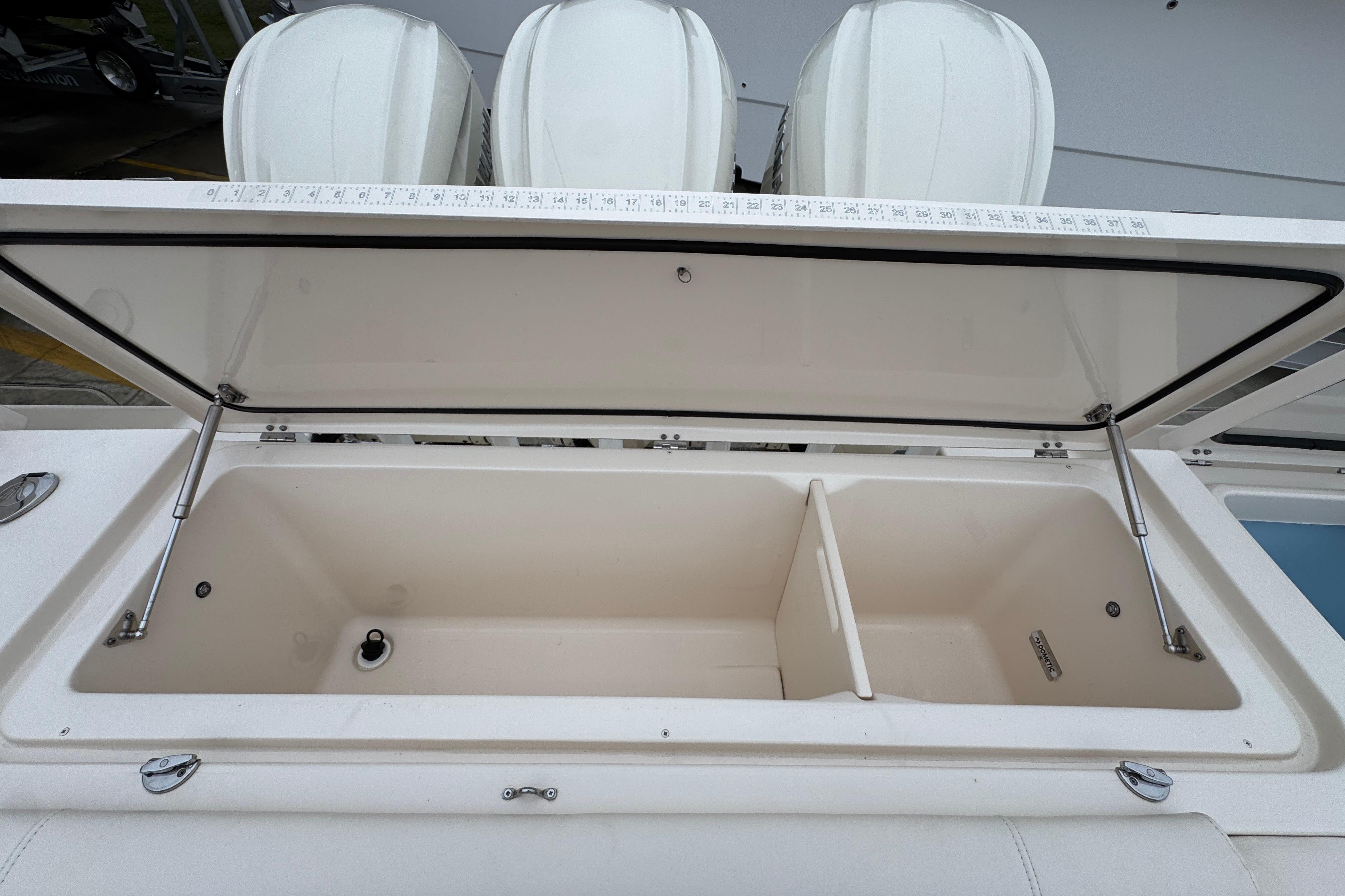 - Fish box - 149-qt. (141 l) port & starboard insulated fish box w/ob drain (2)