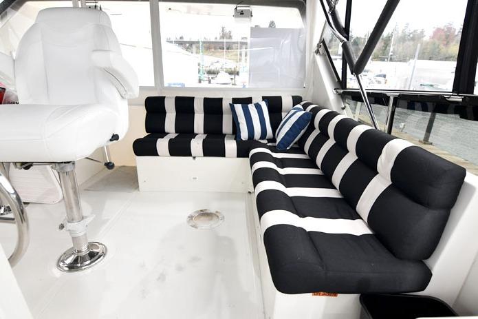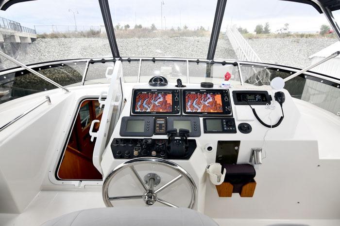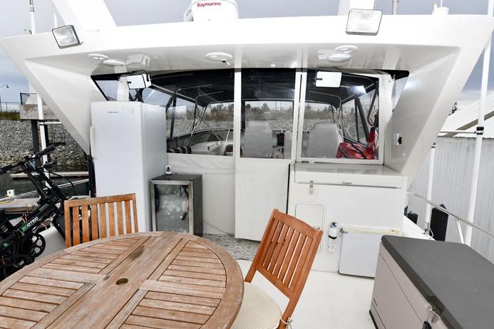 INTERIOR is exceptionally clean with upholstery and carpeted sole in warm neutral tones throughout. CLIMATE CONTROL is via reverse cycle heat and air conditioning system plus diesel fired hydronic heat. ENTERTAINMENT features include Pioneer stereo system, TV and Sony DVD player.