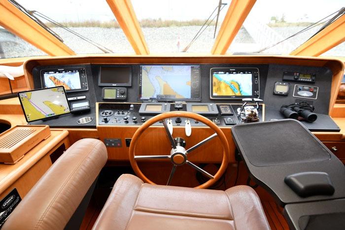 When someone says 'yacht', THIS is it - with quintessential looks and style - plus the practicality of a raised pilothouse with flybridge. She's a Symbol 66 PHMY and she's got it ALL - twin CAT mains for performance, COCKPIT CONTROL station plus FB and PH helms; Wesmar STABILIZERS, bow & stern thrusters, big Euro transom with staple rails for sport and fishing water access, and that's just for starters! Full navigation equipment includes dual Raymarine hybrid touch screens with radar, GPS, depth, AIS, and Insignia screen with computer for Rose Point software.
