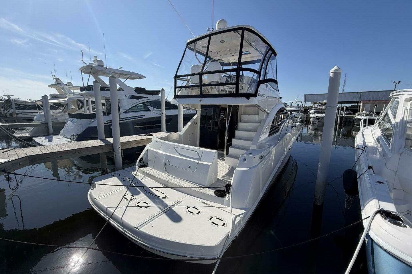 This 47 Sedan Bridge presents well—her dock profile is clean, and she’s equipped with features that make her one of the best-equipped 47s available.