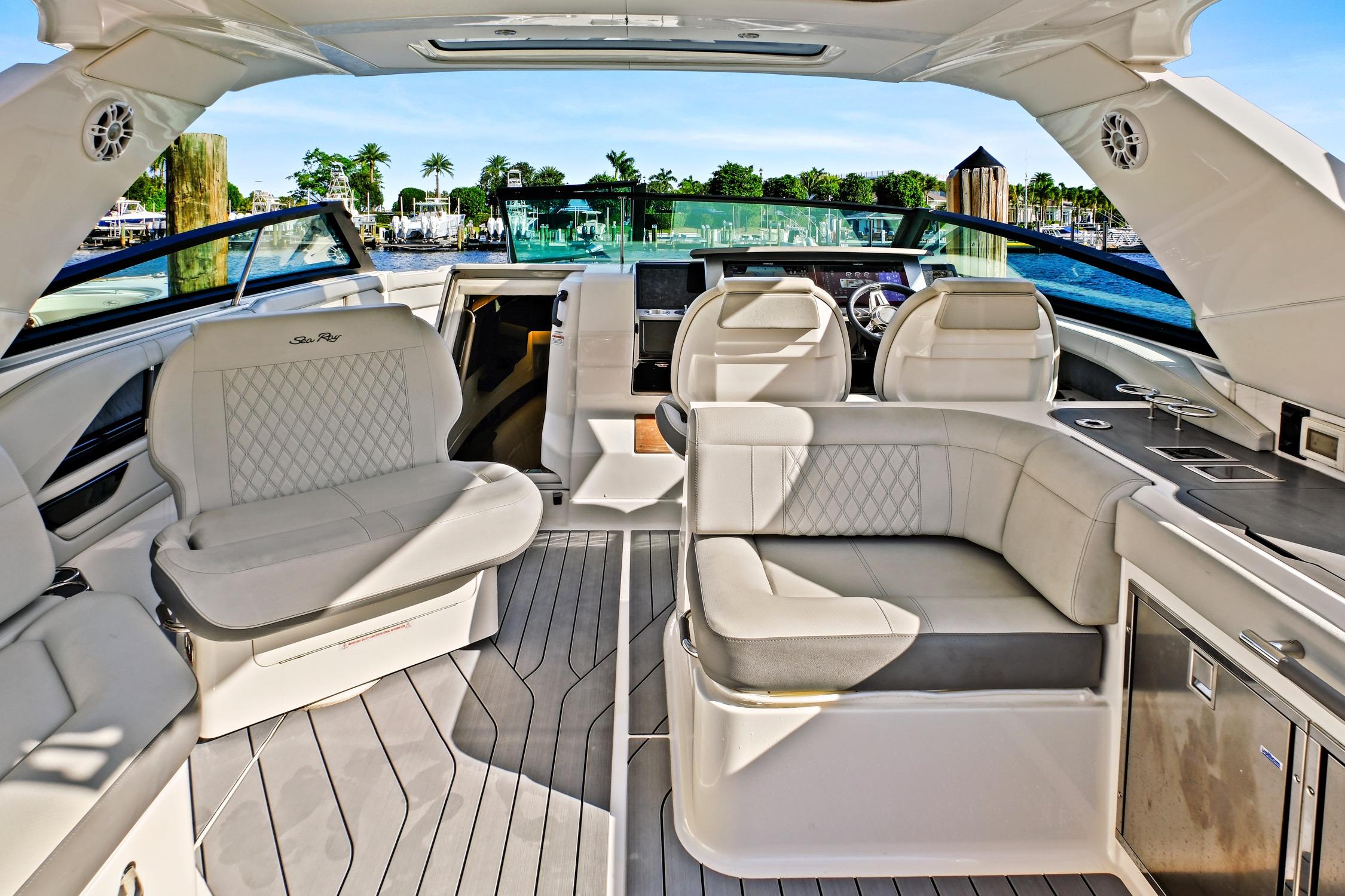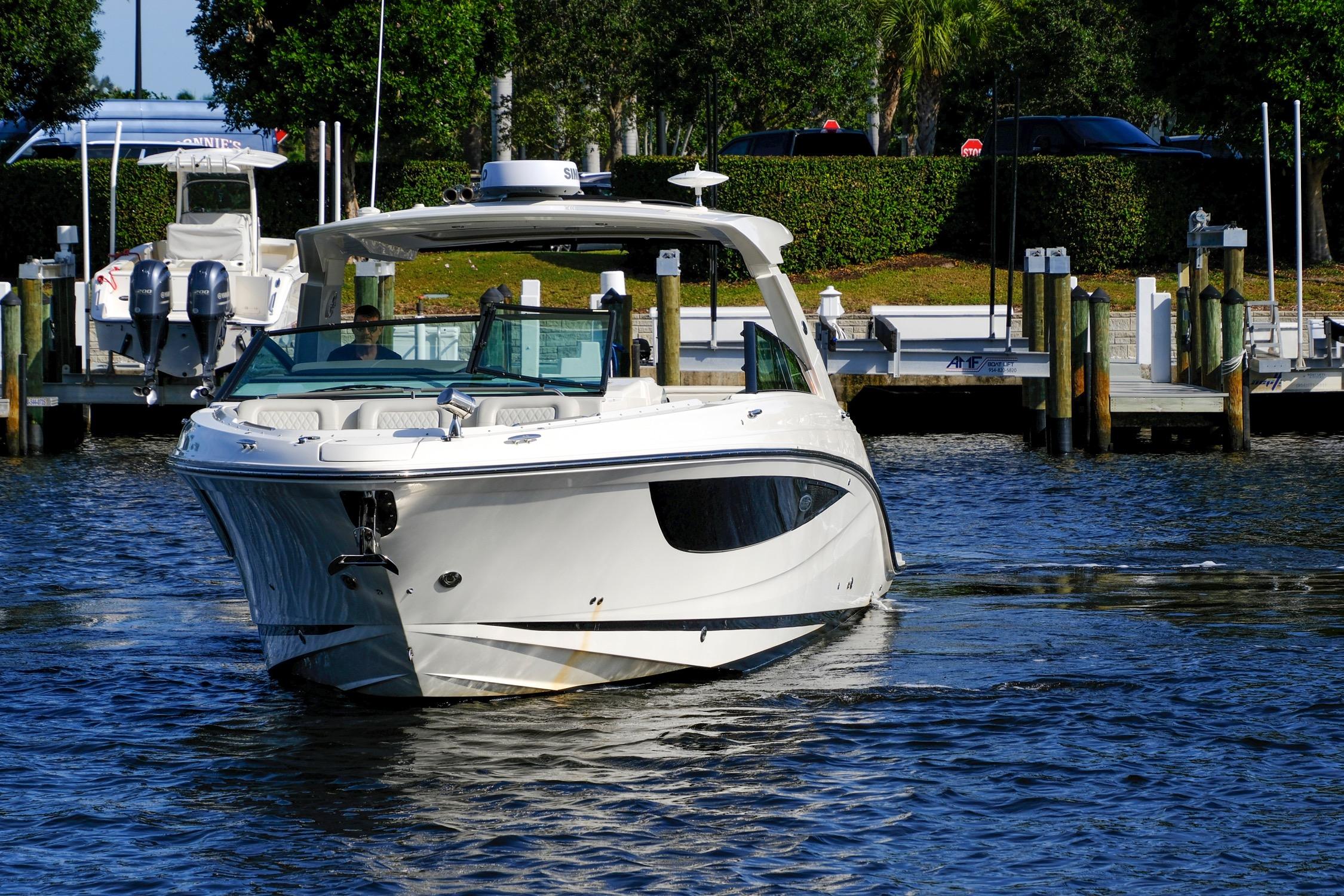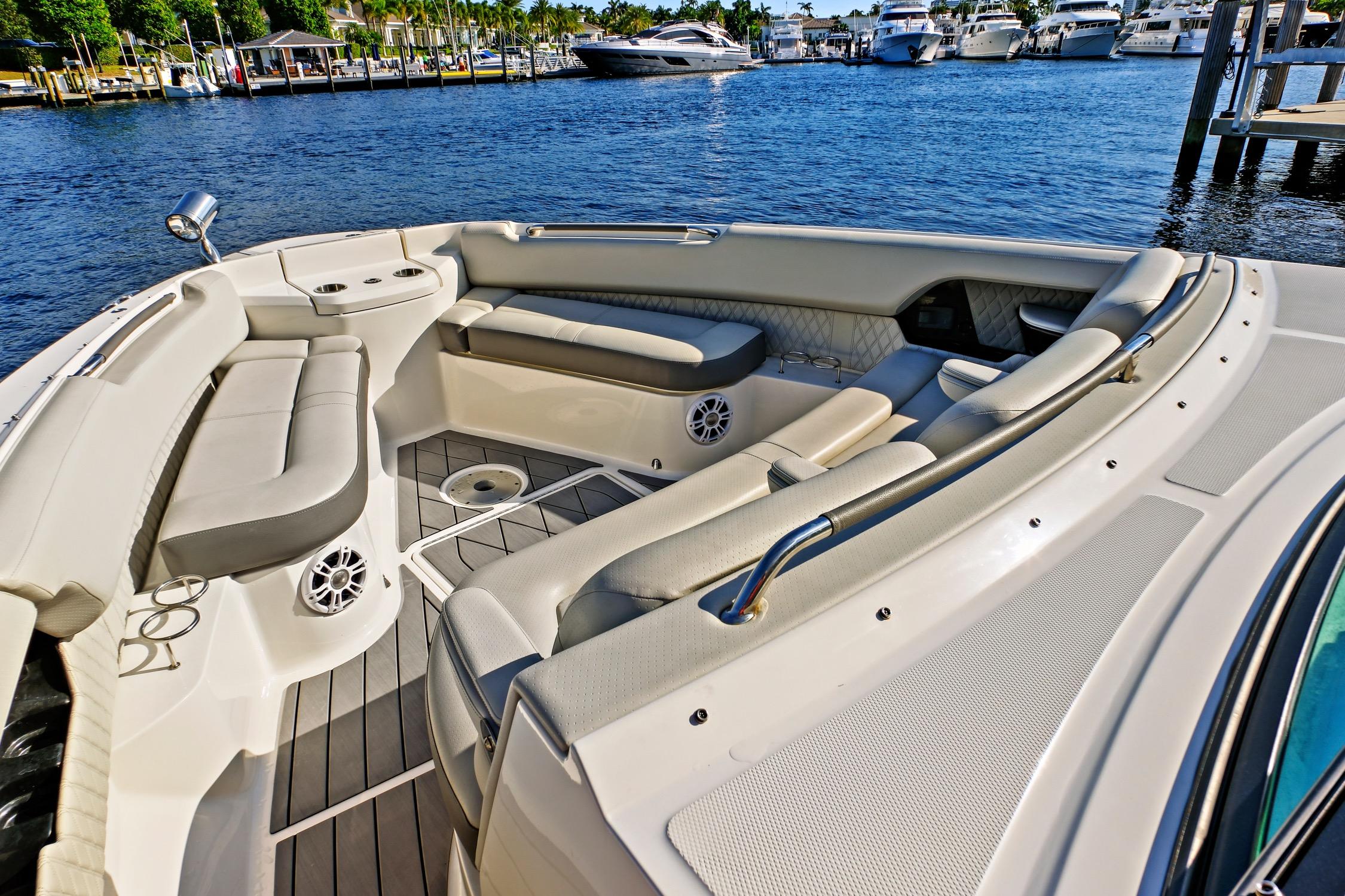 Since new, she has been stored at Marina One Yachting Center, one of South Florida’s premier facilities. She’s powered by upgraded MerCruiser 430HP stern-drive engines that have been diligently flushed and serviced after every use.