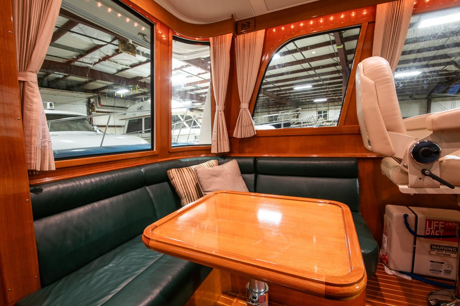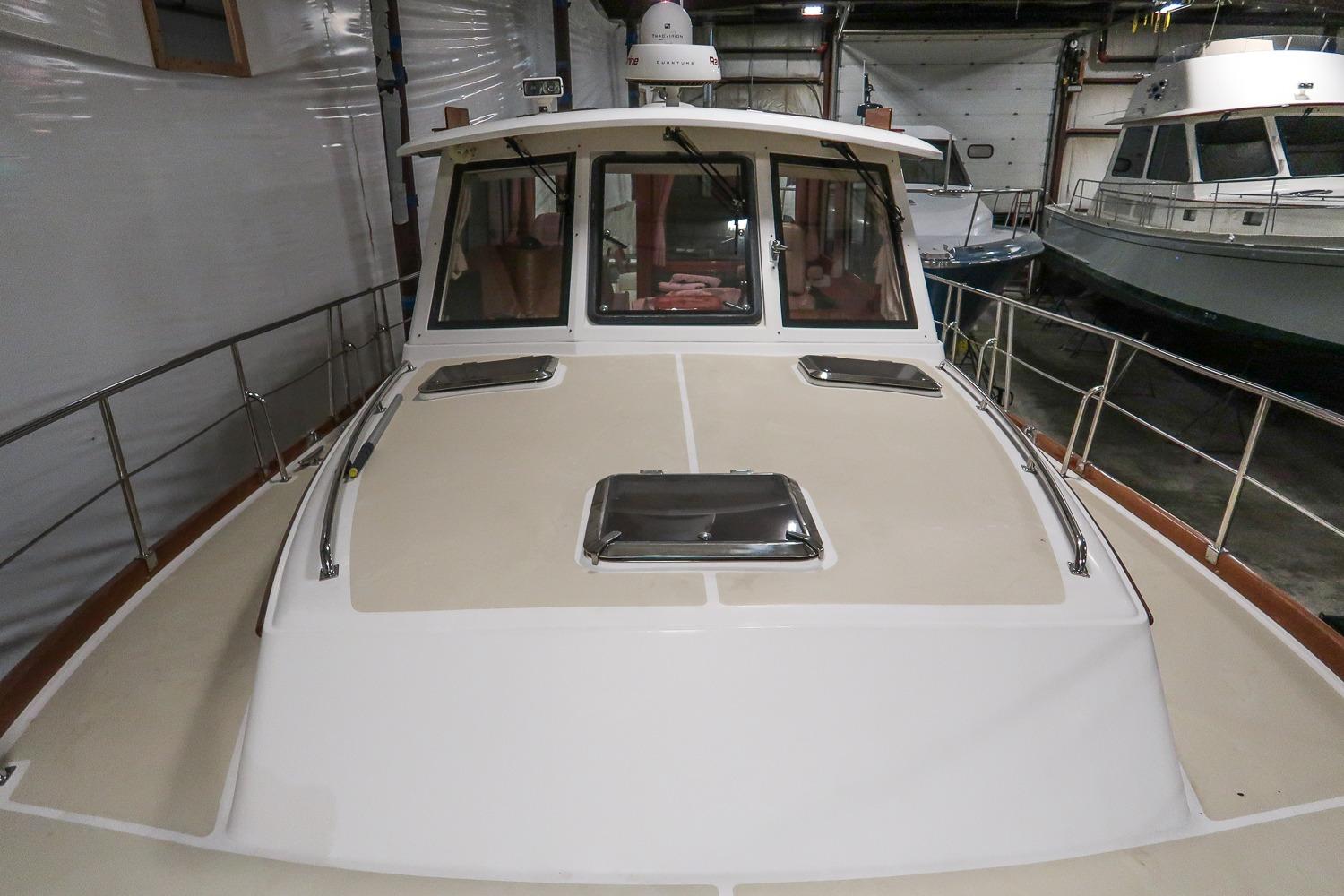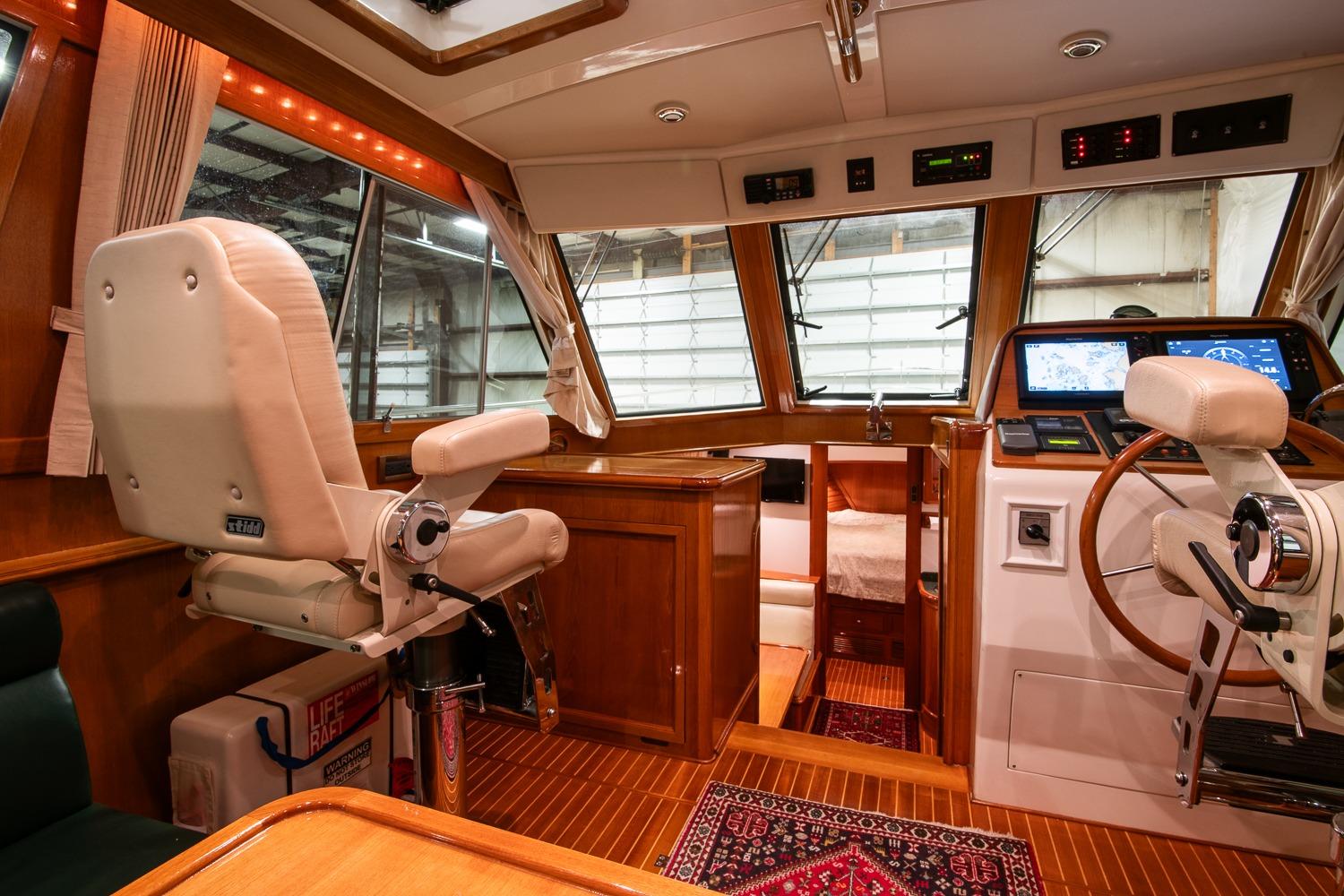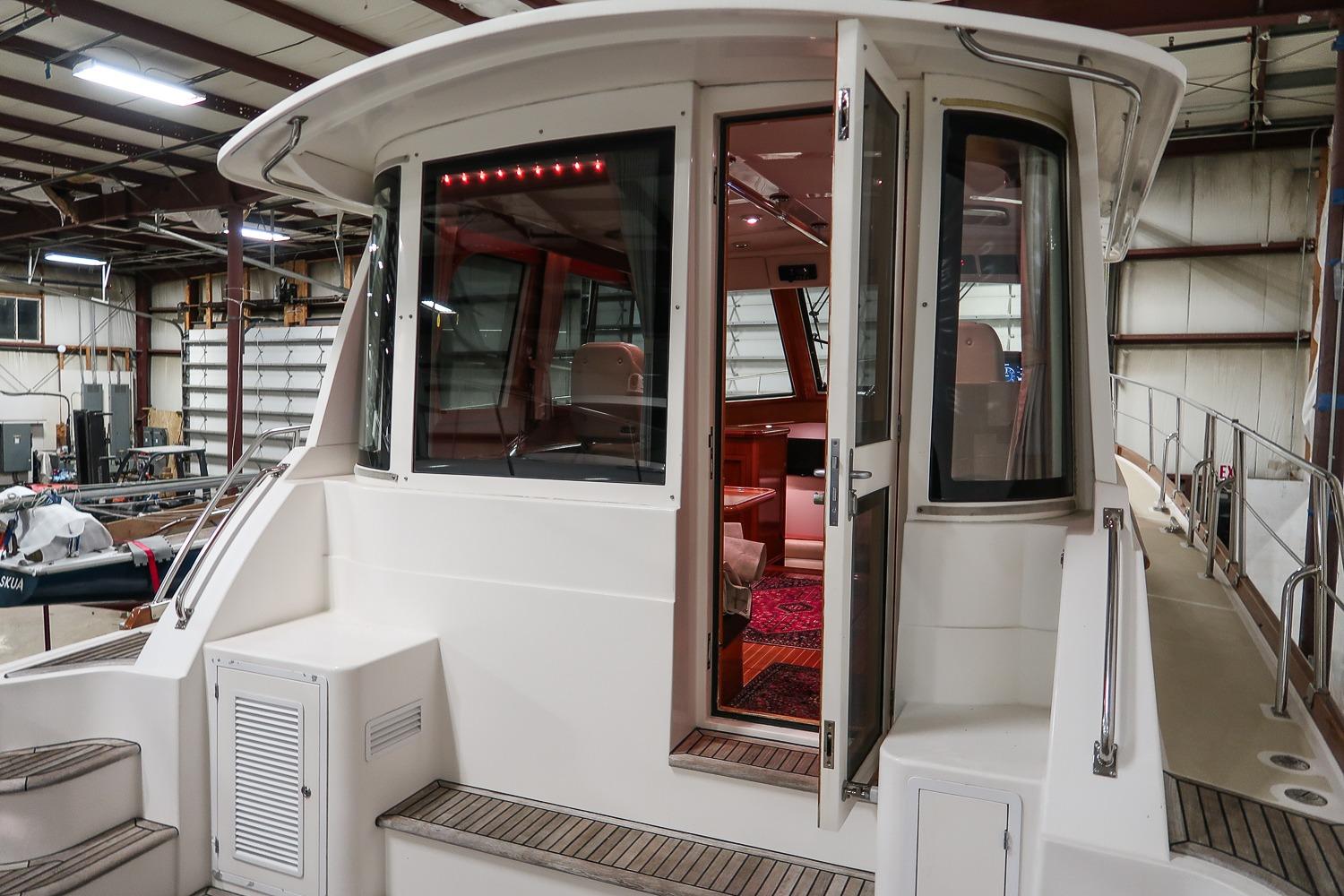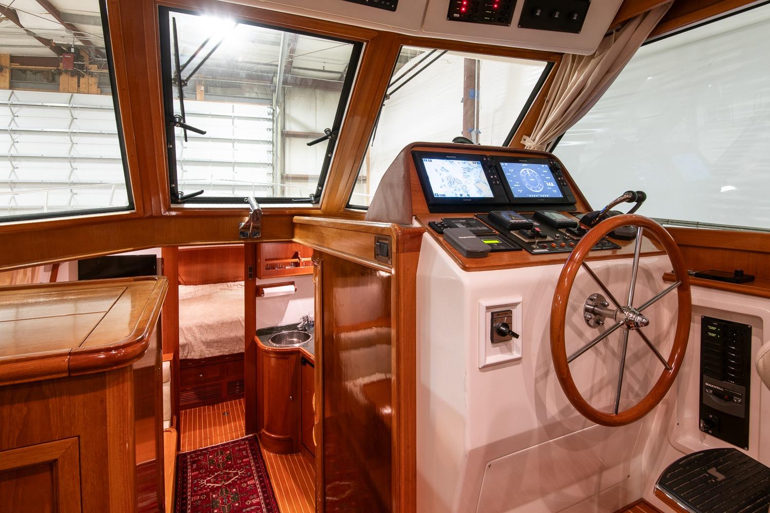 - Three large windows forward, three large side windows, curved aft corner windows and large aft window and door provide 360 degree views from the pilothouse