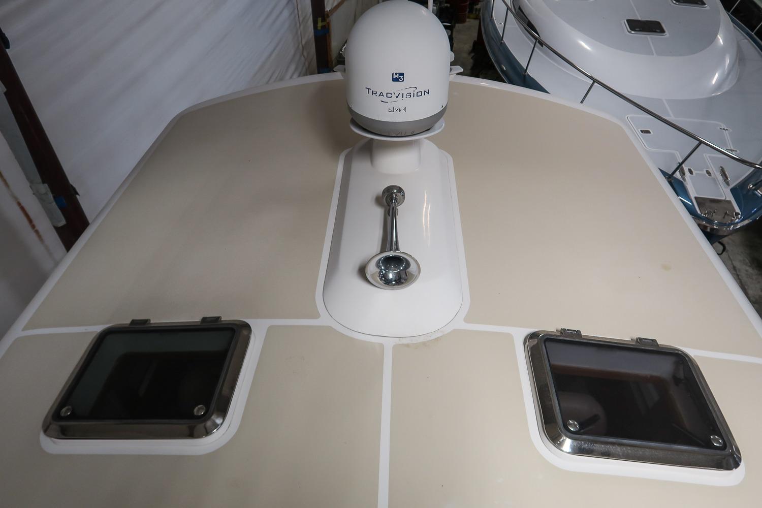 - Forepeak storage lockers with flush fiberglass hatches and access to chain locker below