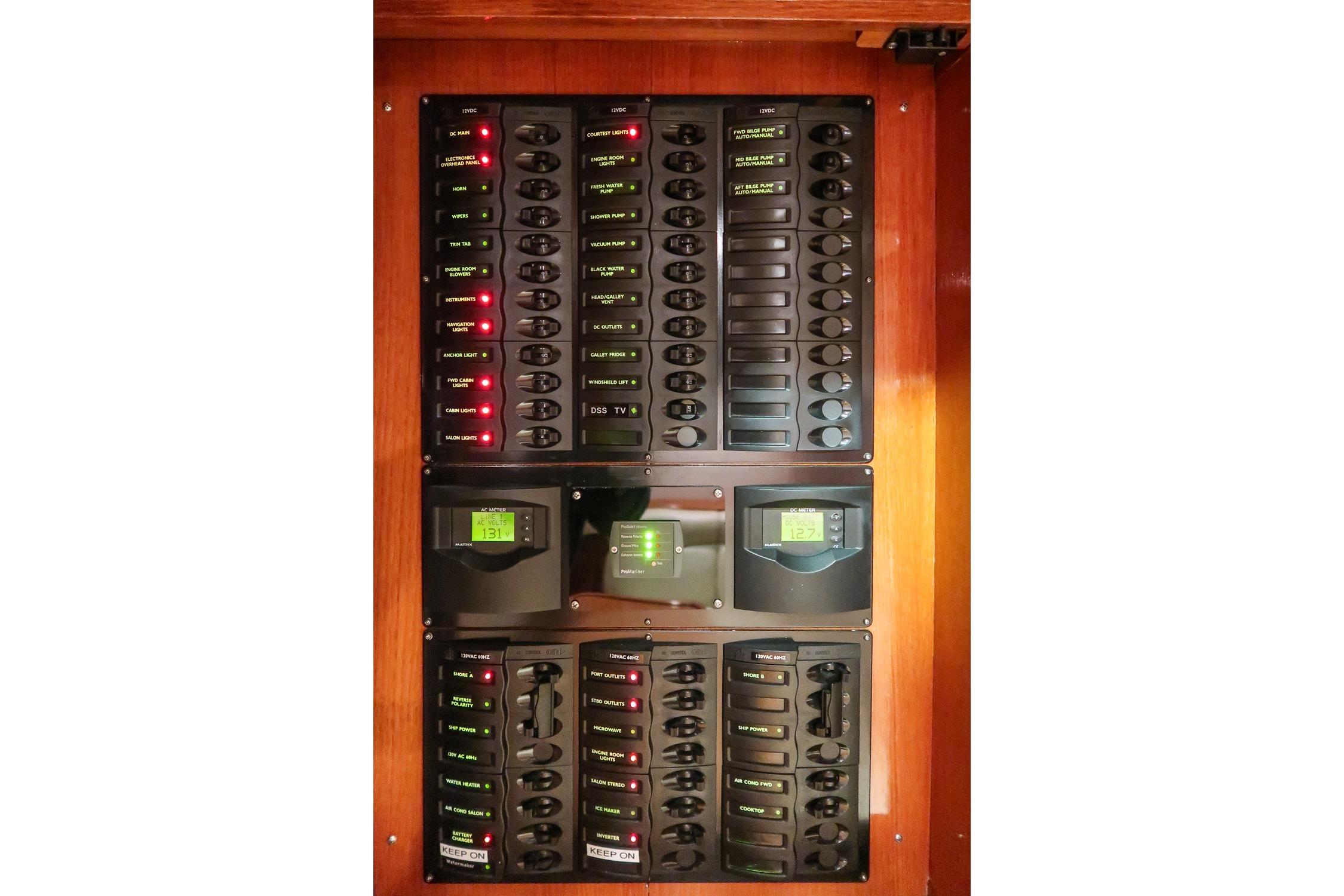 - BEP marine electrical panel with breakers and digital meters for AC and DC loads