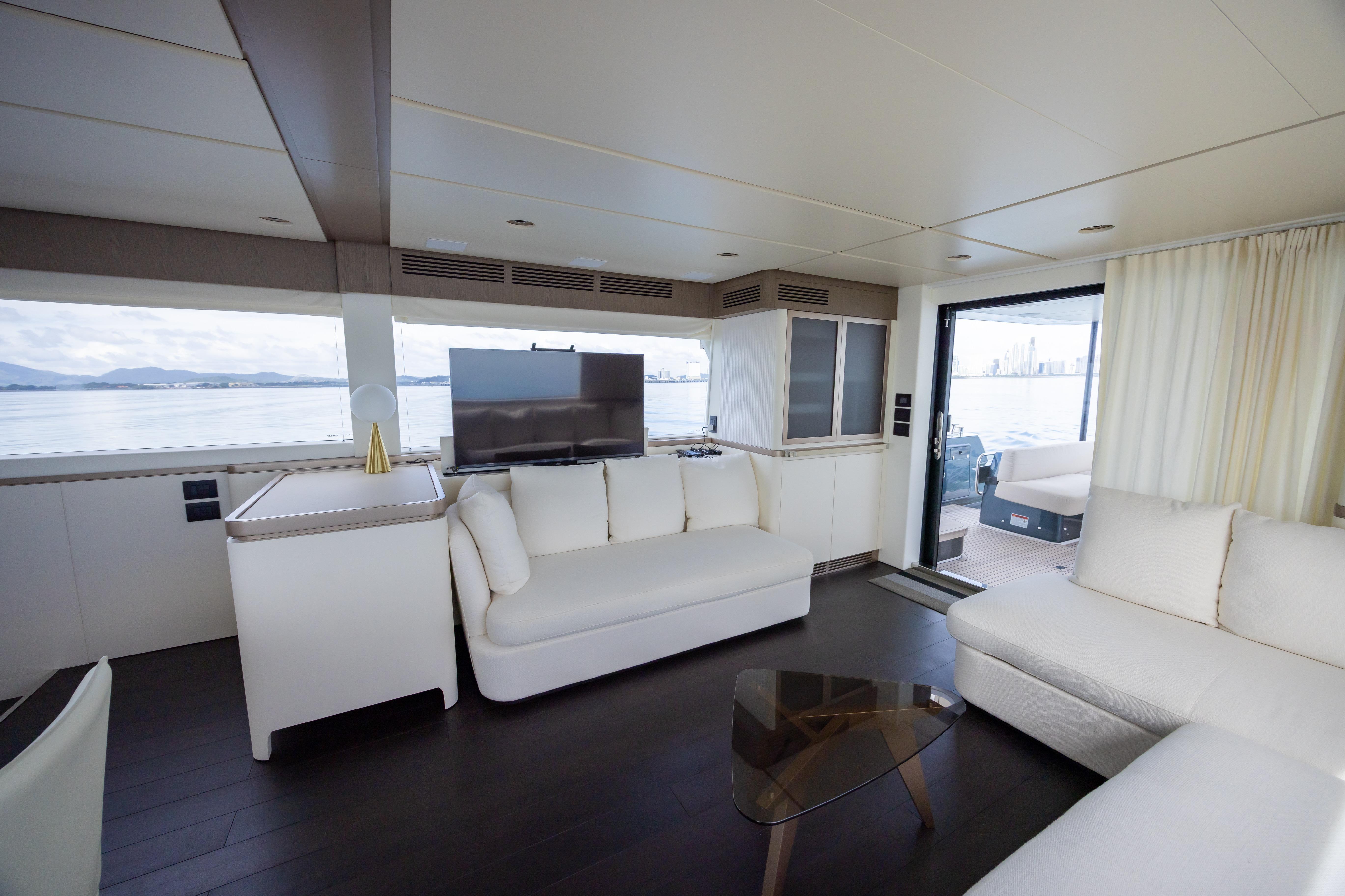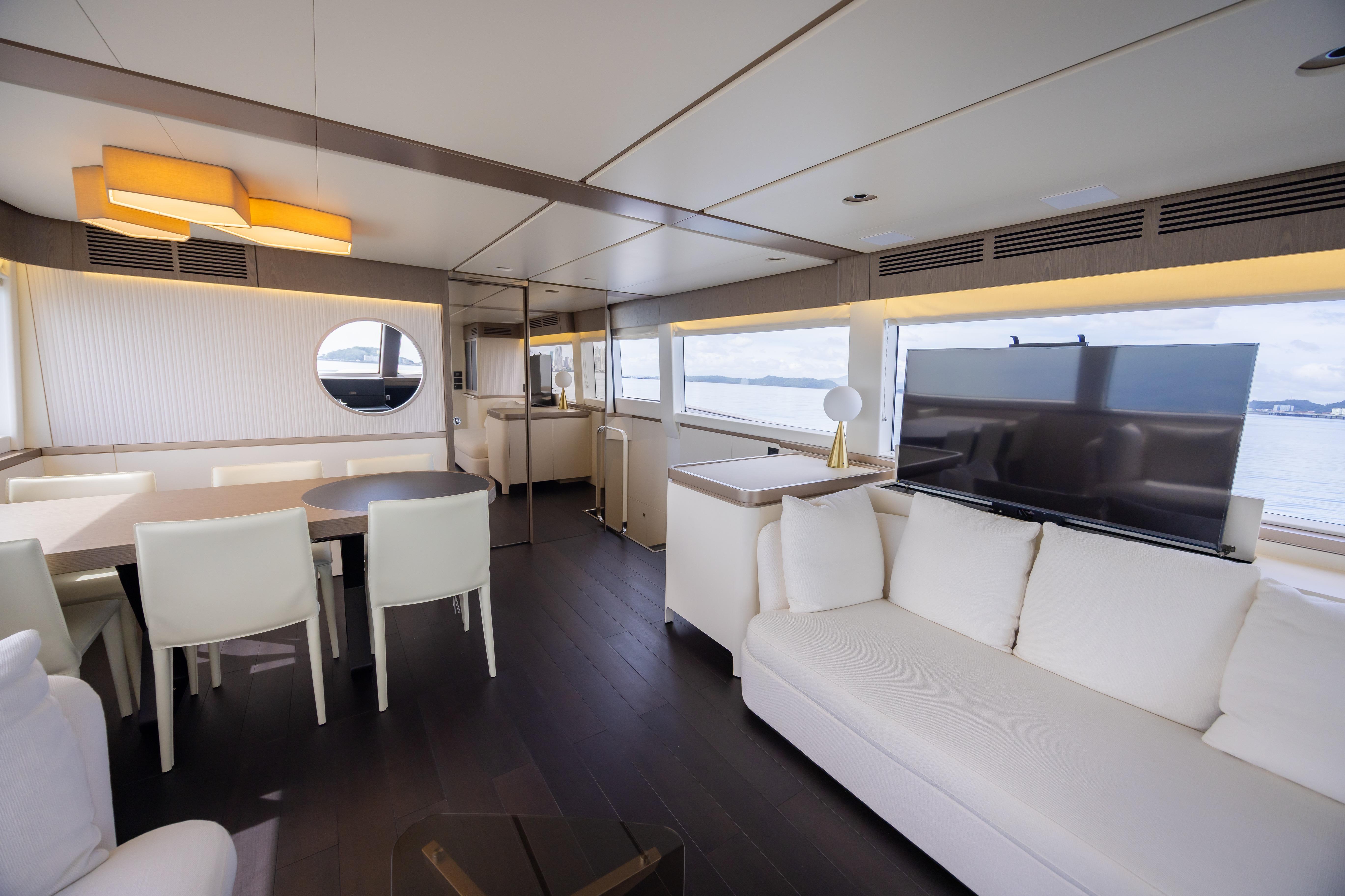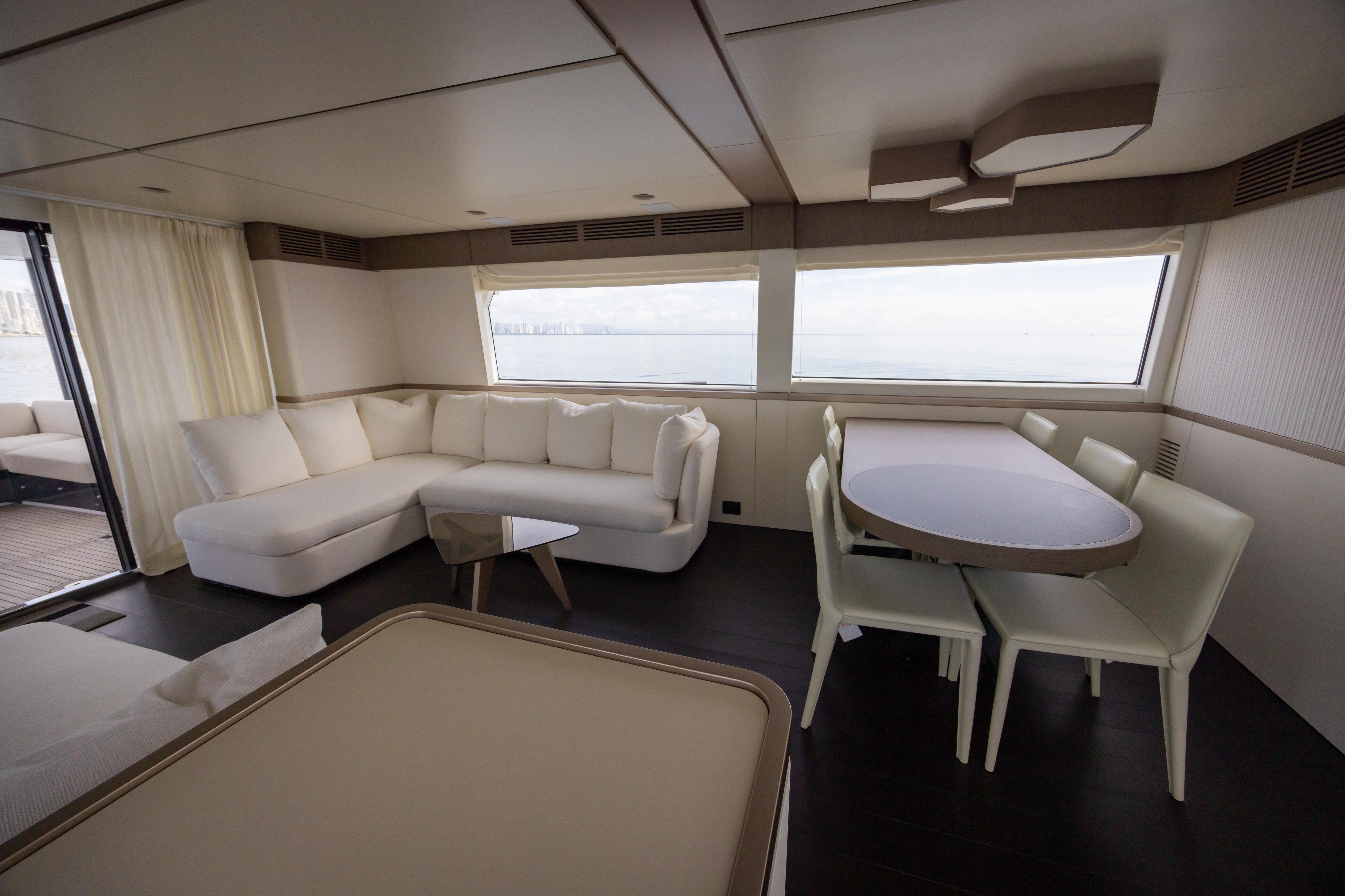 Salon furniture on starboard side with sofa and hi-lo table predisposition