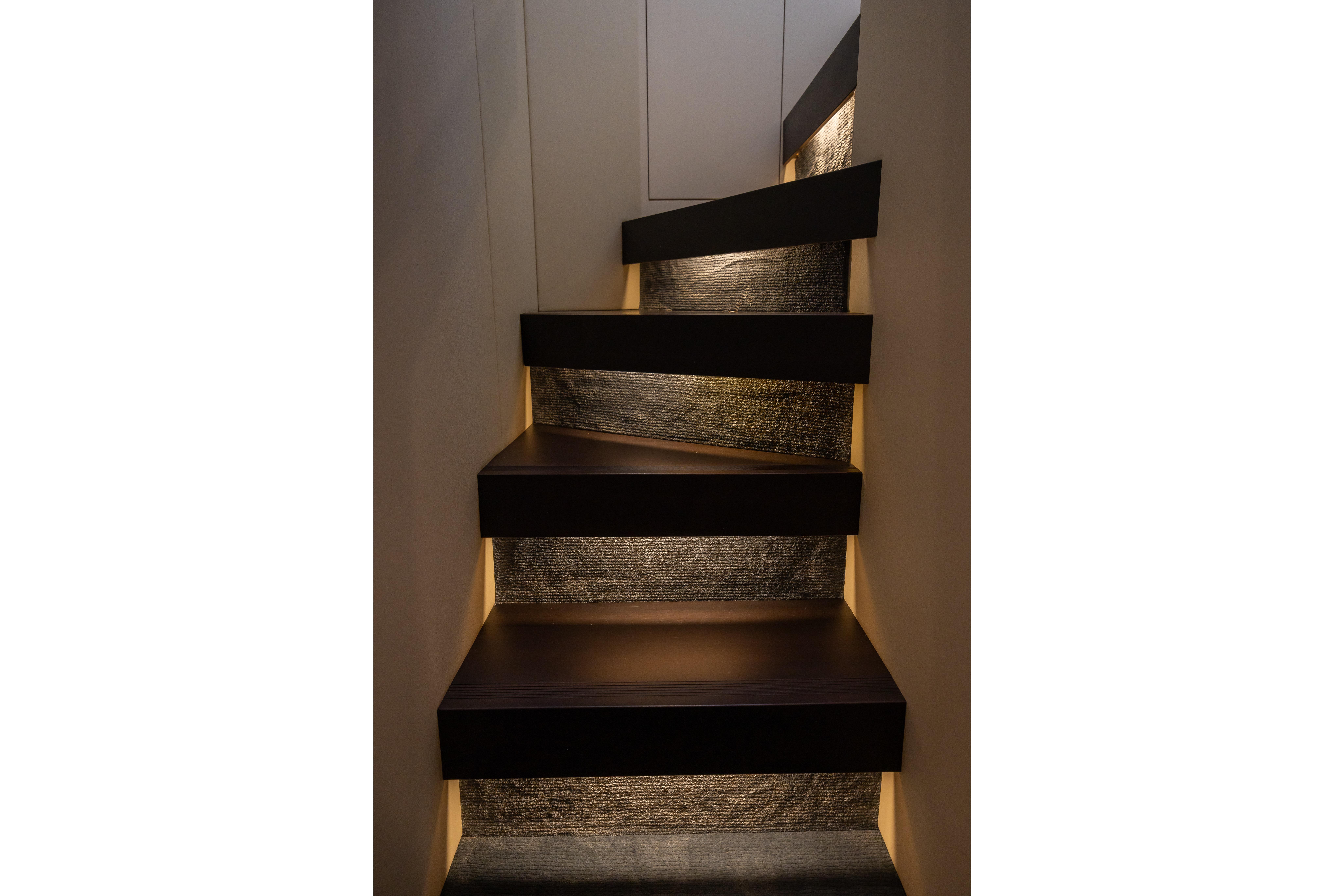 Wooden flooring in salon, galley, helm station, and lower deck stairs