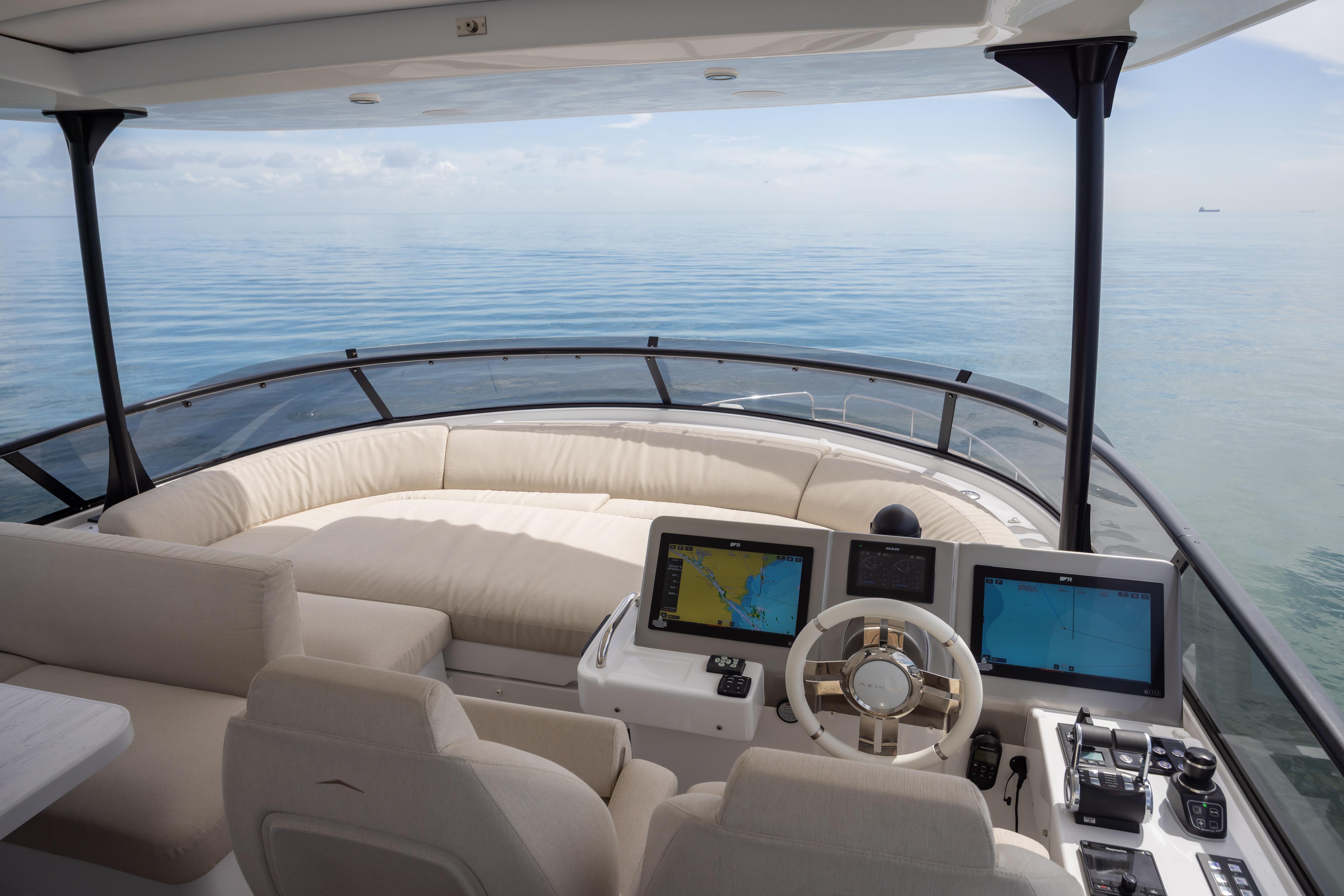 With her dual-mode hull, the Magellano 66 delivers excellent fuel efficiency at displacement speeds while still offering the performance expected of a modern flybridge yacht—making her ideal for both coastal cruising and longer passages.