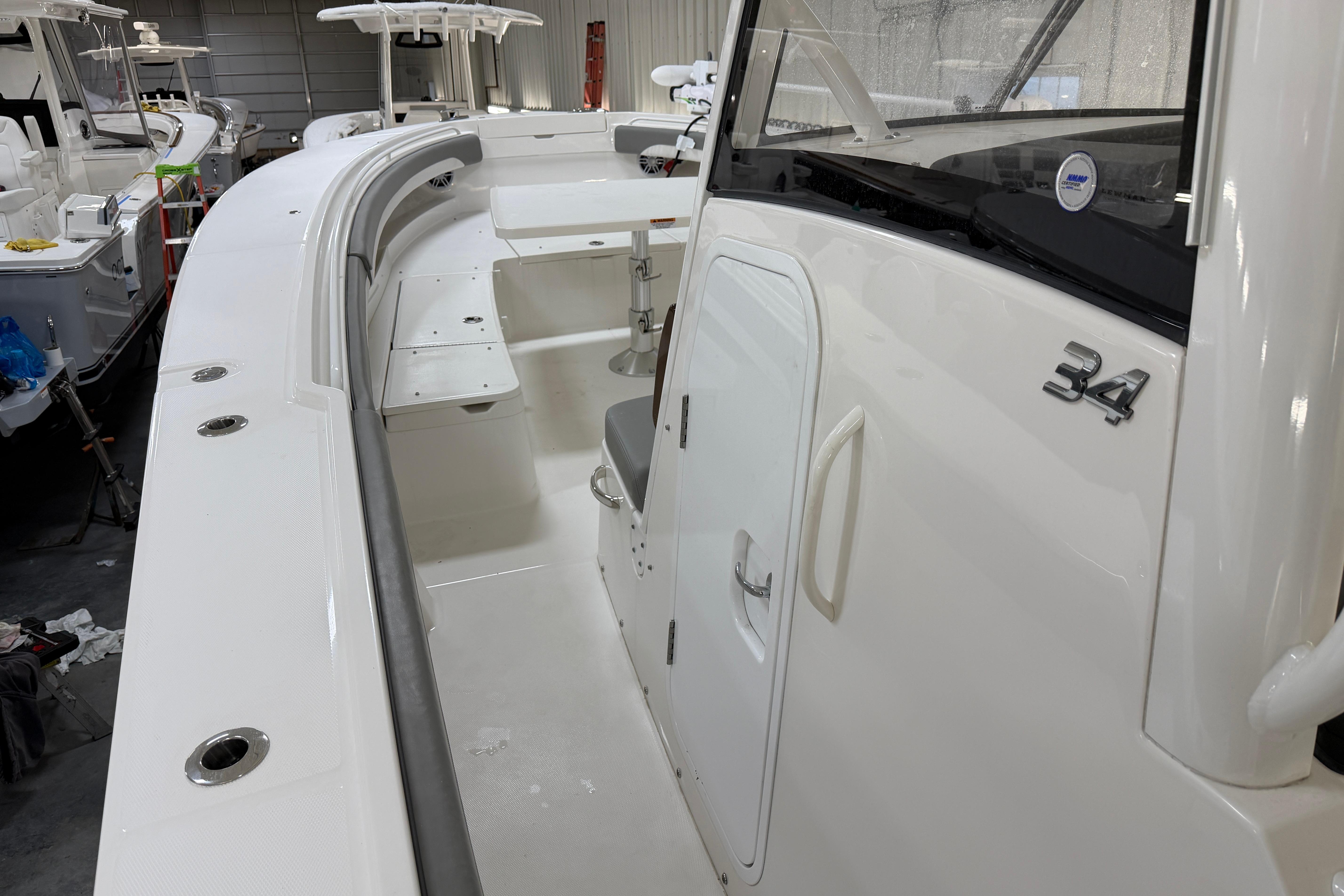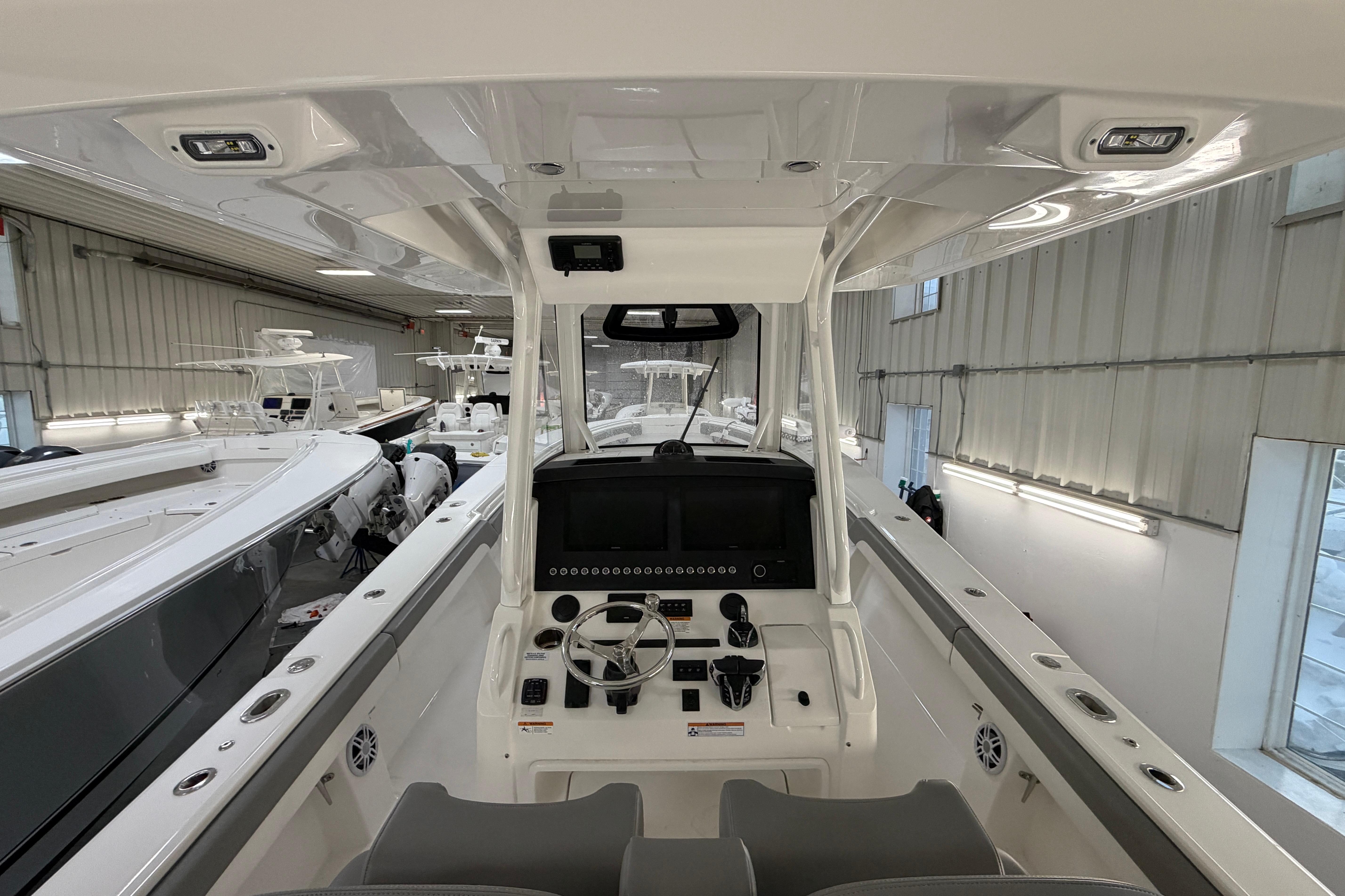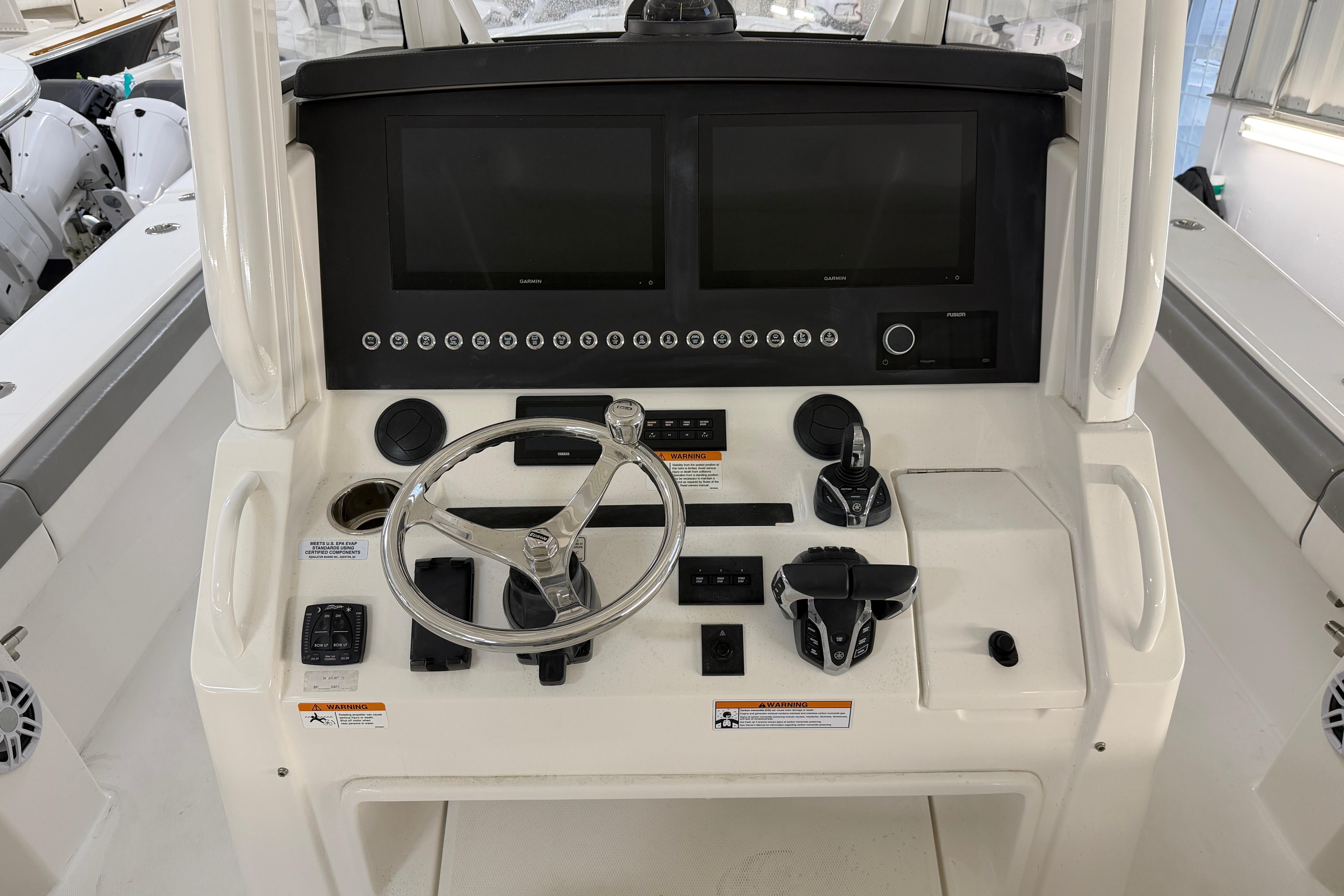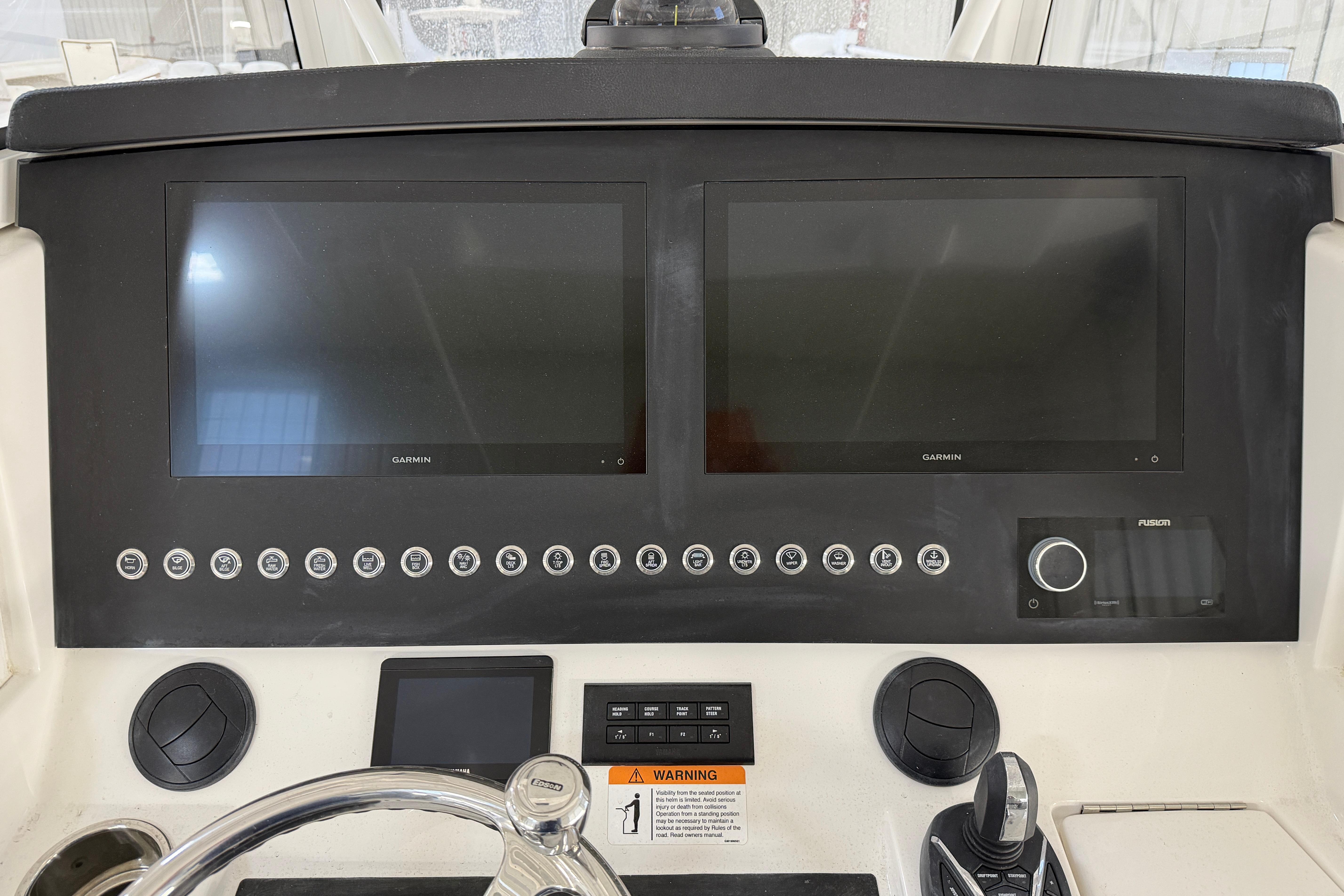 Triple White Yamaha F300 4-Stroke Engines with DES Tilt Helm and DEC– Plus Helm Master® EX Joystick w/ Multimode Set Point™,EX Autopilotw/ Waypoint Deceleration, and Electronic Key Switch with Wireless Fob.SHESHOWS NEW! YAMAHA WARRANTIES TILL 3/31!