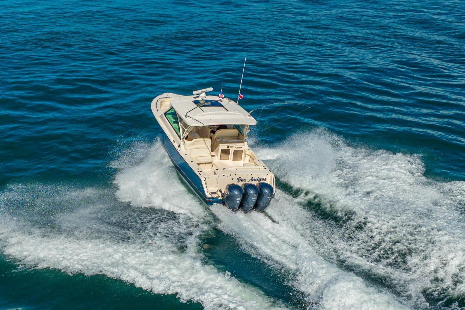 2020 Grady-White Freedom 375 “DOS AMIGOS” is a well-equipped and thoughtfully configured dual console that offers an ideal balance of performance, comfort, and versatility. She is powered by triple Yamaha 425 XTO outboards with 393 hours, delivering strong, reliable performance, and further enhanced by Yamaha Helm Master joystick control with SetPoint for precise maneuvering and effortless station keeping. Key upgrades include a Garmin electronics package, bow thruster, Seakeeper 6 gyroscopic stabilizer, and an 8kW diesel generator—making this Freedom 375 equally well suited for offshore operations, extended day cruising, or comfortable time at anchor.