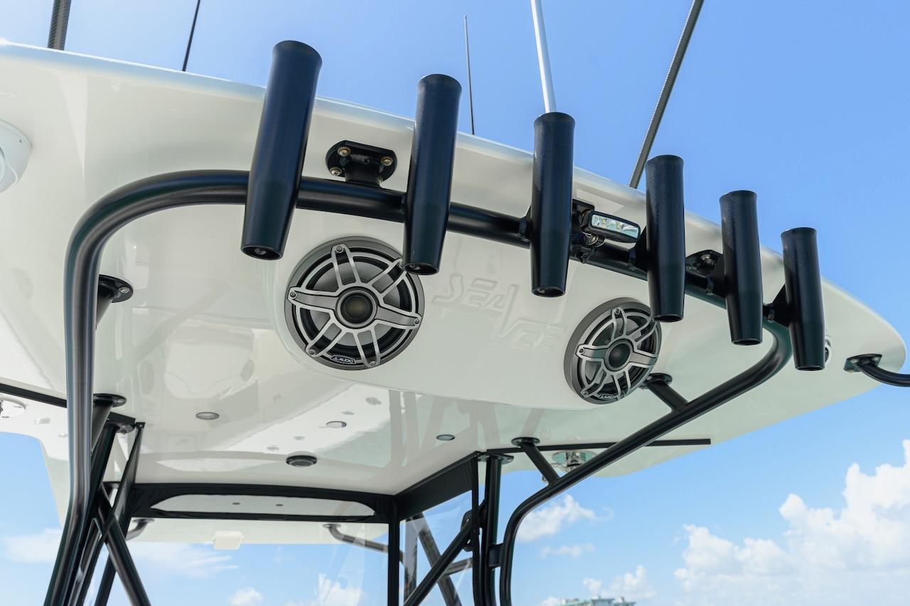 - 3 LED Molded Spreader lights, 5 Multicolored led lights, multicolored Under gunwhale lights, SeaBlaze X2 underwater lights – 1 down facing 2 rear facing multi-colored