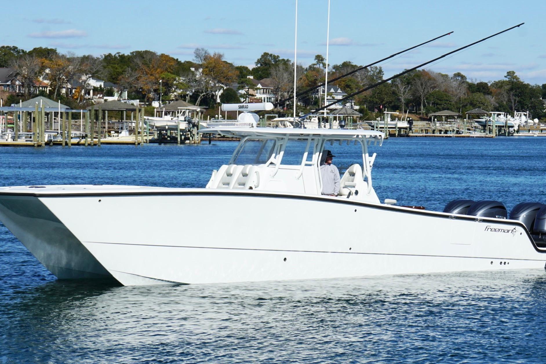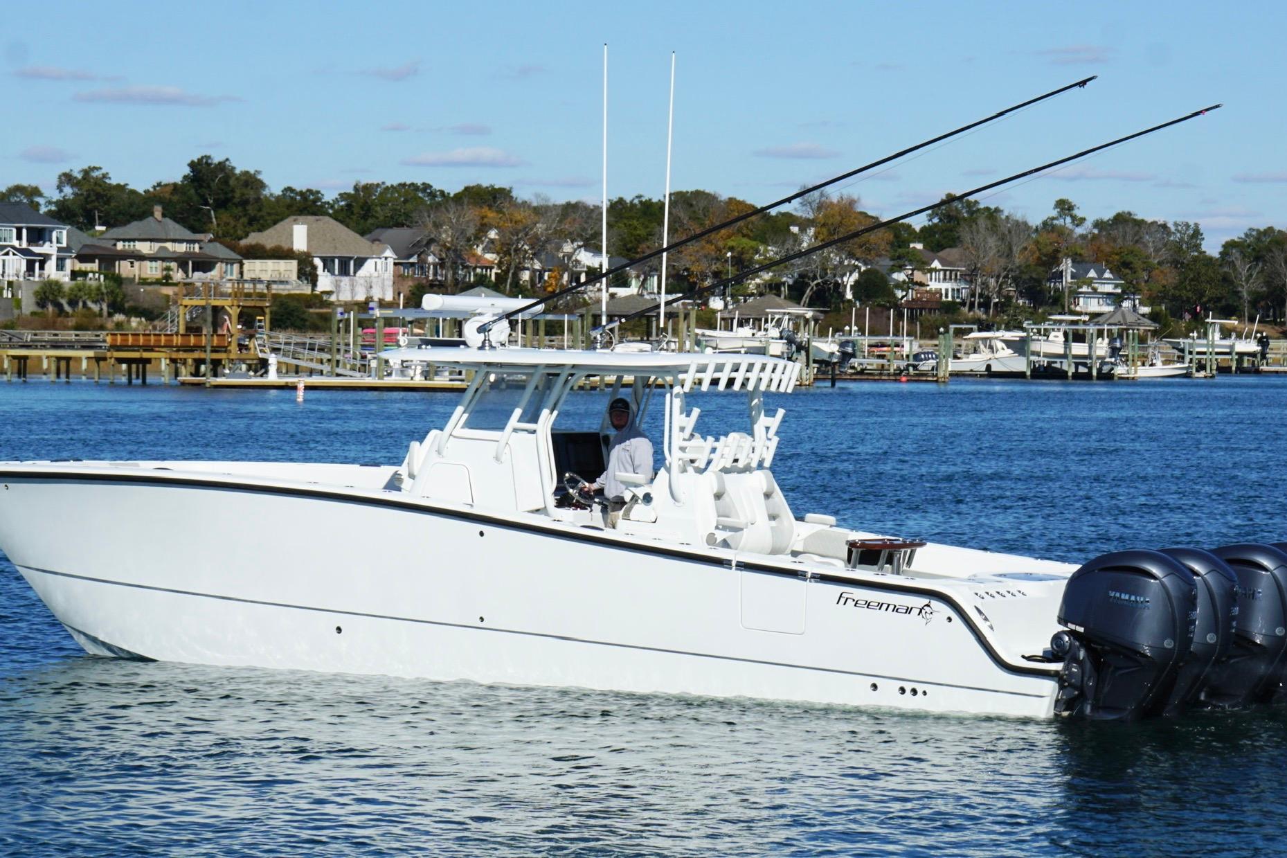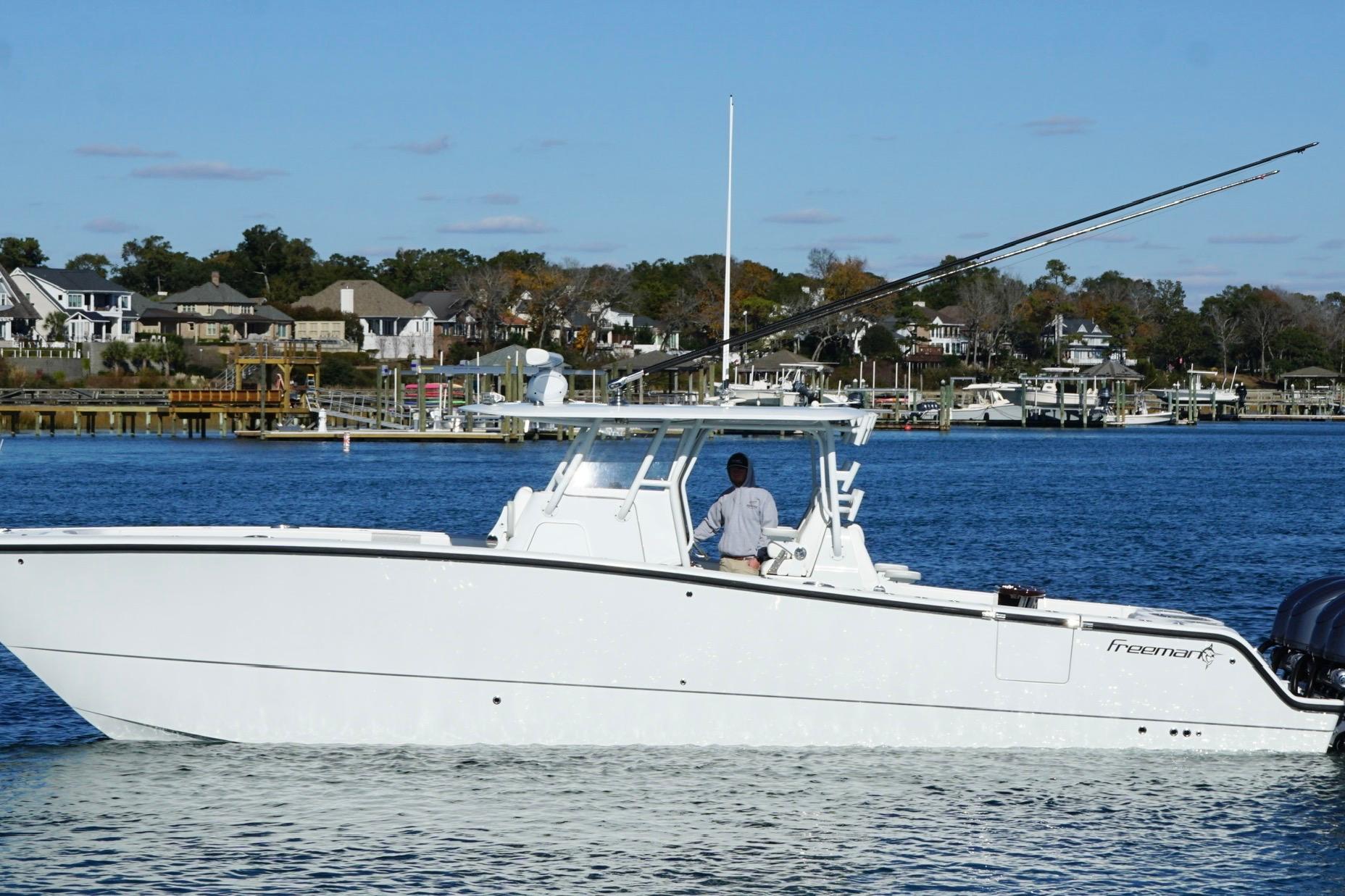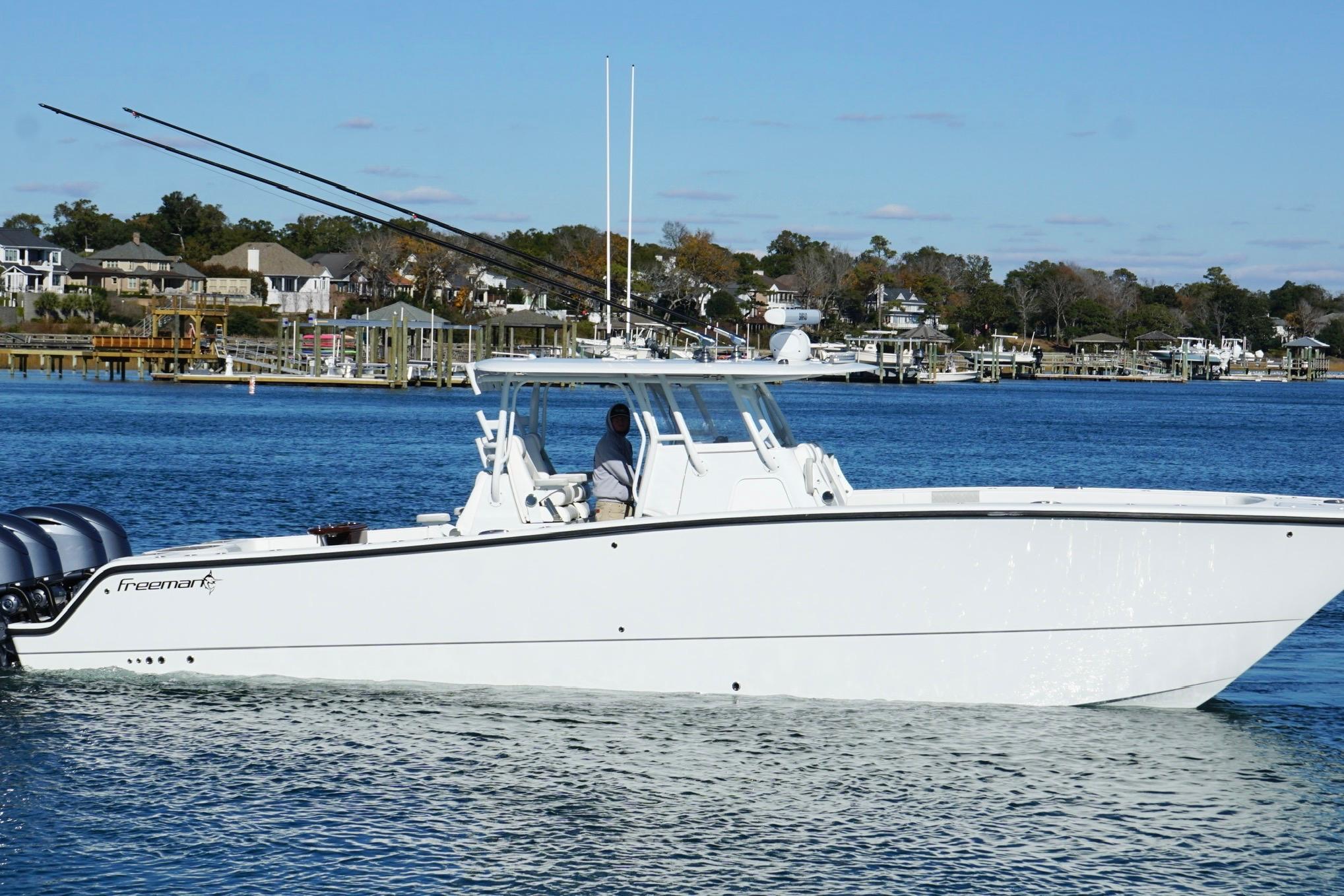 Introducing the stunning 2024 Freeman 38 Center Console, a remarkable vessel that combines elegance with performance. Crafted from durable fiberglass, this boat promises longevity and resilience on the water. It offers a spacious layout perfect for both leisurely outings and adventurous excursions. The Freeman 38 is designed for those who appreciate quality and functionality. Its sleek profile is complemented by a well-thought-out arrangement, ensuring comfort and ease of movement. The boat is equipped with essential features that enhance the boating experience, making it a fantastic choice for enthusiasts. Whether you're cruising along the coast or enjoying a day of fishing, the Freeman 38 provides a reliable and enjoyable ride. This used model is a great opportunity to own a premium boat that stands out in both style and performance. Experience the freedom of the open water with this exceptional center console.