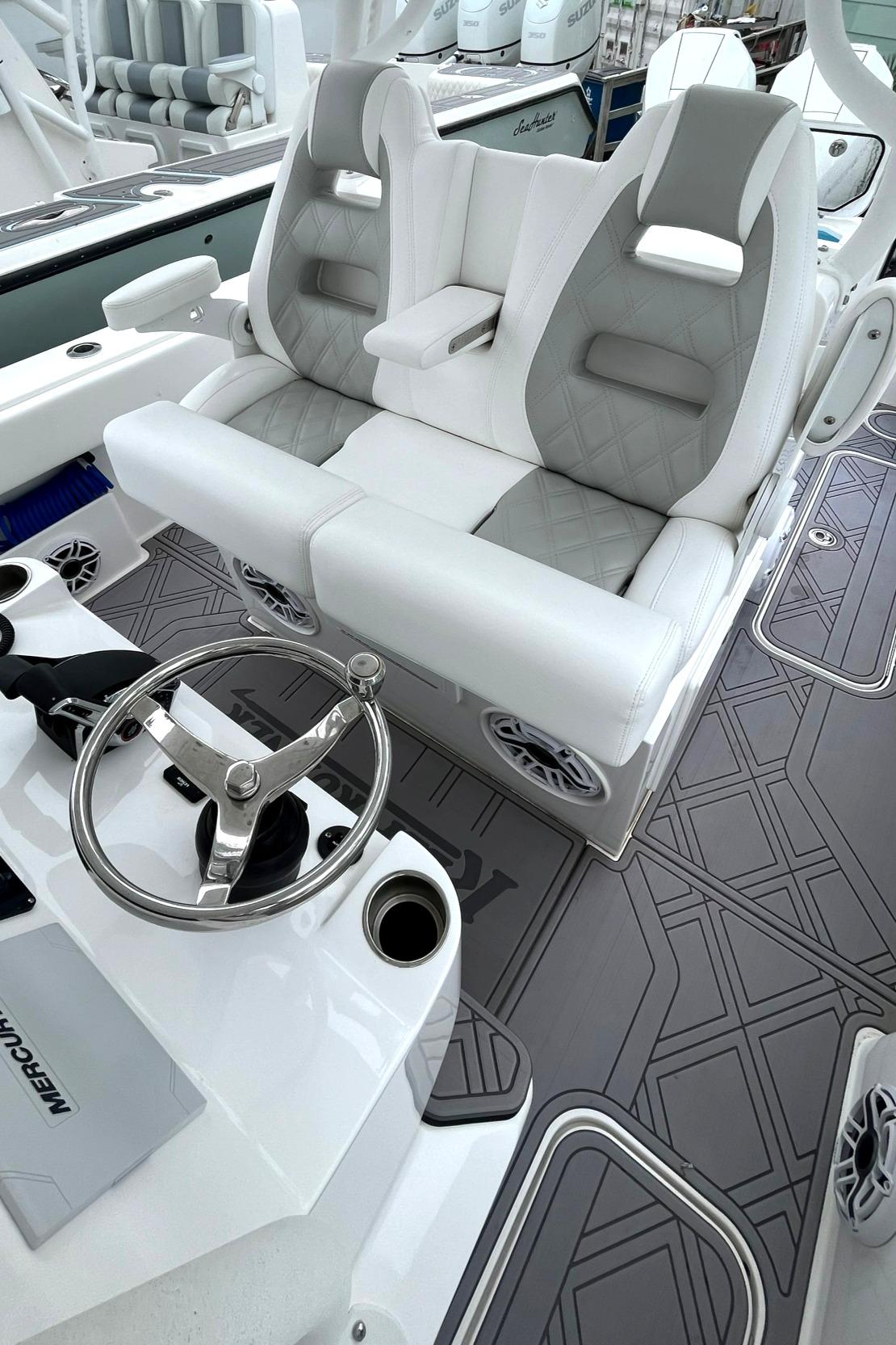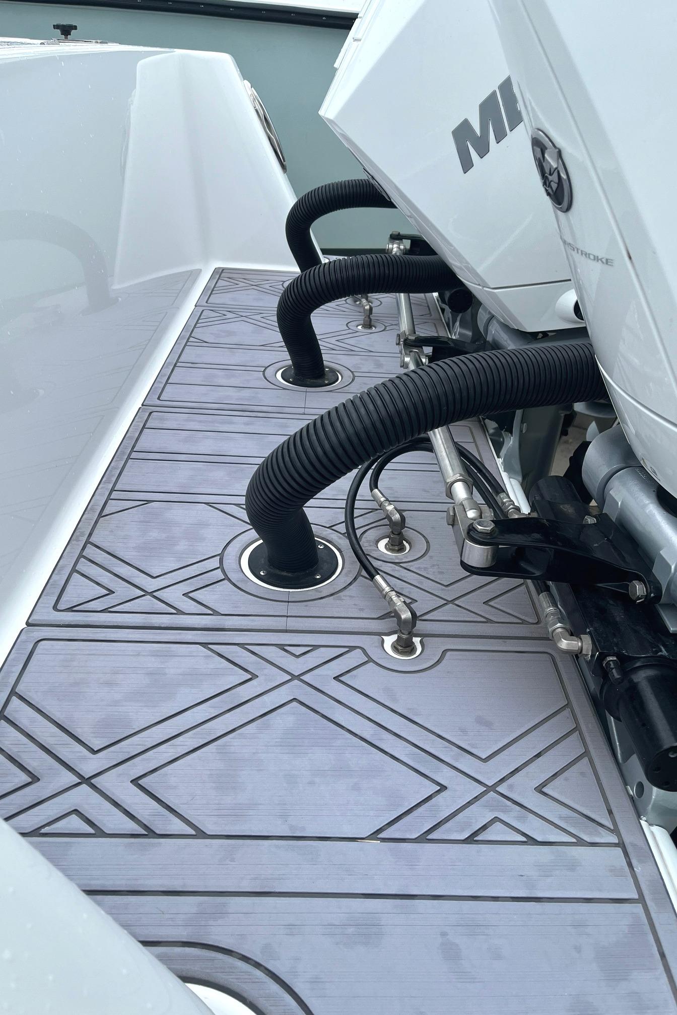 A remarkable center console boat that combines performance and style. With an overall length of 34 feet, this vessel is designed for both adventure and comfort on the water. The deep vee hull, crafted from durable composite material, ensures a smooth and stable ride, making it perfect for various water conditions. Powered by three Mercury Verado 300 outboard engines, each delivering 300 horsepower, this boat offers impressive speed and agility, ideal for thrilling outings. The stainless steel 3-blade propellers enhance efficiency and performance, ensuring you can navigate with ease. This model features a well-appointed head, providing convenience for longer excursions. The Reef Runner 340 is equipped with essential features, making it a fantastic choice for both seasoned boaters and newcomers alike. Experience the perfect blend of power and comfort with this exceptional vessel.