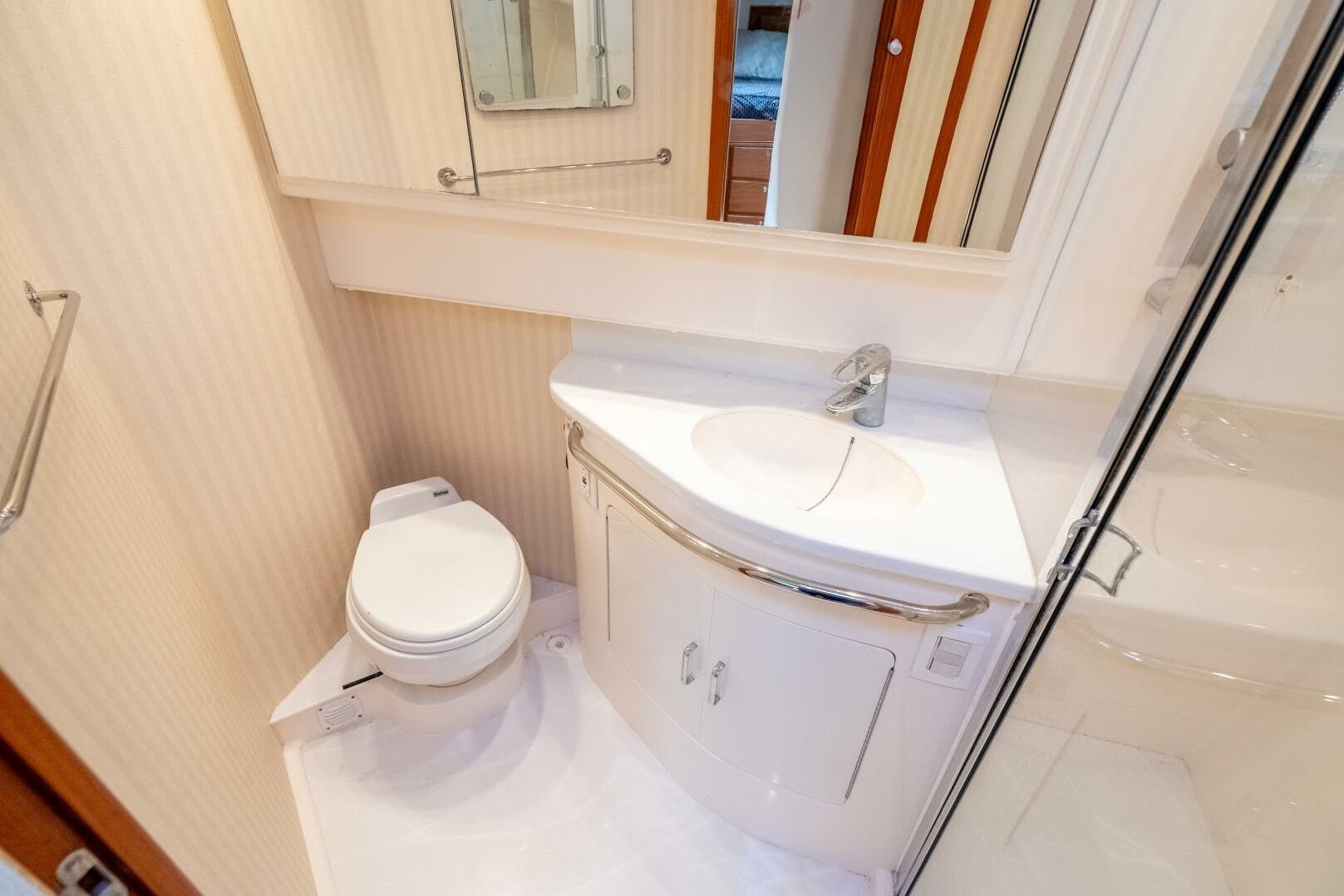 - Large head and HUGE shower, AC vent in head, mirror, storage, Vacuflush marine toilet w/ tank indicator light