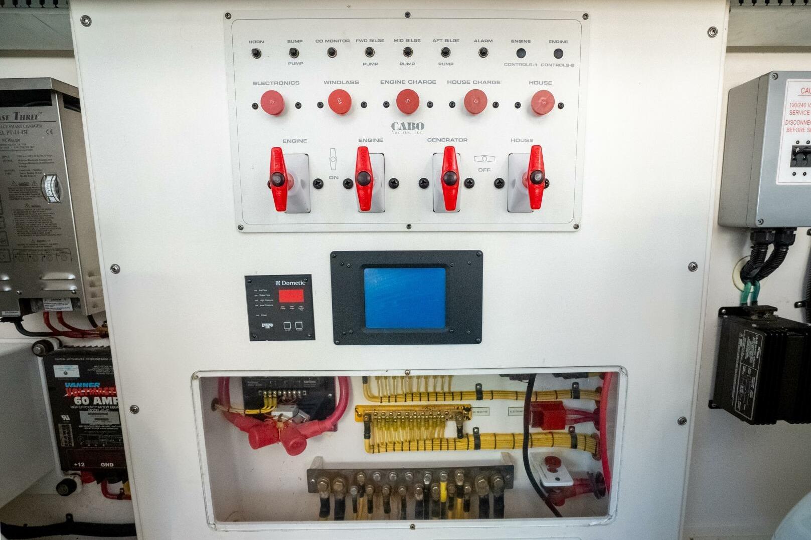 The cockpit of the 40 Cabo “MOONDAWG” is all business! Whether fishing, diving or cocktail cruising she has it all. Her 15’9” beam is very evident and there is tons of room to work and maneuver. Cockpit features include…