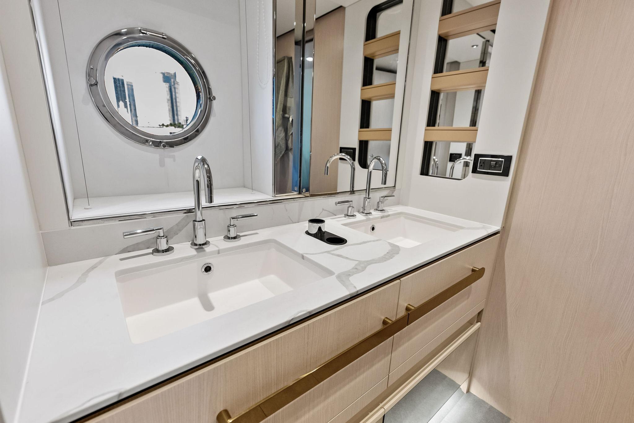 Powered by triple Volvo IPS 1350 (1,000 HP) engines with joystick control and stabilized by a Seakeeper 26, she offers outstanding performance, comfort, and ease of operation. Originally delivered with an MSRP nearing $6.5M, reflecting the depth of her factory options.