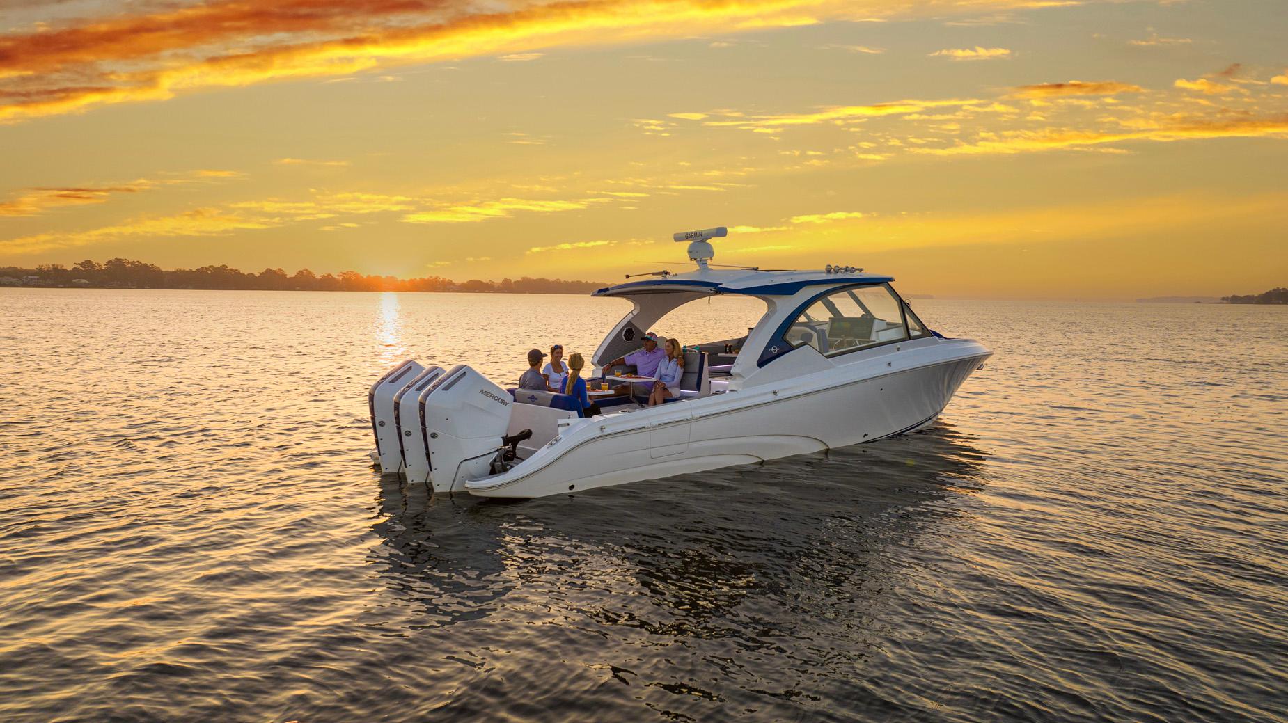 - Powerful Performance: Powered by twin Mercury 600HP outboards, the 39DX effortlessly reaches thrilling speeds while maintaining exceptional fuel efficiency.