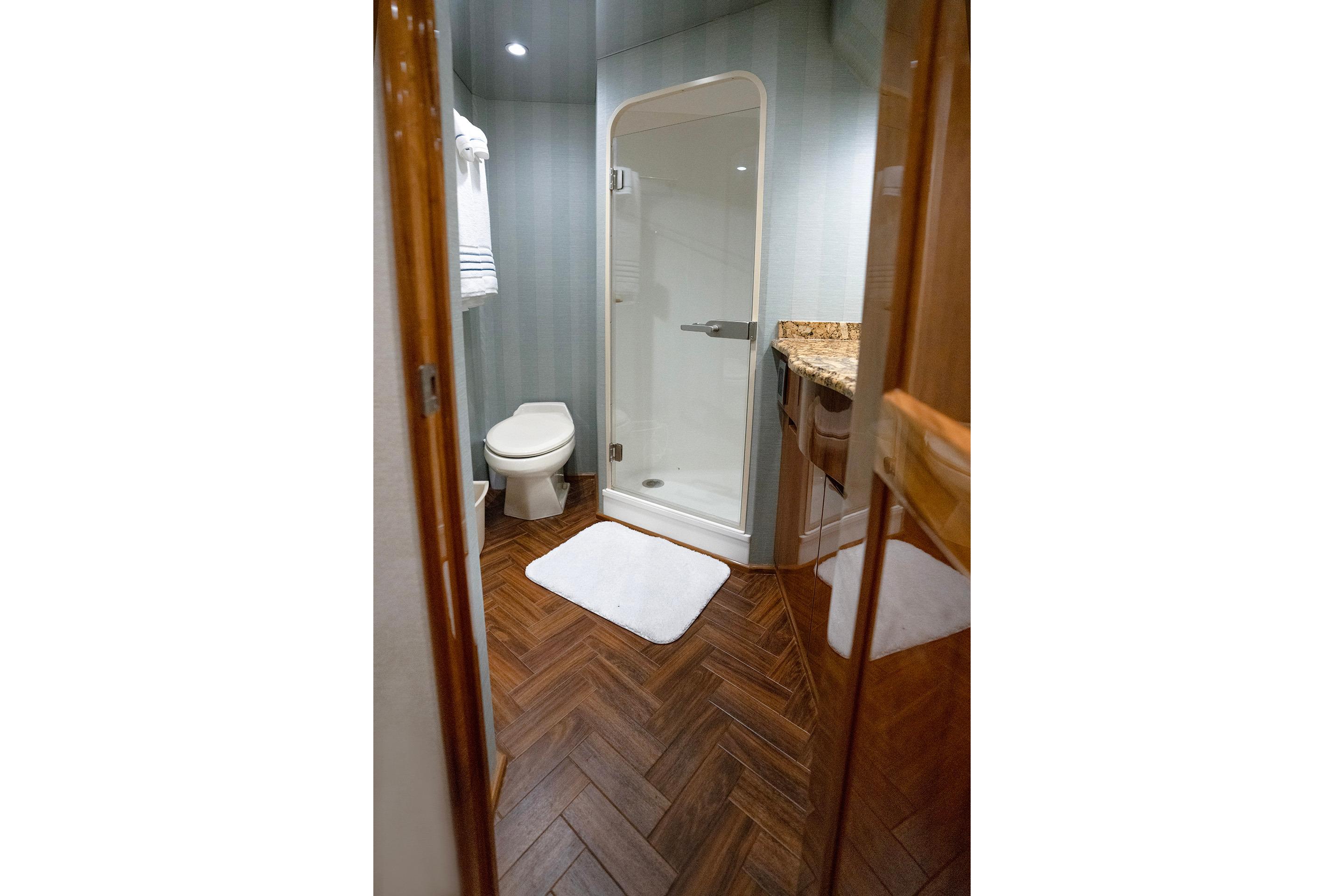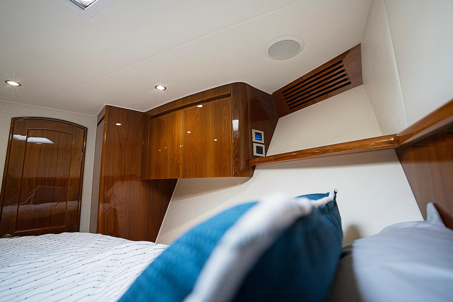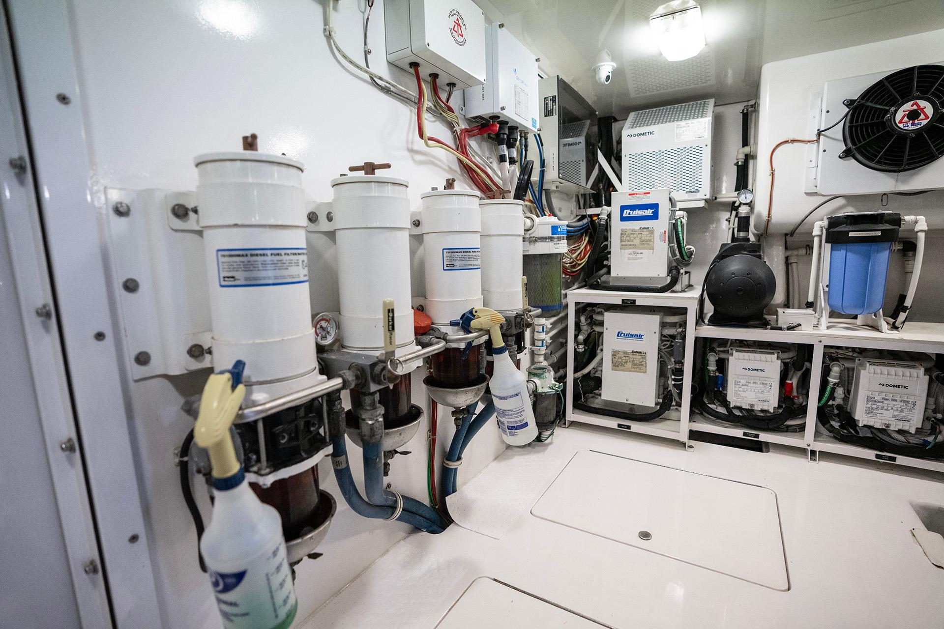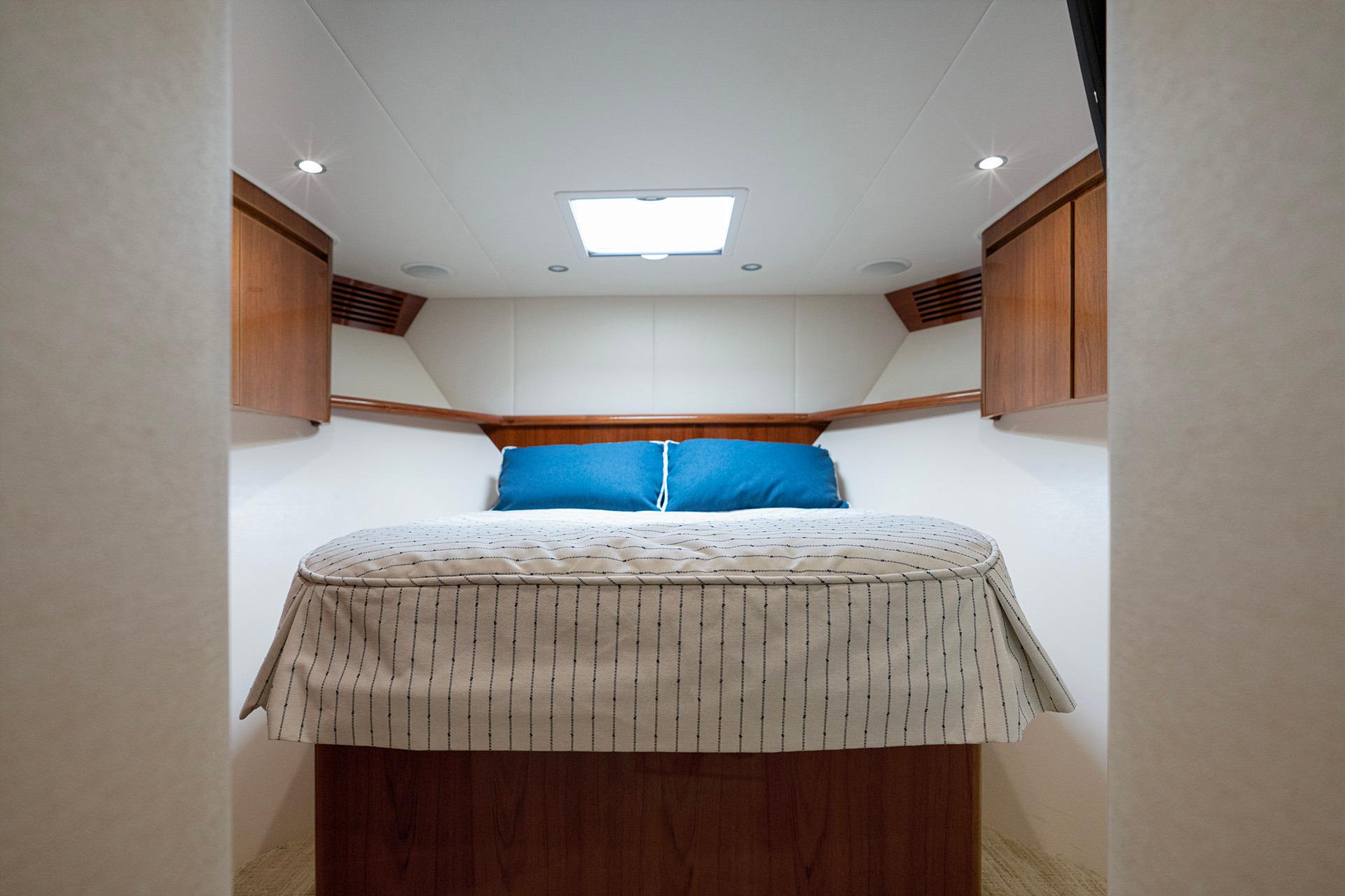 starboard lies the spacious crew quarters with ensuite head. To port you