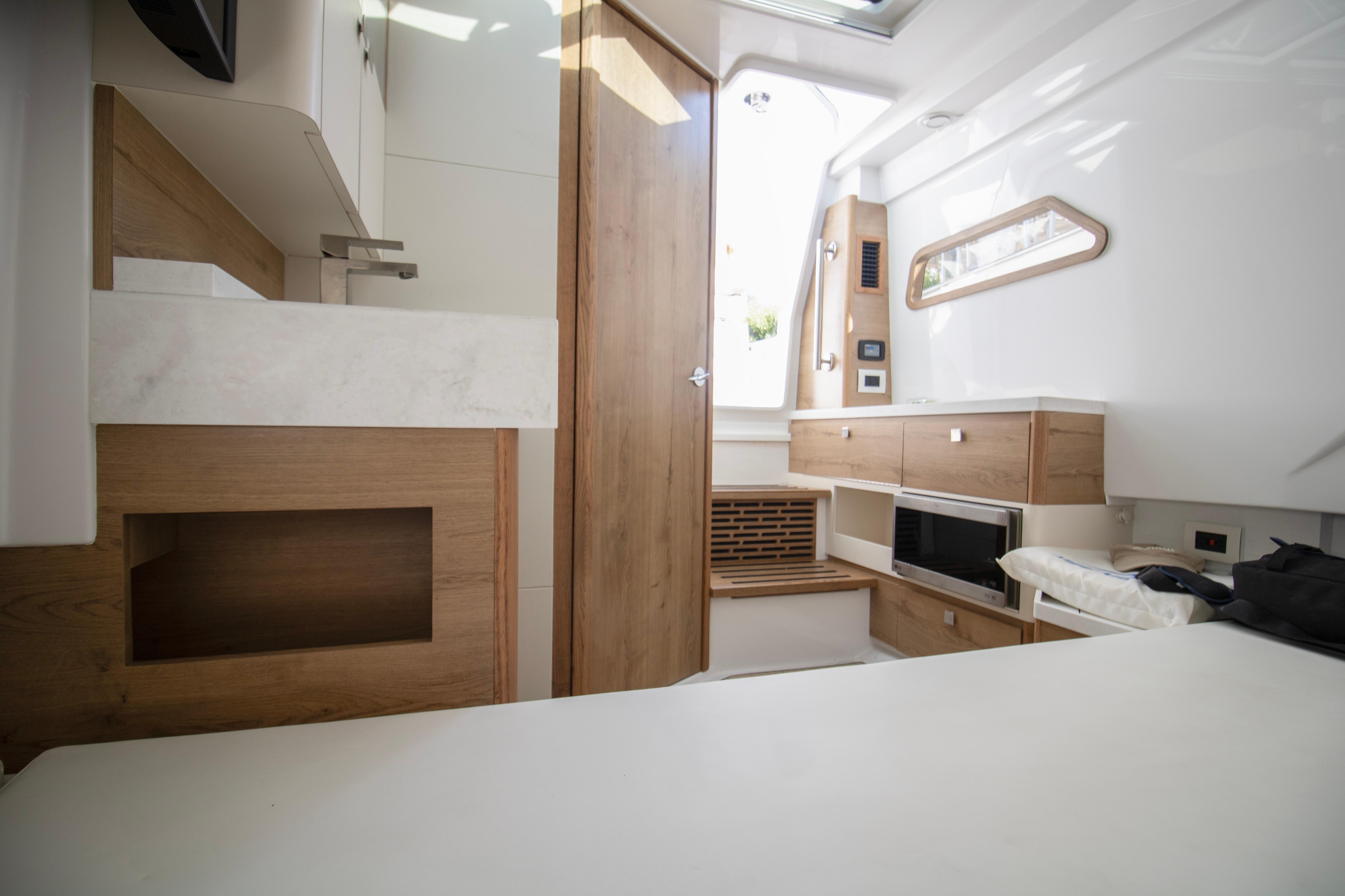 Hatches/doors with molded fiberglass liners and backs • Heavy-duty white vinyl rub rail with stainless insert and end caps