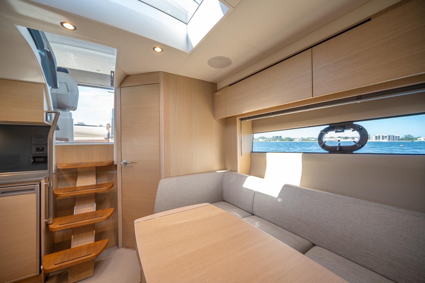 Spacious cockpit with wet bar and dining area