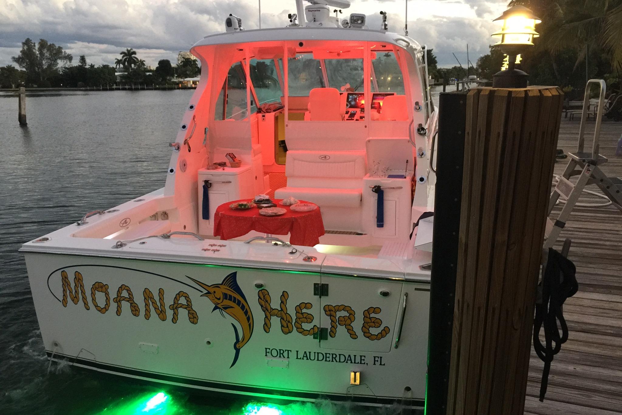 Introducing the 2015 Albemarle 360 Express Fisherman, a remarkable saltwater fishing vessel measuring an impressive 38.67 feet in overall length. This used boat boasts a robust fiberglass hull with a Deep Vee shape, ensuring stability and performance in various water conditions. Powered by twin Volvo Penta D6-435D-F inboard engines, each delivering 435 horsepower, it offers a thrilling experience on the water. With a total of 1235 hours on the engines, this boat is ready for new adventures. Equipped with joystick control for effortless maneuvering and an electric windlass for convenience, the MOANA HERE is designed for both comfort and functionality. It accommodates up to 16 passengers, making it perfect for fishing trips with family and friends. Experience the thrill of saltwater fishing with this exceptional vessel, combining power, comfort, and cutting-edge features for an unforgettable journey.