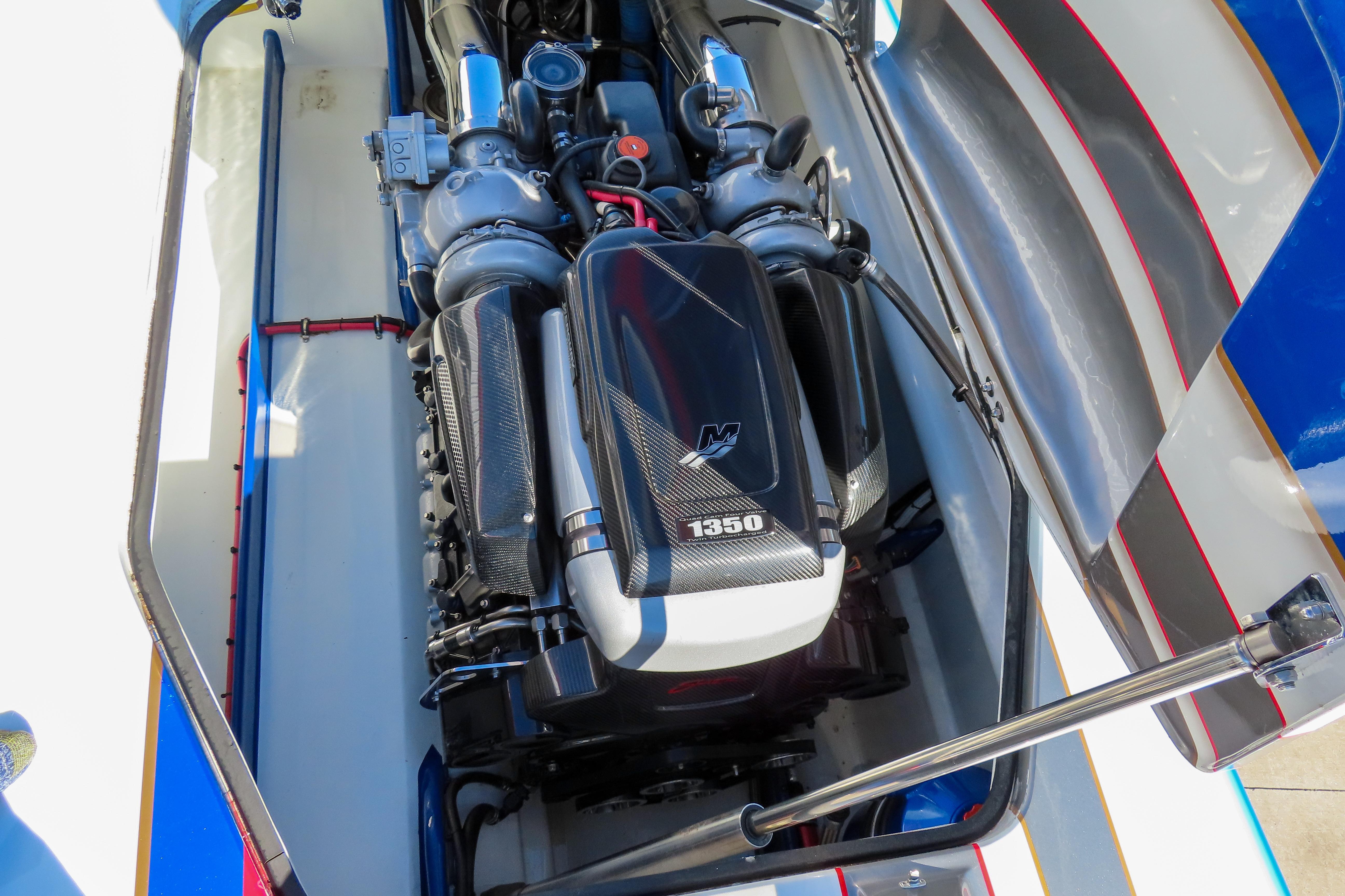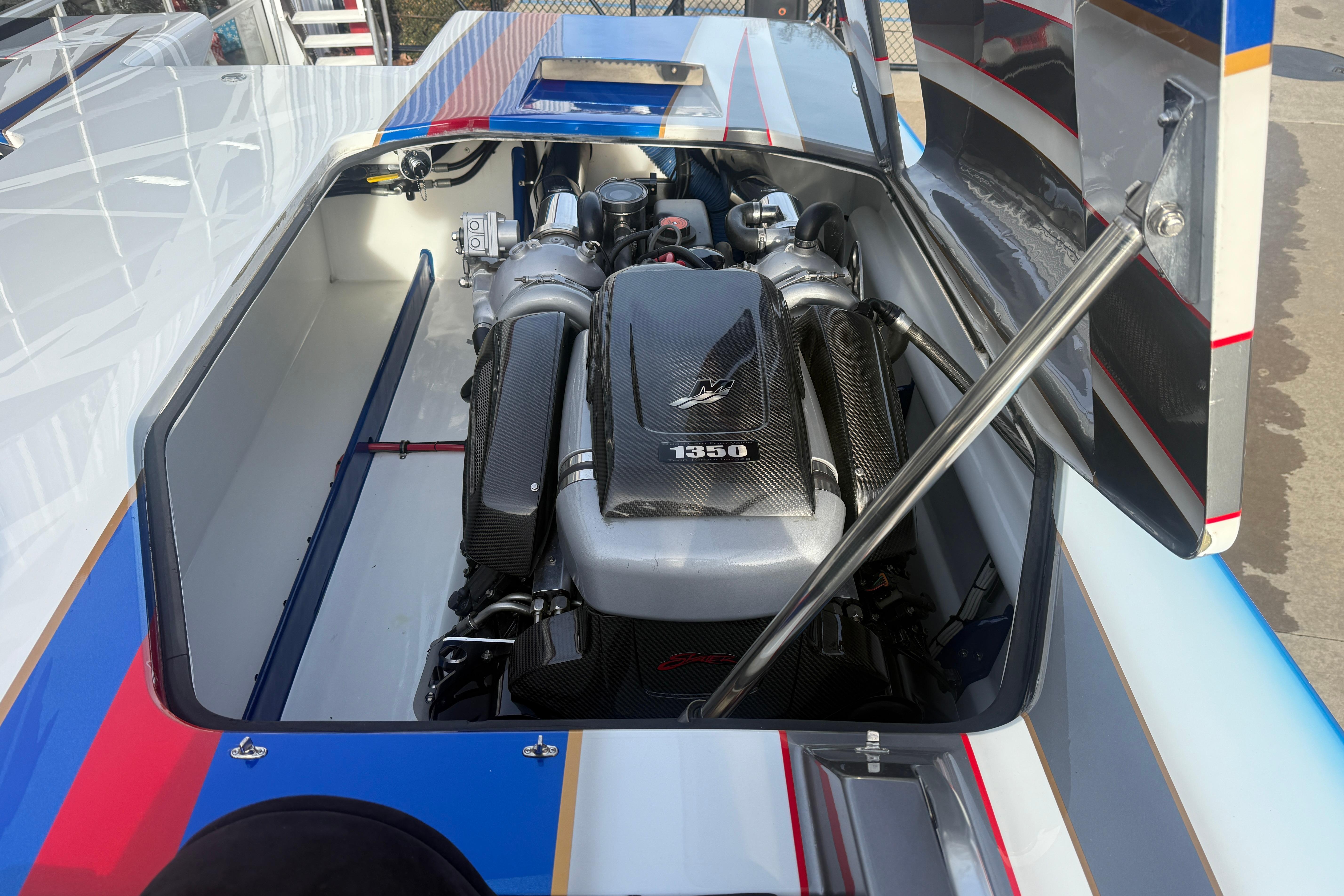 2016 Skater 388 powered by twin Mercury Racing QC4V 1350's and M8 drives with only 65 hours!