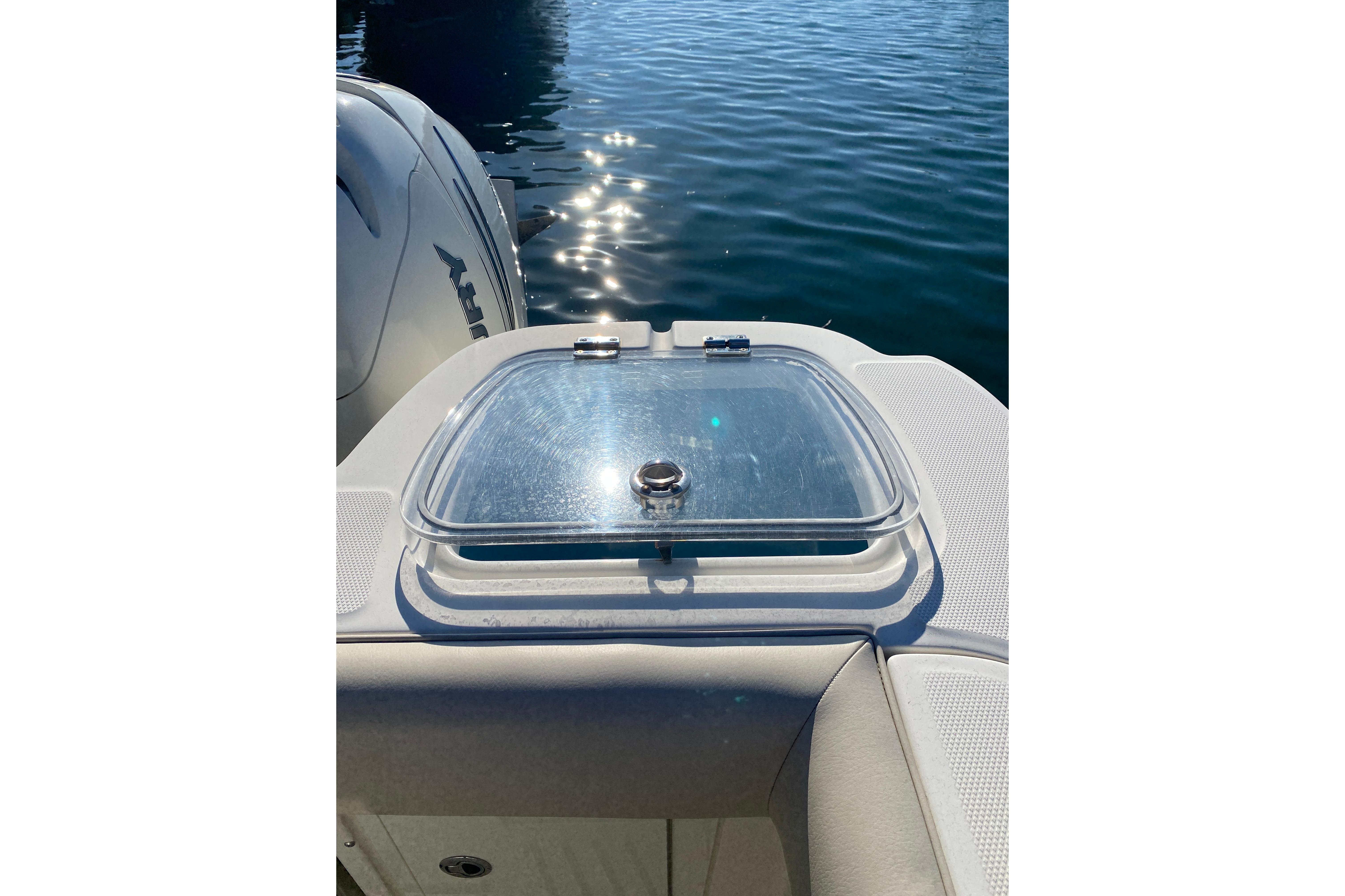 - Convenient cockpit prep station with optional flip-top grill, huge storage and YETI® cooler.