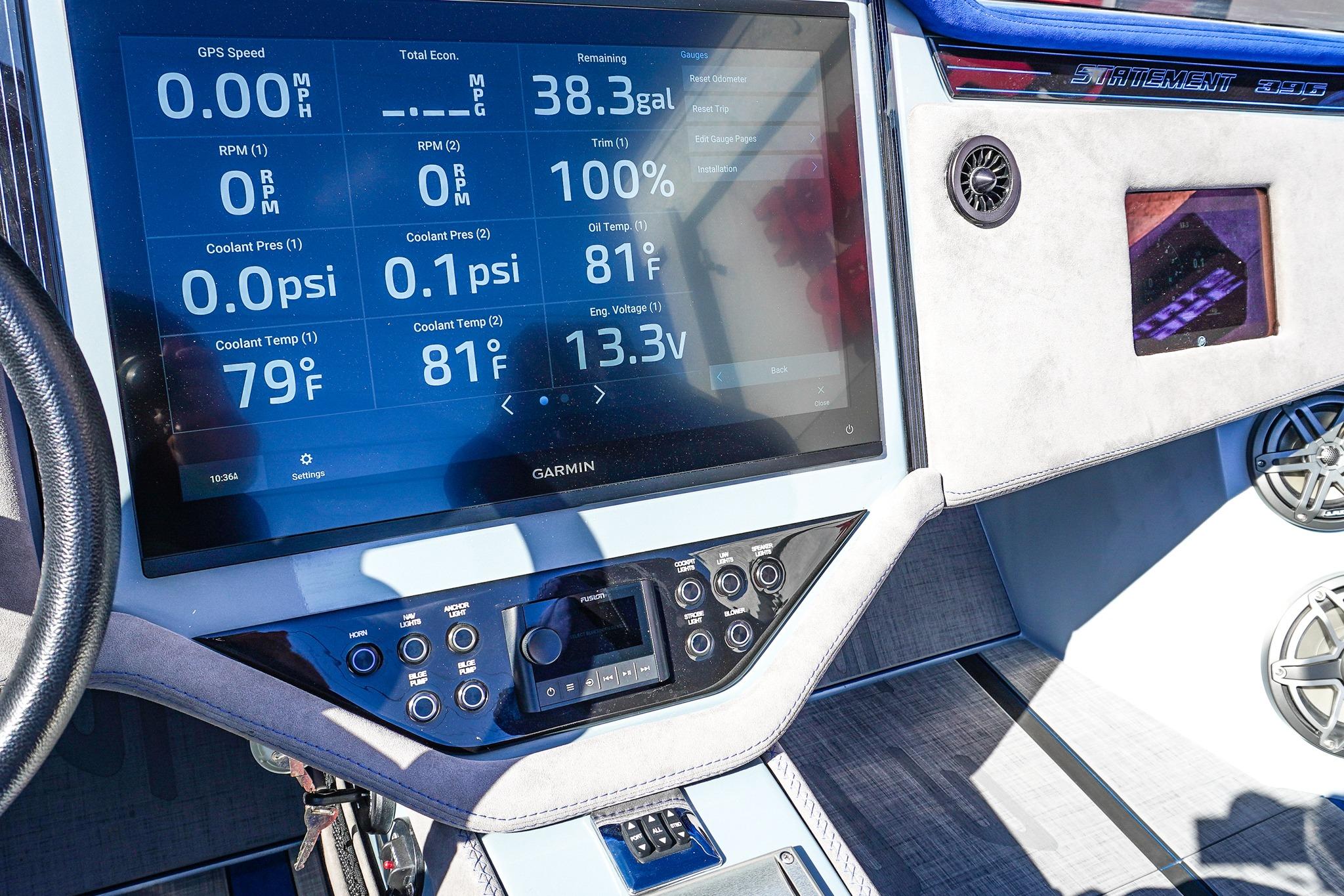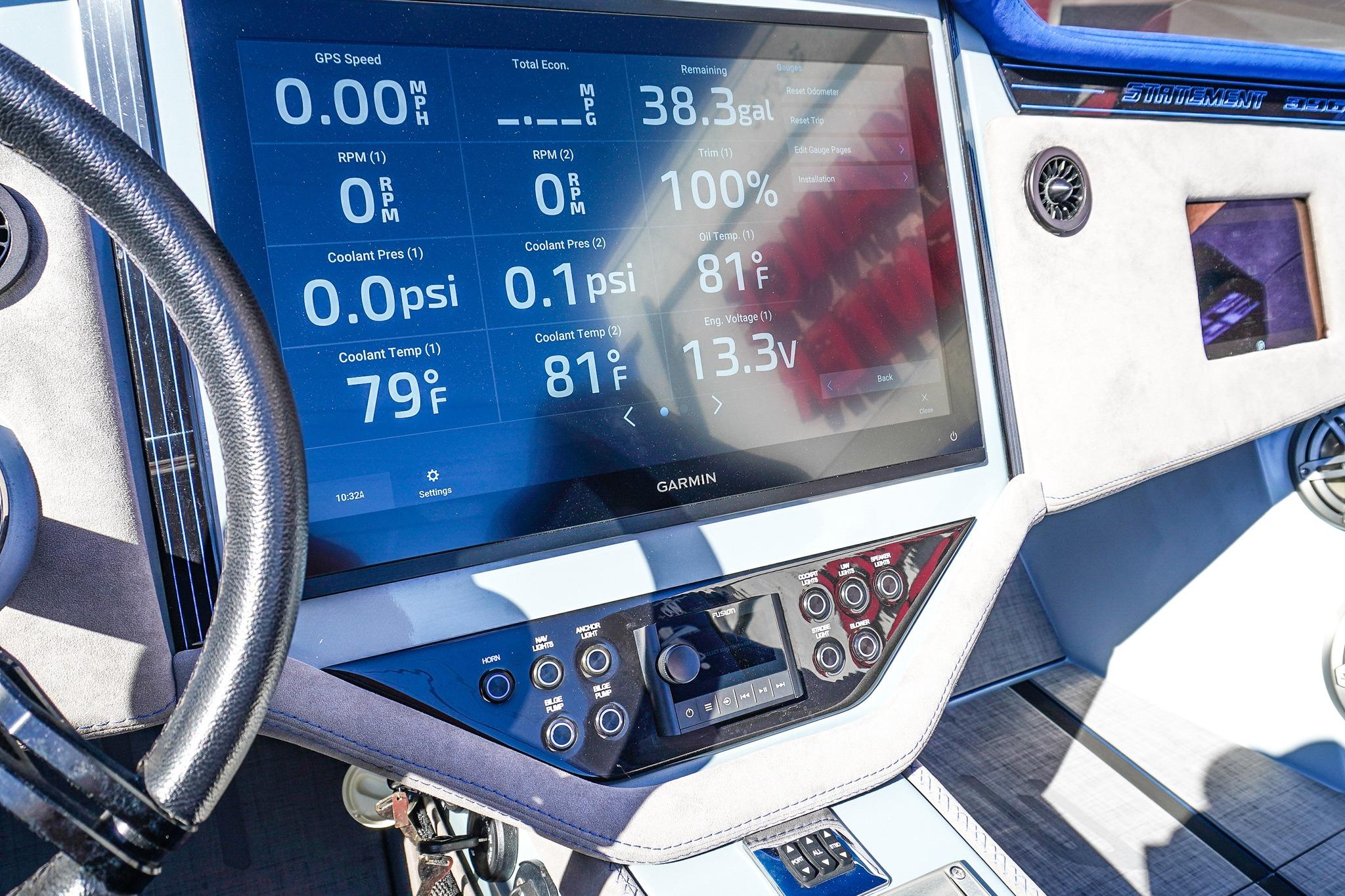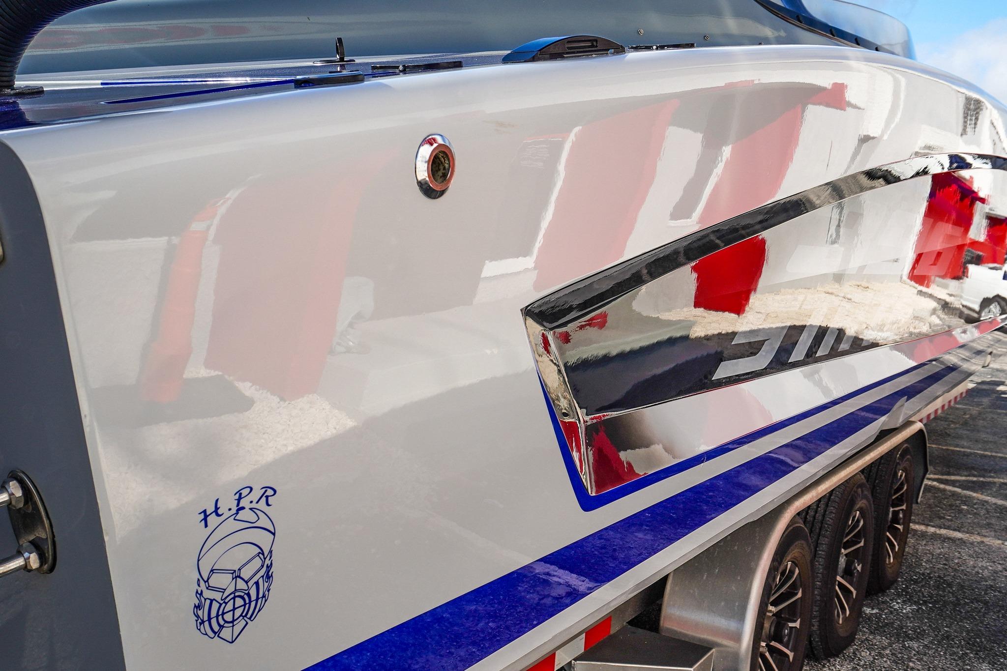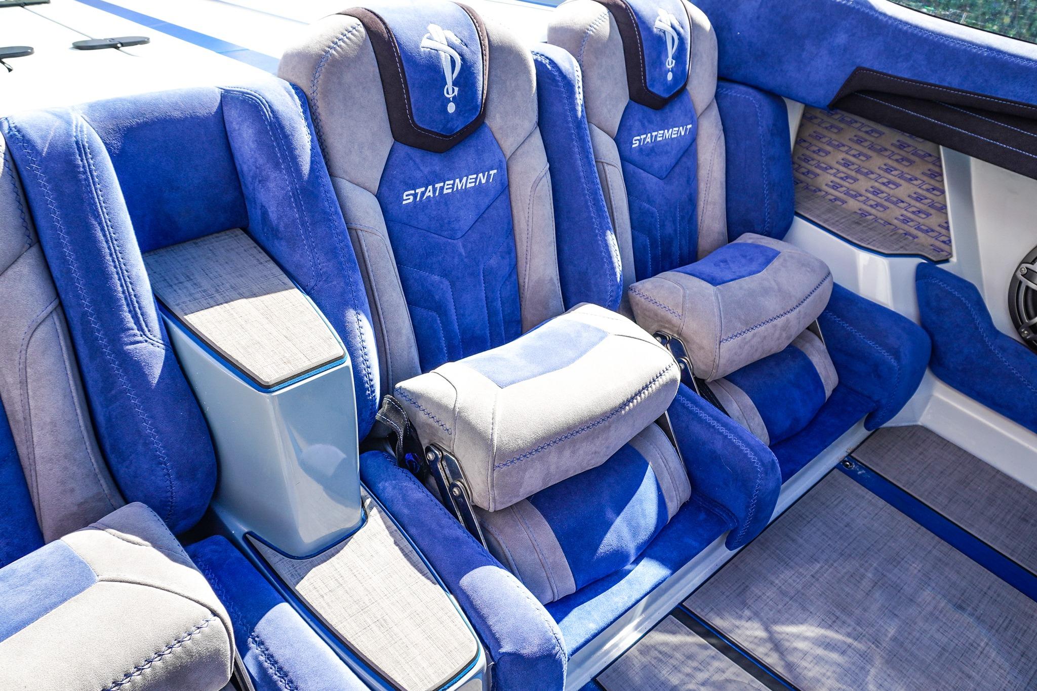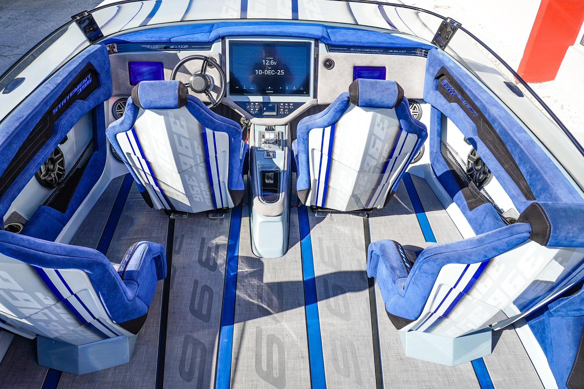 8 Seat Cockpit configuration w/ Pop-up Bolsters on all 8 Seats, Alcantera Interior, Seadek Flooring, Blackout Hardware, HUGE JL Audio Stereo, 22inch Garmin Chartplotter GPS, 2 Mercury Vessel Views, Dash Blowers, Accent Lighting throughout, Under Water lighting, Swim ladder, Cockpit cover, and Custom Triple Axle Aluminum Trailer Included!