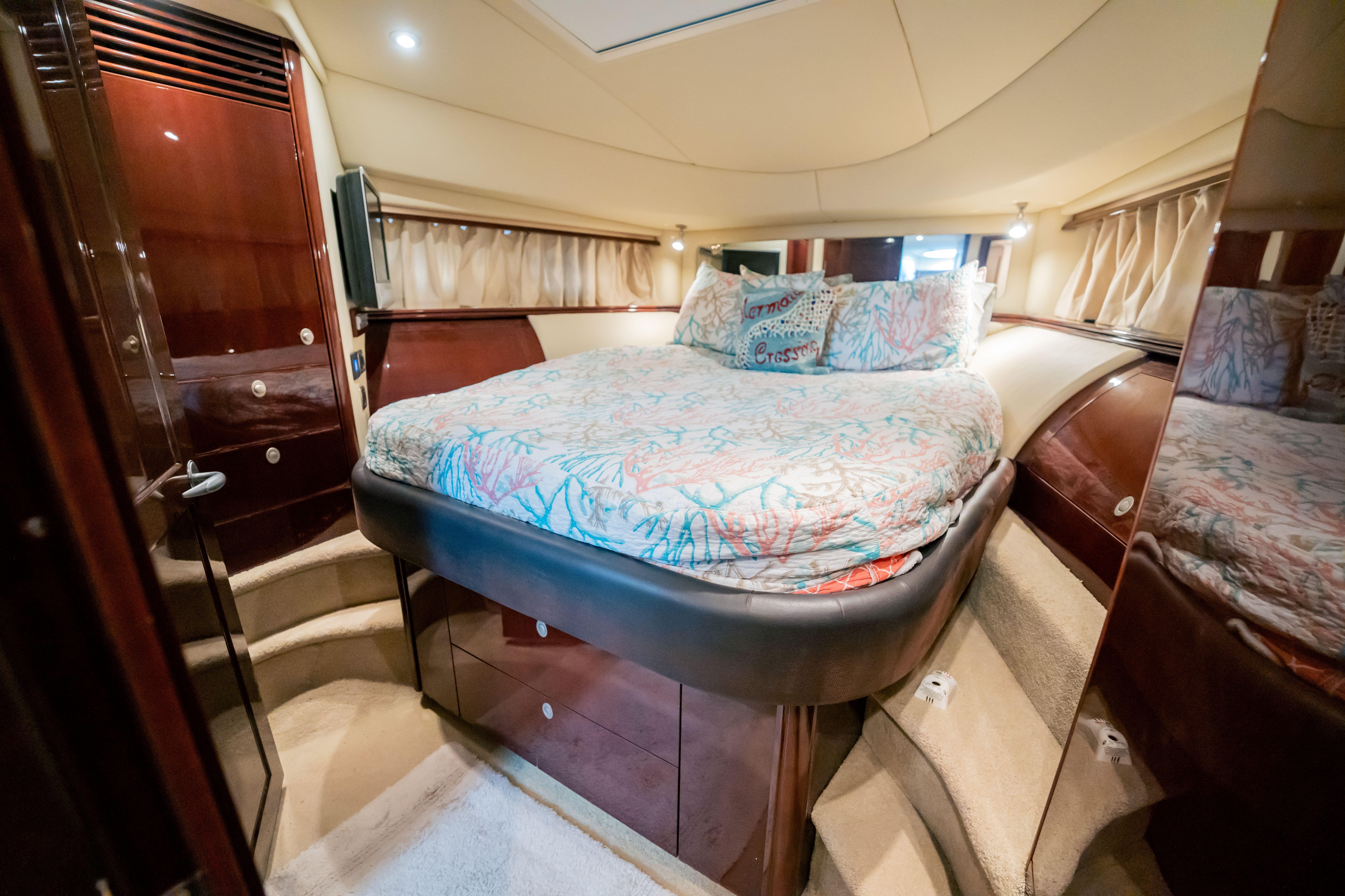 This meticulously maintained 2007 Sea Ray 580 Sedan Bridge stands out as a turnkey example of one of Sea Ray’s most popular motor yachts. Timeless styling, a spacious 3-stateroom, 2-head layout, and a host of recent upgrades make her the ideal blend of comfort, performance, and modern technology. Boarding from the hydraulic retractable swim platform, you’ll find easy access to the cockpit. An up-molded staircase leads to the flybridge, where you’ll find a carpeted deck, a newer isinglass enclosure (2023), and a full suite of updated electronics. The helm is equipped with a Garmin GPSmap 18 XSV, a 2023 Raymarine 16-inch display, refurbished MAN engine displays, FLIR night vision camera, and aft-facing and salon cameras for full visibility. Entertainment on the bridge is top-notch with a Fusion stereo system, JL Audio speakers, a Vizio Roku TV, and Starlink internet for streaming or remote work. On the bow, there is a new bimini shade and custom covers for the sun loungers, plus a windlass with protective cover, highlighting the level of care this yacht receives. Inside, the salon welcomes you with rich wood finishes, large windows, and a relaxing open layout. Updated TVs have been installed in the salon, master stateroom, and guest stateroom. The Sub-Zero refrigerator/freezer, washer/dryer, and custom memory foam mattresses (2023) elevate onboard comfort, while the yacht’s airlock system ensures a quiet, climate-controlled environment. Below deck, the 3-stateroom, 2-head configuration offers generous accommodations for family or guests. The master suite features a private ensuite and ample storage, while the guest cabins are well-appointed with fresh décor and upgraded soft goods throughout. Mechanically, she’s been appropriately maintained. In June 2025, she received new bottom paint, rebalanced and tuned props, new zincs, raw water pump service, and shaft cutters—making her ready to cruise immediately. Whether you’re looking to enjoy weekends on the water or extended island trips, this Sea Ray 580 Sedan Bridge delivers luxury, performance, and peace of mind in one complete package.