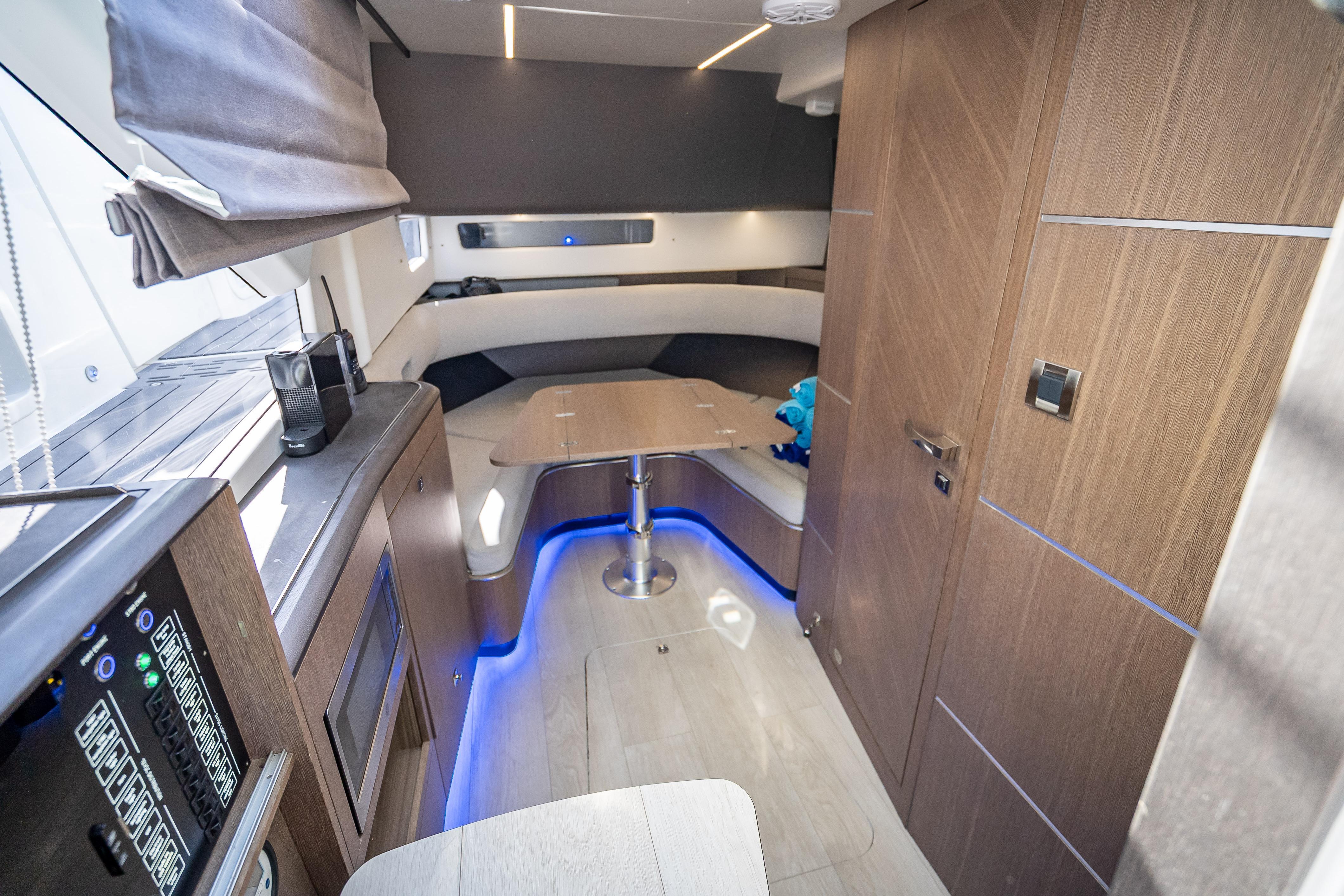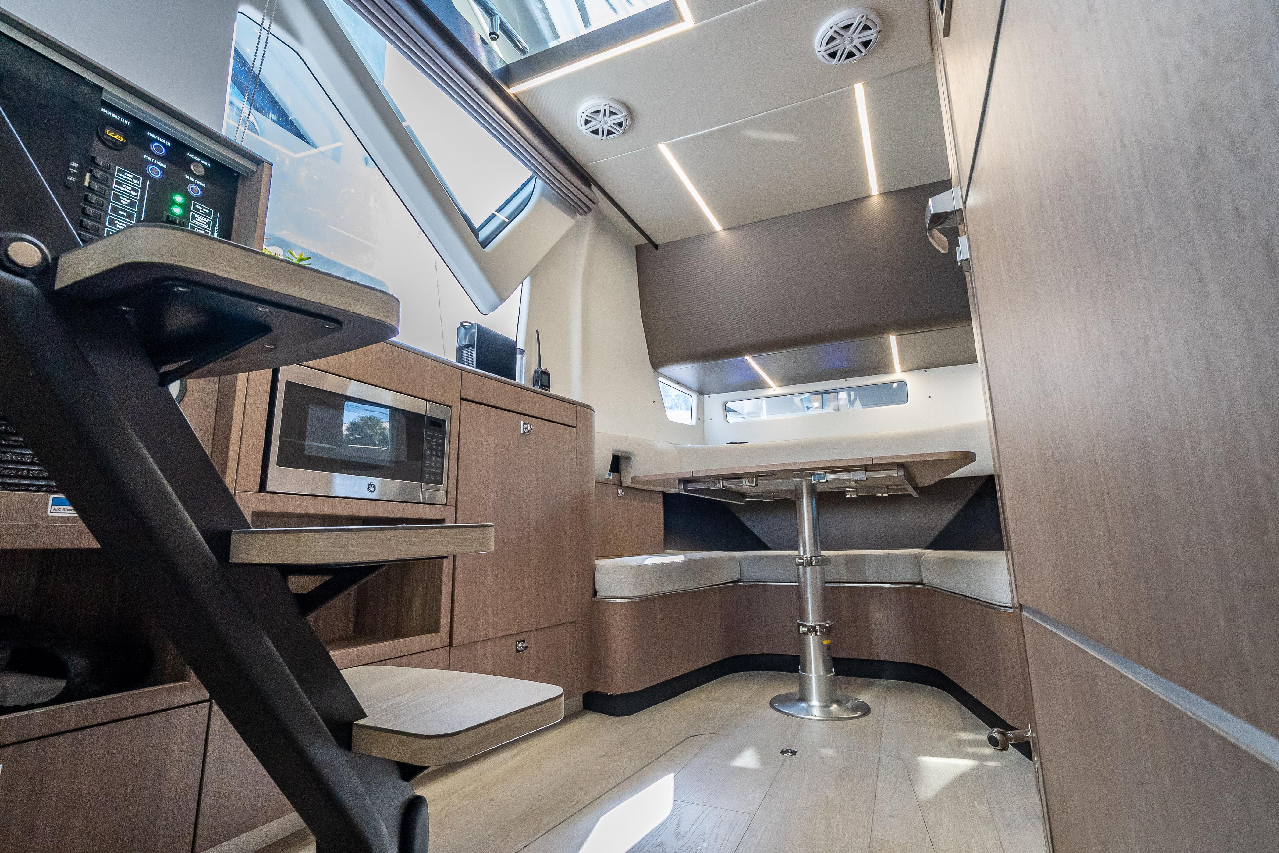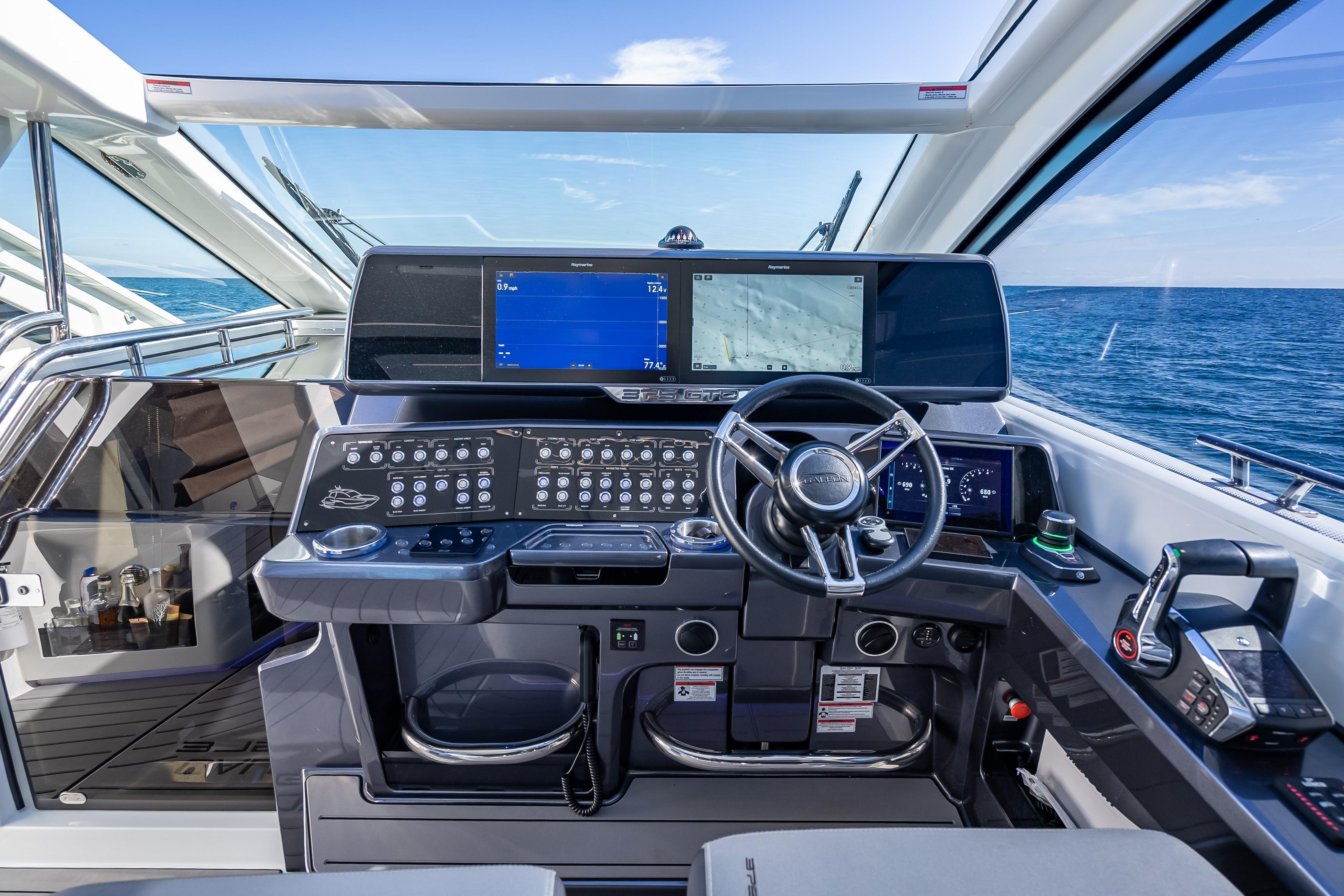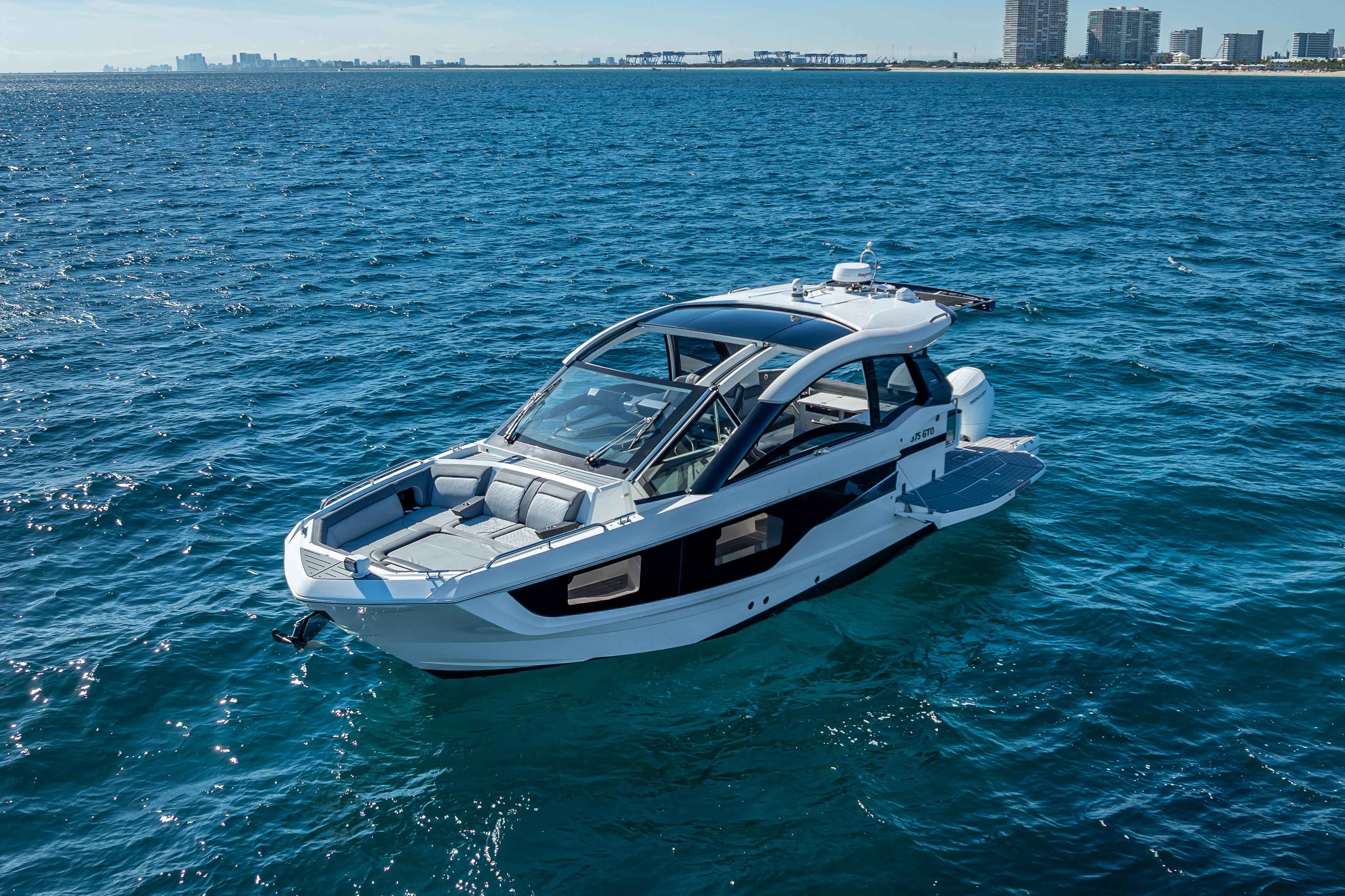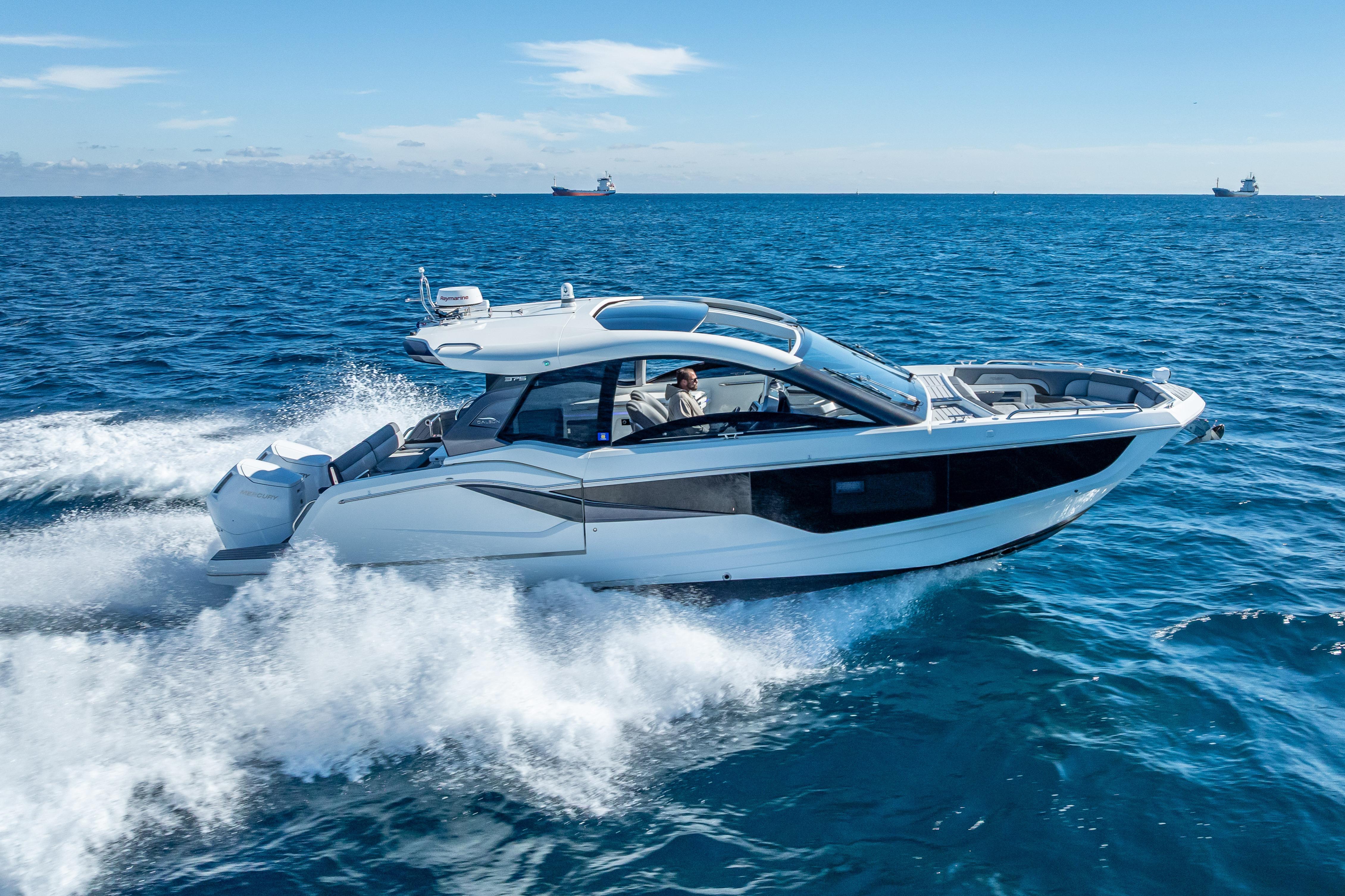 Whether you like to race around in open water at 50 mph or raft up on a lazy Sunday afternoon, the Galeon 375 GTO is the boat for you. This sleek, sporty, and versatile cruiser can do anything you ask of her. And she can do it with plenty of room to spare for your favorite people, thanks to a spacious lounge in her bow, a cockpit equipped with Galeon’s famous Beach Mode expandable decks, and highly comfortable accommodations. The sky is truly the limit when it comes to the 375 GTO.