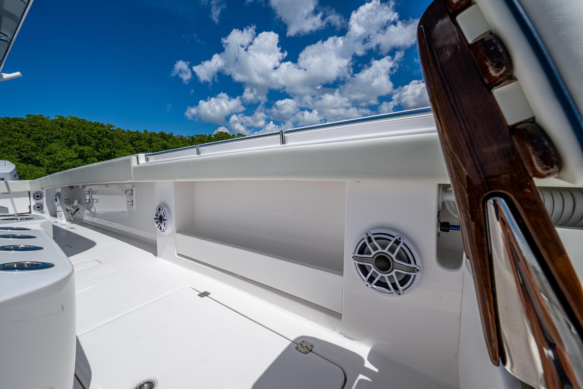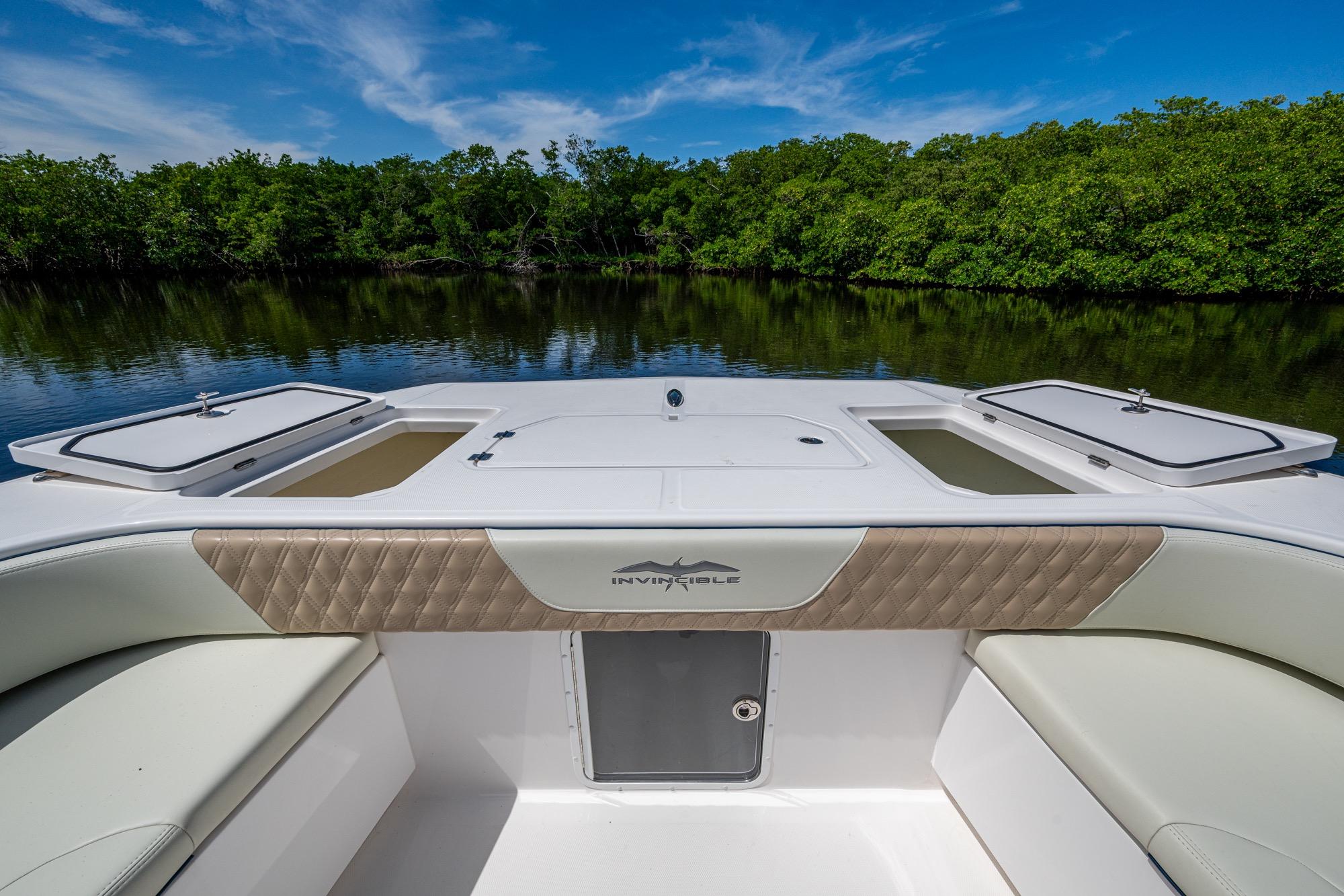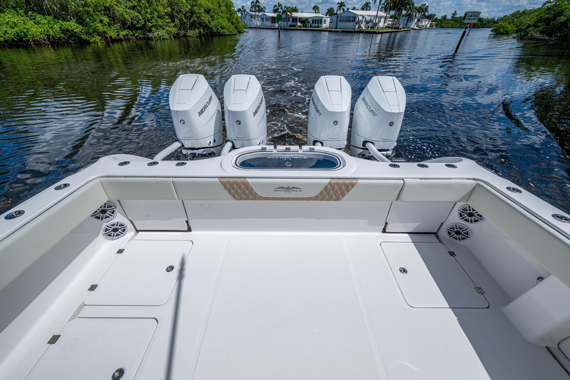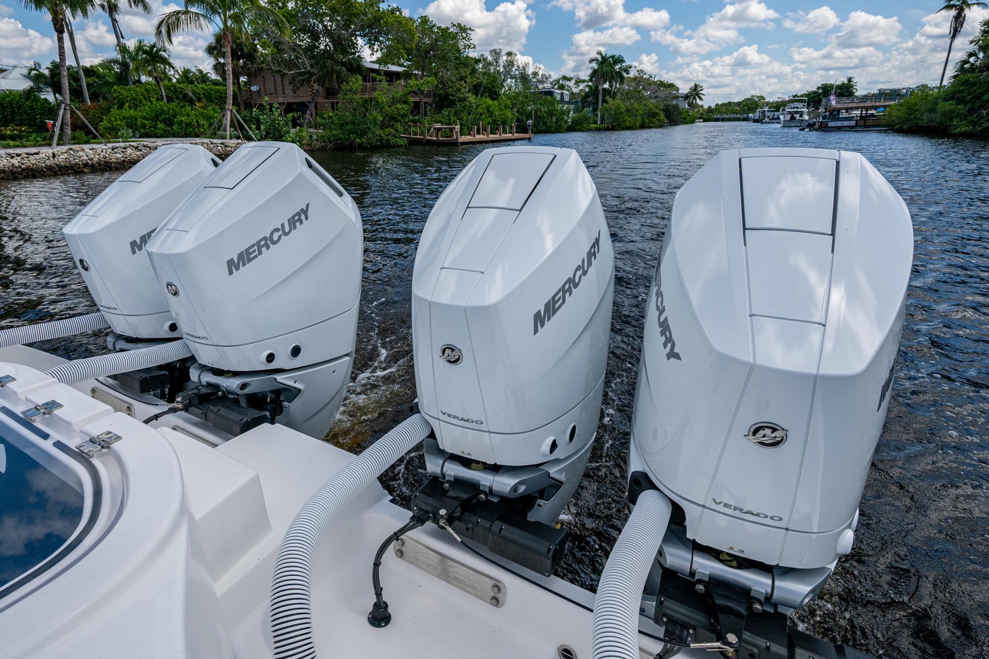 This 2025 Invincible CAT is loaded with equipment and turn key ready to go. It features a Stars and Stripe Blue Hull and quad White V10 400 Mercurys with only 12 hour and full transferable warranty. Forward seating, Release Marine Hi-gloss seats, Drum windlass, Comprehensive Garmin electronics package, and a head in the console. Special circumstances bring the boat to market for a quick sale.