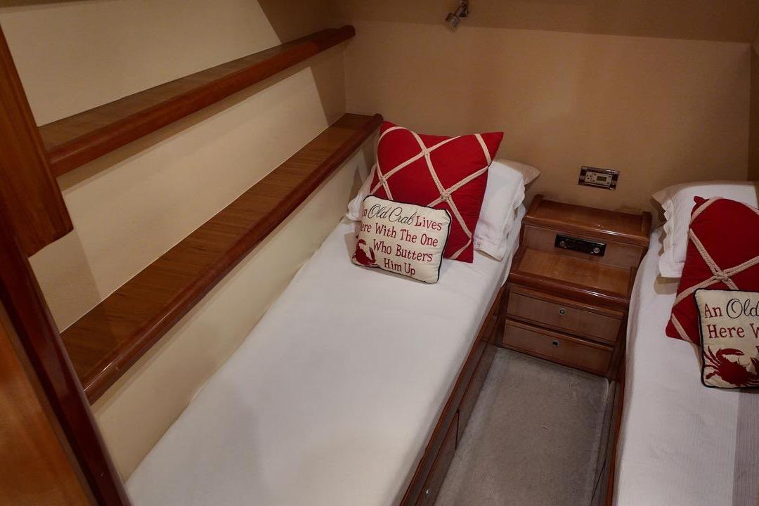 Designed for both sportfishing and cruising, she features a spacious cockpit, enclosed flybridge, and a warm, well-appointed interior with three guest cabins and crew accommodations. Solid, timeless, and purpose-built, this Bertram 51 is a proven platform for owners who value seaworthiness and classic American craftsmanship.