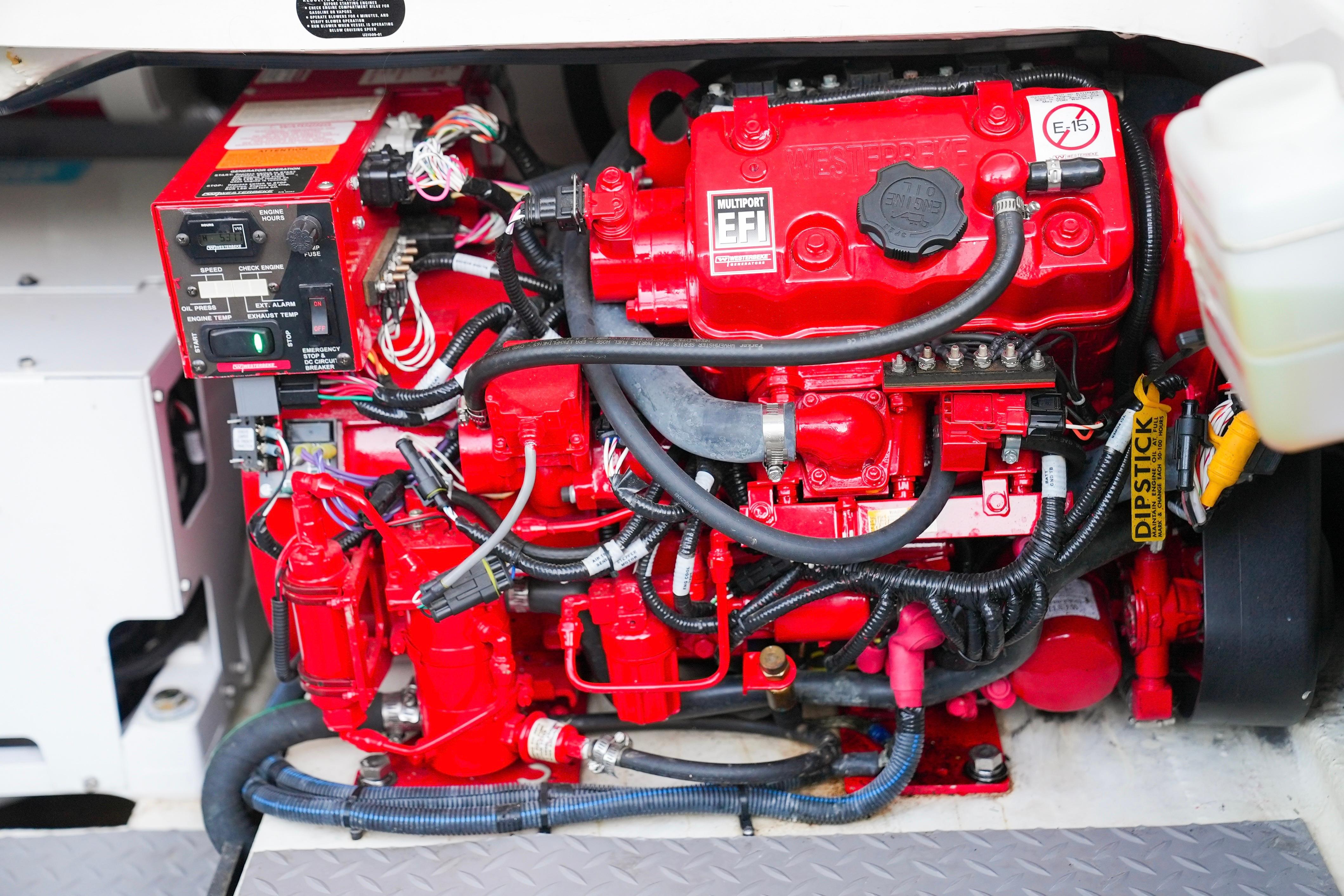 Outfitted with Seakeeper 3 gyro stabilization, Westerbeke gasoline generator (530 hrs), Garmin electronics with open-array radar, FLIR night-vision camera, premium GatorStep decking, and a $20,000 upgraded sound system, this 38 SAV is truly turnkey and built to impress.